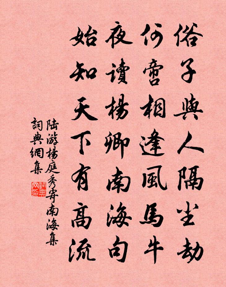 俗子與人隔塵劫,何啻相逢風馬牛。夜讀楊卿南海句,始知天下有高流。