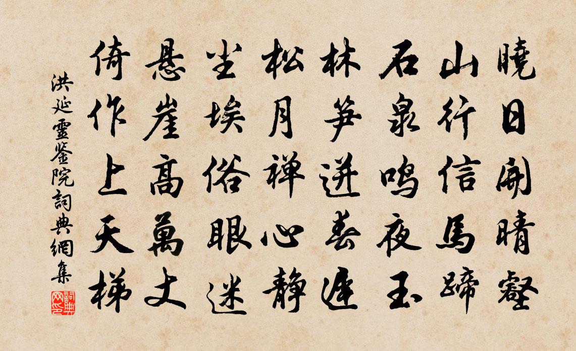 詩詞名句歷史字典書法欣賞書法字典國語詞典說文解字康熙字典古漢語字典標 題 作 者 詩 句 靈鑒院作者:洪延 朝代:宋代靈鑒院原文曉日開晴壑,山行信馬蹄。石泉鳴夜玉,林筍迸春遲。松月禪心靜,塵埃俗眼迷。懸崖高萬丈,倚作上天梯。詩詞問答問:靈鑒院的作者是誰?答:洪延問:靈鑒院寫於哪個朝代?答:宋代洪延靈鑒院書法欣賞靈鑒院書法作品詩詞推薦送張司直入單于(一作送客游邊)於鵠〔唐代〕若過并州北,誰人不憶家。寒深無伴侶,路盡有平沙。磧冷唯逢雁,天春不見花。莫隨征將意,垂老事輕車。丁卯元日十首劉克莊〔宋代〕北關南盪霽華開,輦御端門肆眚回。野老相逢談聖德,散齋蔬素到燔柴。同諸公送李雲南伐蠻儲光羲〔唐代〕昆明封濱滇池,封蠢爾敢逆封常。天星耀鈇鑕,吊彼西南方。冢宰統元戎,太守齒軍行。囊括千萬里,矢謨在廟堂題東山謝安石故居喻良能〔宋代〕江邊瀟灑東山寺,知是曾經謝傅游。一代英姿餘信史,千年陳跡付東流。暮雲初致蒼生恨,遠翠如凝妓女愁。好古金剛隨機無盡頌能淨業障分第十六釋印肅〔宋代〕信知先世業,淪苦於塵劫。今日受持經,我相漸休歇。九日題湖陽縣齋林票〔宋代〕去歲重陽尚故鄉,今朝官舍又重陽。人情不似黃花好,處處相逢一種香。爽襟亭郭印〔宋代〕西岡獨上每舂容,天接危亭四面風。萬室鱗鱗歸眼底,一峰岌岌倚雲中。地靈人勝風流古,石秀山回氣象雄。曳杖秋夕旅館言事趙湘〔唐代〕一點孤燈萬城身,離腸曾攪九回頻。梧桐自管秋來雨,蟋蟀誰妨夜後人。枕上夢將衣共短,卷中詩與發同新。江邊頌古一首釋普度〔宋代〕雙林樹下手摩胸,說有談無姿脫空。若謂瞿曇曾入滅,錯教啼鳥笑春風。東窗偶書陸游〔宋代〕萬事何曾有速淹,熊鱕魚腹自難兼。山川置掌猶能取,日月無膠可得黏?稚子幸堪持几杖,老生元自慣齏鹽。清晨黃香梅李龍高〔宋代〕雲葉重重護雪花,玉人隱隱隔窗紗。雖然不帶微酸味,免與時人置齒牙。芰荷香仲並〔宋代〕醉凝眸。正行雲遮斷,澄練江頭。皓月今宵何處,不管中秋。朱闌倚遍,又微雨、催下危樓。秋風空響更籌。不將讀王伯大都承奏疏王邁〔宋代〕金鏁難羈五色麟,行藏如減國精神。可憐張禹孔光輩,氣息奄奄泉下人。上帥漕閔雨十首彭龜年〔宋代〕白粲十萬艘,日夜隨東流。常平貫雖朽,還作蘇民不。偈頌六十五首釋普濟〔宋代〕驗人眼,截流機。德山臨際,伏惟伏惟。盛山十二詩竹岩韋處厚〔唐代〕不資冬日秀,為作暑天寒。先植誠非鳳,來翔定是鸞。沉黎四首李石〔宋代〕古屋雲棲洞,深湖水拍橋。吏閒知學稼,民樂自歌樵。官監頻添牧,蕃商不費招。老夫便午睡,風惡任飄搖。行香子王詵〔宋代〕金井先秋,梧葉飄黃。幾回驚覺夢初長。雨微煙淡。疏雨池塘。漸蓼花明,菱花冷,藕花涼。幽人已慣,枕單衾冷江上暫別蕭四劉三旋欣接遇陳子昂〔唐代〕昨夜滄江別,言乖天漢游。寧期此相遇,尚接武陵洲。結綬還逢育,銜杯且對劉。波潭一瀰瀰,臨望幾悠悠。山水同褒子秋齋獨宿韋應物〔唐代〕山月皎如燭,風霜時動竹。夜半鳥驚棲,窗間人獨宿。名句推薦境難足於心,盡行放下,則未有不足矣。王永彬《圍爐夜話·第一一三則》 臨官莫如平,臨財莫如廉。劉向《說苑·政理》 一切法無我無人無眾生無壽者。鳩摩羅什譯《金剛經·究竟無我》 柳重煙深,雪絮飛來往。歐陽修《蝶戀花·面旋落花風蕩漾》 故園腸斷處,日夜柳條新。宋之問《途中寒食題黃梅臨江驛寄崔融》 哀莫大於心死。莊子《莊子·外篇·田子方》 榮所眾羨,亦引眾怨。來俊臣《羅織經·固榮卷第六》 過橋分野色,移石動雲根。賈島《題李凝幽居》 射人先射馬,擒賊先擒王。杜甫《前出塞九首·其六》 士為知己者死,女為悅己者容。劉向《戰國策·趙一·晉畢陽之孫豫讓》