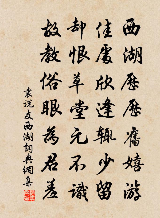 詩詞名句歷史字典書法欣賞書法字典國語詞典說文解字康熙字典古漢語字典標 題 作 者 詩 句 西湖作者:袁說友 朝代:宋代西湖原文西湖歷歷舊嬉遊,佳處欣逢輒少留。卻恨草堂元不識,故教俗眼為君羞。詩詞問答問:西湖的作者是誰?答:袁說友問:西湖寫於哪個朝代?答:宋代袁說友西湖書法欣賞西湖書法作品詩詞推薦句諶祜〔宋代〕月明老樹吟風鶴,露濕荒郊遍士梟。挽愛山李德夫舒岳祥〔宋代〕不為時新刺繡紋,鵠袍鶴髮自相北。襄陽須有漢耆舊,彭澤終為晉隱淪。往往名場躋後輩,時時相袞問斯人。如今再次韻趙帥見寄三首陳造〔宋代〕倏晴驟雨寒猶在,約勒群芳未盡開。銷得燕堂千杖鼓,旋看錦纈裹條枚。簡孫正字趙師秀〔宋代〕空齋兀兀難消日,況入中年睡亦疏。洗釜煮蔬留客飯,捲簾移菊看人鋤。秋衣因病全更衲,曉鬢迎寒半脫梳。多謝昭君詞徐照〔宋代〕琵琶彈得是胡音,上馬低蛾淚滴襟。畫匠枉教延壽死,相如作賦得黃金。旅夜聞笛李中〔唐代〕長笛起誰家,秋涼夜漏賒。一聲來枕上,孤客在天涯。木末風微動,窗前月漸斜。暗牽詩思苦,不獨落梅花。金陵雜興二百首蘇泂〔宋代〕魏紫姚黃掃地空,斬新相尚慶元紅。道人眼界無分別,只賞東來一味風。蒼水黃宗羲〔清代〕少年苦節何人似?得此全歸亦稱情。廢寺醵錢收棄骨,老生禿筆記琴聲。遙空摩影狂相得,群水穿礁浩未平。兩世題祝聖寺吳儆〔宋代〕金碧照征塗,松竹開幽徑。山僧壽八十,腴貌精視聽。囊缽罄錙銖,棟宇事嚴整。如公方外人,視世一泡影。辛勤喜遷鶯·花不盡晏殊〔宋代〕花不盡,柳無窮。應與我情同。觥船一棹百分空。何處不相逢。朱弦悄。知音少。天若有情應老。勸君看取利名場七月六日二首張耒〔宋代〕積雨空階生綠衣,幽幽點點弄秋姿。黃昏樓角看新月,還是去年牛女時。洞天春歐陽修〔宋代〕鶯啼綠樹聲早。檻外殘紅未掃。 * 真珠遍芳草。正簾幃清曉。鞦韆宅院悄悄。又是清明過了。燕蝶輕狂,柳絲撩送倪平仲高士歸天台林表民〔宋代〕綠章封事步虛仙,來自東皇太乙邊。滿袖明珠出光怪,又隨溪月上歸船。獨坐二首杜甫〔唐代〕竟日雨冥冥,雙崖洗更青。水花寒落岸,山鳥暮過庭。暖老須燕玉,充飢憶楚萍。胡笳在樓上,哀怨不堪聽。白狗送簡壽玉主簿之官臨桂二首楊萬里〔宋代〕蘭溪傾蓋杏風殘,桂嶺離裾菊露寒。聽子新詩過夜半,吹儂秋思入雲端。往吟平地千蒼玉,還憶孤舟一釣竿。四海雁盪道中潘檉〔宋代〕千丈岩頭一點紅,春風吹落淺莎中。山僧倚杖移時去,說似溪邊採藥翁。採桑行顧禧〔宋代〕蠶者不得衣,不蠶者得衣。長安富貴家,上錦下襦。河傳(二之一)秦觀〔宋代〕亂花飛絮。又望空鬥合,離人愁苦。那更夜來,一霎薄情風雨。暗掩將、春色去。籬枯壁盡因誰做。若說相思,佛送悅齋先生程公許〔宋代〕風塵三十年,世途日險峰窄。嬋娟棄土梗,倚市競容澤。大雅何寂寥,志士三歡息。難持惠斯文,為國永壽脈。靈次韻馬少伊、郁舜舉寄示同游石湖詩卷七首范成大〔宋代〕莫問朝歌與棘津,浮生惟有一杯春。君看百戰功名地,越戍吳台兩窖塵。名句推薦關河無限清愁,不堪臨鑒岳珂《祝英台近·北固亭》 君懷良不開,賤妾當何依。曹植《明月上高樓》 樓頭客子杪秋後,日落君山元氣中。陳與義《登岳陽樓》 勝日尋芳泗水濱,無邊光景一時新。朱熹《春日》 出於其類,拔乎其萃。孟子《孟子·公孫丑章句上·第二節》 它山之石,可以攻玉。佚名《鶴鳴》 柳柔搖不定,草短綠應難。張惠言《風流子·出關見桃花》 紫黯紅愁無緒,日暮春歸甚處?龔自珍《如夢令·紫黯紅愁無緒》 空自覺、圍羞帶減,影怯燈孤。張炎《渡江雲·山陰久客一再逢春回憶西杭渺然愁思》 凡庸之性,後夫多寵前夫之孤,後妻必虐前妻之子。顏之推《顏氏家訓·後娶篇》
