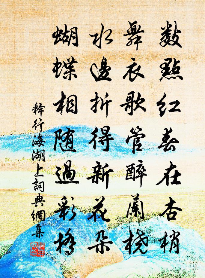 詩詞名句歷史字典書法欣賞書法字典國語詞典說文解字康熙字典古漢語字典標 題 作 者 詩 句 湖上作者:釋行海 朝代:宋代湖上原文數點紅春在杏梢,舞衣歌管醉蘭橈。水邊折得新花朵,蝴蝶相隨過彩橋。詩詞問答問:湖上的作者是誰?答:釋行海問:湖上寫於哪個朝代?答:宋代釋行海湖上書法欣賞湖上書法作品詩詞推薦秋雨嘆十解楊萬里〔宋代〕晝落無聲夜有聲,只堪醉聽不堪醒。檐牙半點能多少?滴入苔階一寸青。次韻記馬耳峰舊遊舒岳祥〔宋代〕牙軸珠聯秘簽滕,曉窗開卷見詩朋。曲渠荷葦鳴新雨,深院茶梅響落冰。山市雪晴邀試酒,溪橋月好近燒燈。玉泓柳方乾〔唐代〕搖曳惹風吹,臨堤軟勝絲。態濃誰為識,力弱自難持。學舞枝翻袖,呈妝葉展眉。如何一攀折,懷友又題詩。送鄭權尚書南海王建〔唐代〕七郡雙旌貴,人皆不憶回。戍頭龍腦鋪,關口象牙堆。敕設薰爐出,蠻辭咒節開。市喧山賊破,金賤海船來。白氎頌一首張九成〔宋代〕春天夜月一聲蛙,撞破虛空共一家。正恁麽時誰會得,嶺頭腳痛有玄沙。道間池亭小酌劉學箕〔宋代〕一曲芳池萬柄荷,游鯈潛躣水揚波。竹孫楹風偏細,梅子江湖雨正多。凡物寓進俱意得,謂予不飲柰愁何。暫來徒經旬不作詩示明叔趙蕃〔宋代〕春風著物已熙熙,枯木無心亦自知。徑欲殷勤辭故絮,卻憐窘束欠新詩。老來政怯花經眼,游倦翻成鳥繞枝。同病獨酌憶微之 時對所贈盞。白居易〔唐代〕獨酌花前醉憶君,與君春別又逢春。惆悵銀杯來處重,不曾盛酒勸閒人。乙巳邵武建寧夜坐書呈諸公陳普〔宋代〕如山似岳起煙雲,爭柰根資故未純。整頓乾坤成萬類,要還林下洗心人。扇子詩李石〔宋代〕誰將弱水隔蓬萊,對酒思君眼倦開。醉夢只堪逢故舊,五更酒醒卻歸來。尋覺公因寄李二端司空十四曙耿湋〔唐代〕少年嘗昧道,無事日悠悠。及至悟生死,尋僧已白頭。雲回廬瀑雨,樹落給園秋。為我謝宗許,塵中難久留。和靜照詩韻釋大觀〔宋代〕諸方門戶總經過,惱亂春風有幾多。今日蒸雲重睹對,絲毫不隔最譊訛。和沈仲一北湖十詠藥房陳傅良〔宋代〕平平下語及雲管,學到詩人豈不難。莫似□人大芳潔,湘波千古訴椒蘭。橘二首趙與□〔宋代〕野色煙波外,西風橘柚香。湖光杳無際,山色忽深藏。塔古燈猶照,壇余灶已荒。何當蛻塵鞅,從此訪漁郎。冷風閣胡仲弓〔宋代〕高閣凌雲四望賒,劍城橫案俯千家。乘風列子留行館,飛舄王喬有別衙。天女下游簫引鳳,仙人來宴棗如瓜。溪山寄懷公壽黃庭堅〔宋代〕好賦梁王在日邊,重簾復幕鎖神仙。莫因酒病疏桃李,且把春愁付管弦。愚智相懸三十里,榮枯同有百餘年。及身送范守仲冶二首劉克莊〔宋代〕二年田裡內,民不識追胥。官府絕無事,使君惟讀書。儉於住家日,臞似下車初。太末方凋弊,公行不可徐。題劉將軍雁二首黃庭堅〔宋代〕將軍一矢萬人看,雪灑晴空碎羽翰。乞與失群沙宿雁,筆間千頃暮江寒。送黃殿講成父赴廣東漕四首王邁〔宋代〕盡一催歸白玉京,浮雲偏妒月華明。鳳凰遠舉弋何慕,鶗鴃爭鳴草不馨。館列翹才難致仕,杖攜靈壽莫扶傾。重瞳晉元帝廟劉克莊〔宋代〕元帝新祠西郭外,野人弔古獨來游。陰陰畫壁開冠劍,寂寂絲窠上璪旒。勢比龍盤猶在眼,事隨鴻去不回頭。葉碑名句推薦又聞子規啼夜月,愁空山李白《蜀道難》 苟不至德,至道不凝焉。子思《中庸·第二十七章》 書不盡言,言不盡意。佚名《易傳·繫辭傳上·第十二章》 多謝梅花,伴我微吟。韓疁《高陽台·除夜》 知者樂水,仁者樂山。孔子弟子《論語·雍也篇》 冰炭不同器而久,寒暑不兼時而至韓非及後人《韓非子·顯學》 聰以知遠,明以察微。司馬遷《史記·五帝本紀》 東風有信無人見,露微意、柳際花邊。蘇軾《一叢花·今年春淺侵年》 拆桐花爛漫,乍疏雨、洗清明。柳永《木蘭花慢·拆桐花爛漫》 伏波惟願裹屍還,定遠何鬚生入關。李益《塞下曲》
