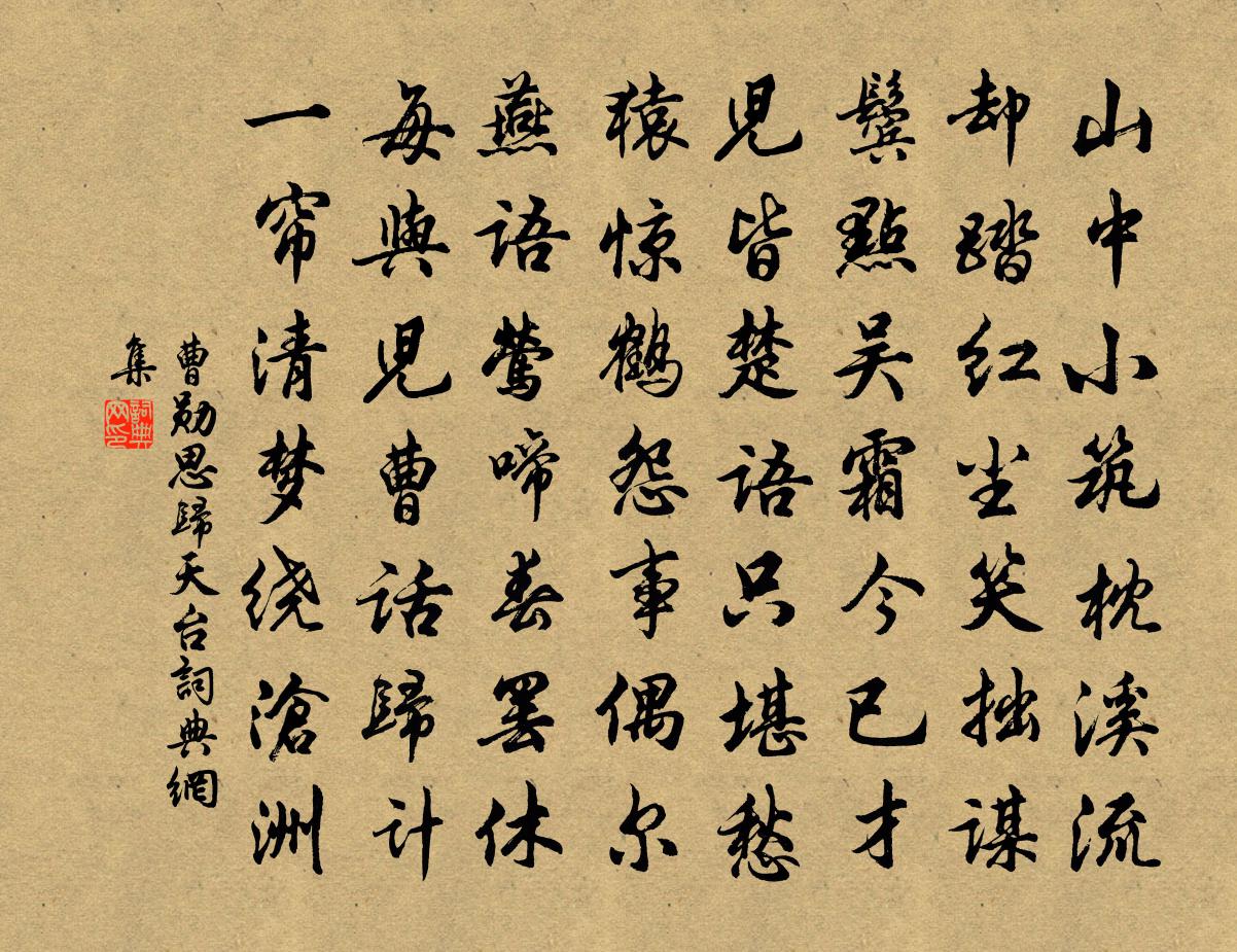 詩詞名句歷史字典書法欣賞書法字典國語詞典說文解字康熙字典古漢語字典標 題 作 者 詩 句 思歸天台作者:曹勛 朝代:宋代思歸天台原文山中小築枕溪流,卻踏紅塵笑拙謀。鬢點吳霜今已才,兒皆楚語只堪愁。猿驚鶴怨事偶爾,燕語鶯啼春罷休。每與兒曹話歸計,一簾清夢繞滄洲。詩詞問答問:思歸天台的作者是誰?答:曹勛問:思歸天台寫於哪個朝代?答:宋代曹勛思歸天台書法欣賞思歸天台書法作品詩詞推薦唯天有二氣邵雍〔宋代〕唯天有二氣,一陰而一陽。陰毒產蛇蠍,陽和生鶯凰。安得蛇蠍死,不為人之殃。安得鳳凰生,長為國之祥。題靈鰻廟三首舒坦〔宋代〕繞塔想曾隨白馬,蟠泥故復傍金沙。旱天霹靂長平地,樂歲污邪每滿車。受賜由來千里境,論封消得萬人家。朱門寓泊浙江寄漢陽孫邁郎中潘閬〔宋代〕維揚相別後,十載浙江居。氣概貧猶在,顛狂老漸疏。已憑天柱客,曾寄漢陽書。近見人來說,才華患有餘。秋怨魚玄機〔唐代〕自嘆多情是足愁,況當風月滿庭秋。洞房偏與更聲近,夜夜燈前欲白頭。韓持國見訪王安石〔宋代〕餘生非匏瓜,於世不無求。弱力憚耕稼,衣食當周流。起家始二十,南北今白頭。愁傷意已敗,罷病恐難瘳。江湖猛虎行王冕〔元代〕去年江北多飛蝗,今年江南多猛虎。白日咆哮咋行人,人家不敢開門戶。長林空谷風颼颼,四郊食盡耕田牛。殘膏憶秦娥李清照〔宋代〕臨高閣,亂山平野煙光保。煙光薄,棲鴉歸後,暮天聞角。斷香殘香情懷惡,西風催襯梧桐落。梧桐落,又還秋色再次韻陳棣〔宋代〕天恐花神漏泄香,故教醞釀待新涼。丹銅不御丰容淺,一洗塵凡時世妝。乾道七年冊皇太子四首佚名〔宋代〕建儲以賢,闢宮於東。典冊既德,筮占既後。濟濟卿士,鏘鏘鼓鍾。天子戾止,盛哉禮容。聶政篇楊維楨〔元代〕齊國壯士儕要離,念母與姊生慈悲。既而母死姊同戶。烏乎丈夫一死泰山重,胡為輕付市井兒。奉和御製殿前松兼以書事徐鉉〔唐代〕長松修斡列承明,虎盼龍盤氣貌靈。風度乍聞琴曲調,巢高初見鶴儀形。枝智慧型陛戟寒生檻,葉帶鑪煙翠滿庭。澗見梅雜興陸夢發〔宋代〕人間誰是識梅真,棄實求花後世心。何似只如三代日,分甘投老萬山深。寄來陸凱渾多事,說到林逋亦費吟。耿耿題東皋釋文珦〔宋代〕東皋縱遐目,生意良自多。魚躍喜冰釋,鳥語乘春和。芳蘭馥余荄,名花眩喬柯。倦客獨無依,奈此庶物何。二十四詩品司空圖〔唐代〕落落欲往,矯矯不群,緱山之鶴,華頂之雲。高人惠中,令色氤氳。御風蓬葉,泛彼無根。如不可執,如將有聞。上元田太靖〔宋代〕元宵燈火照樓台,車馬駢駢去又來。田郎試向樓上望,燈前好個阿孩孩。落花釋贊寧〔宋代〕蝶醉蜂狂香正濃,晚來階下墜衰紅。開時費盡陽和力,落處難禁一陣風。老人及兒輩皆和再用前韻陳文蔚〔宋代〕不而繁桃俗杏栽,詩懷端為此花開。自緣祗結冰坷侶,花底渾無欲駕來。三聖殿陳良翰〔宋代〕巨鎮標閩越,靈蹤肇晉齊。空壇仙一去,古洞佛雙棲。化石龜猶在,燒丹井已迷。塵襟誰復悟,惟聽曉猿啼。學古詩鮑照〔南北朝〕北風十二月。雪下如亂巾。實是愁苦節。惆悵憶情親。會得兩少妾。同是洛陽人。嬛綿好眉目。閒麗美腰身。凝膚寄堯夫三首呂誨〔宋代〕碧草茸茸照綠波,暮春歸客興如何。滄浪應有清渾處,羞見漁人鼓枻歌。名句推薦望天王降詔,早招安,心方足。宋江《滿江紅·喜遇重陽》 八月長江萬里晴,千帆一道帶風輕。崔季卿《晴江秋望》 如切如磋,如琢如磨。佚名《淇奧》 春還草閣梅先動,月滿虛庭雪未消。王守仁《元夕二首》 人生百年有幾,念良辰美景,休放虛過。元好問《驟雨打新荷》 近來何處有吾愁,何處還知吾樂。辛棄疾《念奴嬌·賦雨岩》 貧無可奈惟求儉,拙亦何妨只要勤。王永彬《圍爐夜話·第三則》 帶長劍兮挾秦弓,首身離兮心不懲。屈原《國殤》 風回雲斷雨初晴,返照湖邊暖復明。白居易《南湖早春》 過江千尺浪,入竹萬竿斜。李嶠《風》