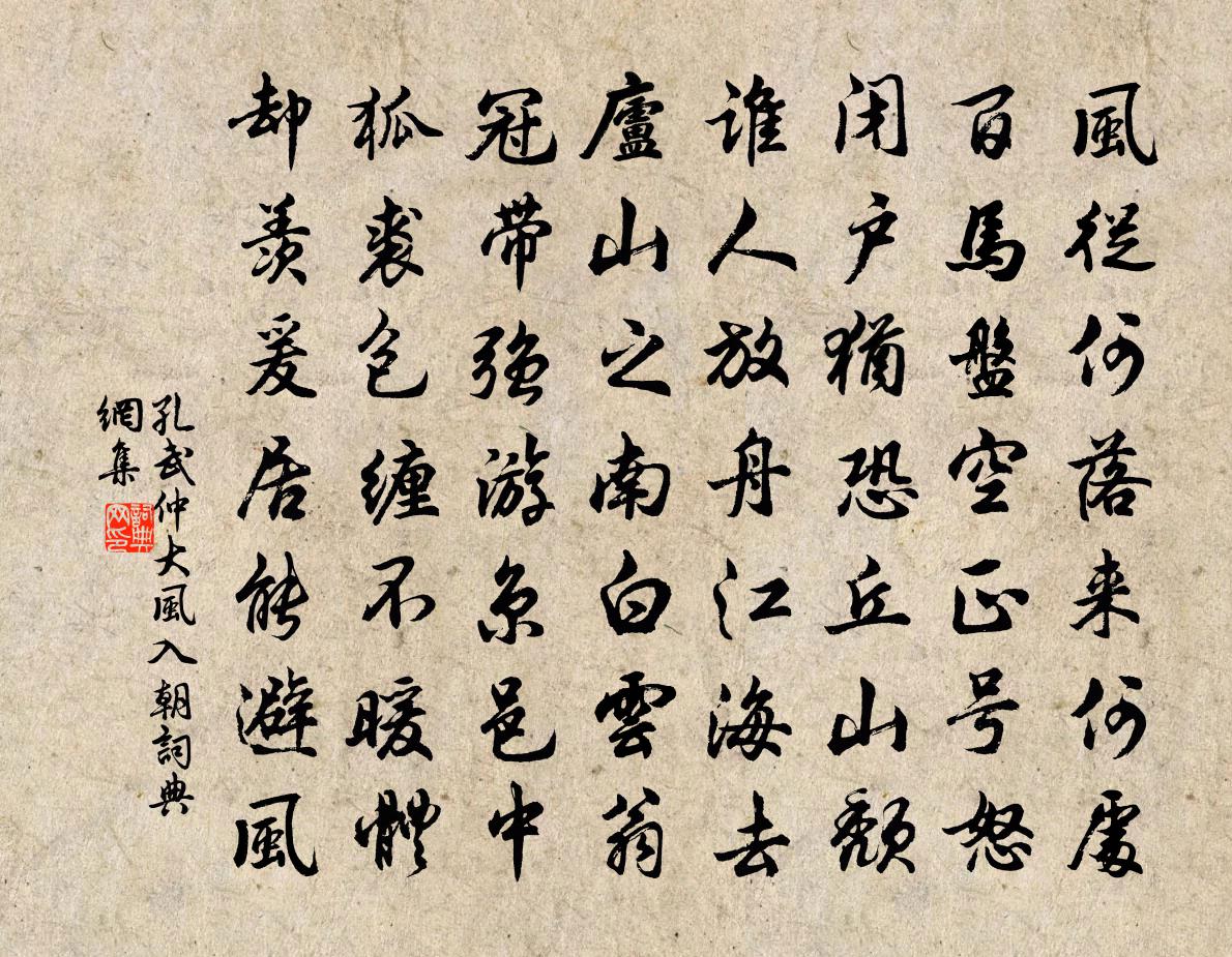 詩詞名句歷史字典書法欣賞書法字典國語詞典說文解字康熙字典古漢語字典標 題 作 者 詩 句 大風入朝作者:孔武仲 朝代:宋代大風入朝原文風從何落來何處,百馬盤空正號怒。閉戶猶恐丘山頹,誰人放舟江海去。廬山之南白雲翁,冠帶強游京邑中。狐裘包纏不暖體,卻羨爰居能避風。詩詞問答問:大風入朝的作者是誰?答:孔武仲問:大風入朝寫於哪個朝代?答:宋代孔武仲大風入朝書法欣賞大風入朝書法作品詩詞推薦借虛谷太博狂吟十詩韻書懷並呈太博楊公遠〔宋代〕竹馬才拋又是翁,年來自覺轉疎慵。欲開竹下三三逕,還借毫端六六峰。處世竟無非理事,對人那有可慚容。浮沈對酒戲詠陸游〔宋代〕淺傾西國蒲萄酒,小嚼南州豆蔻花。更拂烏絲寫新句,此翁可惜老天涯。客中懷劉九陳藻〔宋代〕丘嫂貧中出罵言,途窮非負昔時恩。柴爐夜雨思君處,歸共柴壚笑語喧。句晁公武〔宋代〕銅梁山昏嵐翠重,石境水落灘聲遲。范參政輓詞陸游〔宋代〕孤拙知心少,平生僅數公。凋零遂無幾,遲暮與誰同!瓊樹世塵外,神山雲海中。夢魂寧復接,慟哭向西風。謝張功父送牡丹楊萬里〔宋代〕病眼看書痛不勝,洛花千朵喚雙明。淺紅釅紫各新樣,雪白鵝黃非舊名。台舉精神微雨過,留連訊息嫩寒生。蠟封送方簽判赴江西任陳宓〔宋代〕洪都稱大府,上幕得名賢。事業三千牘,聲名四十年。民征須力減,酒禁更堪憐。餘力猶能辦,開塗及濟州。送曹稅李鹹用〔唐代〕摻袂向春風,何時約再逢。若教相見密,肯恨別離重。芳草漁家路,殘陽水寺鐘。落帆當此處,吟興不應慵。和余元明時元明邀余同李次元夜飲王之道〔宋代〕坐中強半是同年,賴有斯人席更圓。跨馬未須貪遠道,舉觴聊復望青天。枯荷折葦三墩路,明月清風百丈船。俯仰水龍吟許有壬〔元代〕歷觀今古名臣,求如公者人能幾。平生勳業,行其無事,一誠而已。方信名言,臣門如市,臣心如水。正乾坤清晏送朝邑張明府(此公善琴)盧綸〔唐代〕千室暮山西,浮雲與樹齊。剖辭雲落紙,擁吏雪成泥。野火蘆千頃,河田水萬畦。不知琴月夜,誰得聽烏啼。安樂窩中吟邵雍〔宋代〕生為男子偶昌辰,安樂窩中富貴身。大字寫詩夸壯健,小杯飲酒惜輕醇。山川澄淨初經雨,草木暄妍正遇春。造化望遠行李珣〔唐代〕春日遲遲思寂寥,行客關山路遙。瓊窗時聽語鶯嬌,柳絲牽恨一條條。休暈繡,罷 * ,貌逐殘花暗凋。同心猶結祁門道中即事曹彥約〔宋代〕半淪溪谷半山岡,地狹民多盡蓋藏。爭道去年小豐稔,至今租米正輸王。句李維〔宋代〕轉盼回岩電,分髯磔蝟毛。吳山曉望汪元量〔宋代〕城南城北草芊芊,滿地干戈已惘然。燕燕鶯鶯隨戰馬,風風雨雨渡江船。小儒愁劇吟如哭,老子歌闌醉欲眠。一夜東歸羅鄴〔唐代〕日日唯憂行役遲,東歸可是有家歸。都緣桂玉無門住,不算山川去路危。秦樹夢愁黃鳥囀,吳江釣憶錦鱗肥。桃夭送祖詠盧象〔唐代〕田家宜伏臘,歲晏子言歸。石路雪初下,荒村雞共飛。東原多煙火,北澗隱寒暉。滿酌野人酒,倦聞鄰女機。胡為好事近鄭獬〔宋代〕把酒對江梅,花小未禁風力。何計不教零落,為青春留得。故人莫問在天涯,尊前苦相憶。好把素香收取,寄江南福昌官舍後絕句十首張耒〔宋代〕淮南梅柳想春還,怯見西州歲暮寒。惟有看山心未厭,晴明終日在闌乾。名句推薦正是霜風飄斷處,寒鷗驚起一雙雙。陸龜蒙《冬柳》 罪人或免人罪,難為亦為也。來俊臣《羅織經·問罪卷第十》 野店桃花紅粉姿,陌頭楊柳綠菸絲。趙孟頫《東城》 相逢秋月滿,更值夜螢飛。王績《秋夜喜遇王處士》 渭城朝雨浥輕塵,客舍青青柳色新。王維《渭城曲 / 送元二使安西》 但遠山長,雲山亂,曉山青。蘇軾《行香子·過七里瀨》 灞橋煙柳,曲江池館,應待人來。陸游《秋波媚·七月十六日晚登高興亭望長安南山》 路遙知馬力,日久見人心。佚名《增廣賢文·上集》 聞名不如見面,見面勝似聞名。施耐庵《水滸傳·第三回》 故園渺何處,歸思方悠哉。韋應物《聞雁》