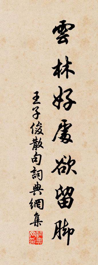 詩詞名句歷史字典書法欣賞書法字典國語詞典說文解字康熙字典古漢語字典標 題 作 者 詩 句 句作者:王子俊 朝代:宋代句原文雲林好處欲留腳。詩詞問答問:句的作者是誰?答:王子俊問:句寫於哪個朝代?答:宋代王子俊句書法欣賞句書法作品詩詞推薦昭君怨(賣花人)蔣捷〔宋代〕擔子挑春雖小。白白紅紅都好。賣過巷東家。巷西家。簾外一聲聲叫。簾里鴉鬟入報。問道買梅花。買梅花。雪中過伊南李處權〔宋代〕低陰漠漠水漫漫,楊柳如絲不忍看。見說山前風更惡,杏花無處避春寒。草堂王冕〔元代〕草堂昨夜春風起,萬樹梅花月如水。相過誰解論襟期?吾州太守山東李。太守自是文章公,文章政事皆從容。長身天津感事二十六首邵雍〔宋代〕去年橋上憑欄人,今歲橋邊騎馬身。橋上橋邊不知數,於今但記十三春。水龍吟(為建康史帥志道壽)丘崈〔宋代〕蕊珠仙籍標名,絳紗覆玉雲霞里。鑾坡鳳掖,絲絇鳴佩,甘泉近侍。濯柳臨春,飣梨照座,絕塵風味。記青蒲、夜題張景召簿尉梅墅並餞入南文天祥〔宋代〕喚醒三影燕支魂,一枝半樹專黃昏。江南暗香郁不住,霜風吹入羅浮村。疏枝不入輞川畫,暗香不到東山棋。雲階董卓蘇軾〔宋代〕公業平時勸用儒,諸公何事起相圖。只言天下無健者,豈信車中有布乎。雜詠一百首毛遂劉克莊〔宋代〕兩國爭衡際,諸君袖手觀。群然著珠履,誰肯捧銅盤。送袁員外宣慰勸農畢赴洪州使院李嘉祐〔唐代〕聖主臨前殿,殷憂遣使臣。氣迎天詔喜,恩發土膏春。草色催歸棹,鶯聲為送人。龍沙多道里,流水自相親。四伯父生日項安世〔宋代〕春入芳蘭喜氣濃,天風吹下慶重重。大兒穩護梁州罽,小女登高監宅龍。南畝新年付熊驥,北窗長日慕喬松。阿鹹保福溥長老請贊釋大觀〔宋代〕雲門普,千鈞弩。驀地一發,當陽飲羽。冤有頭兮債有生。方廣聖燈次敬夫韻林用中〔宋代〕燈長三世火長明,千里遺蹤子細尋。自是神光能永夜,不妨金偈更降心。寄賀錢{左山右賁}薦福東林和尚釋紹曇〔宋代〕法身邊事會多時,端的枯樁弗用疑。無柄鐵鎚輕擊碎,心花粲發不萌枝。送別惟肖贊府孫應時〔宋代〕如椽老筆健文章,枉對槐間雁鶩行。只共低頭了官事,忽驚舉手勸離觴。百年可落塵埃夢,一瓣曾薰知見香。珍重六月望日月堂老禪示仆眾偈隨喜愧甚唐士恥〔宋代〕江月主人清冰壺,以月名堂月不如。門前船泊五湖客,兩眼歷照心與俱。我來追涼暑雲徂,牛腰大軸開我愚。萬口答龐參軍 其一陶淵明〔魏晉〕衡門之下,有琴有書。載彈載詠,爰得我娛。豈無他好?樂是幽居;朝為灌園,夕偃蓬廬。寄九華山費拾遺顧非熊〔唐代〕先生九華隱,鳥道隔塵埃。石室和雲住,山田引燒開。久聞仙客降,高臥詔書來。一入深林去,人間更不回。丹鳳吟 麼鳳張翥〔元代〕蓬萊花鳥。記並宿苔枝,雙雙嬌小。海上仙姝,喚起綠衣歌笑。芳叢有時遣探聽,東風數聲啼曉。月下人歸,淒涼金山行(潤州金山寺,寺在江心)竇庠〔唐代〕西江中氵霝波四截,湧出一峰青堞土臬。外如削成中缺裂,陽氣發生陰氣結。是時炎天五六月,上有火雲下冰雪。贈謝正之秀才陸游〔宋代〕君家麻源第三谷,我在鏡湖分一曲;平生夢亦不相接,忽然懷中瀉珠玉。誠齋老子主詩盟,片言許可天下服。長歌名句推薦君子泰而不驕,小人驕而不泰。孔子弟子《論語·子路篇》 教人怎不傷情。覺幾度、魂飛夢驚。劉過《柳梢青·送盧梅坡》 人生百年有幾,念良辰美景,休放虛過。元好問《驟雨打新荷》 桂魄初生秋露微,輕羅已薄未更衣。王維《秋夜曲》 心似雙絲網,中有千千結。張先《千秋歲·數聲鶗鴂》 閒碾鳳團消短夢,靜看燕子壘新巢。周邦彥《浣溪沙·水漲魚天拍柳橋》 仰天大笑出門去,我輩豈是蓬蒿人。李白《南陵別兒童入京》 可堪孤館閉春寒,杜鵑聲里斜陽暮。秦觀《踏莎行·郴州旅舍》 獨往獨來,獨出獨入,孰能礙之?列子及其弟子《列子·力命》 誰憐一片影,相失萬重雲?杜甫《孤雁 / 後飛雁》