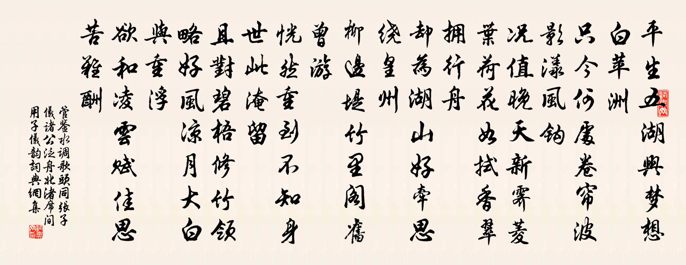 詩詞名句歷史字典書法欣賞書法字典國語詞典說文解字康熙字典古漢語字典標 題 作 者 詩 句 水調歌頭(同張子儀諸公泛舟北渚,席間用子儀韻)作者:管鑒 朝代:宋代原文平生五湖興,夢想白苹洲。只今何處,捲簾波影漾風鉤。況值晚天新霽,菱葉荷花如拭,香翠擁行舟。卻為湖山好,牽思繞皇州。柳邊堤,竹里閣,舊曾游。恍然重到,不知身世此淹留。且對碧梧修竹,領略好風涼月,大白與重浮。欲和凌雲賦,佳思苦難酬。詩詞問答問:《水調歌頭(同張子儀諸公泛舟北渚,席間用子儀韻)》的作者是誰?答:管鑒問:該詩寫於哪個朝代?答:宋代問:該詩是什麼體裁?答:詞書法欣賞水調歌頭(同張子儀諸公泛舟北渚,席間用子儀韻)書法作品詩詞推薦入城至郡圃及諸家園亭遊人甚盛陸游〔宋代〕老子何曾慣市塵,今朝也復入城闉。太平有象人人醉,造物無 * 處春。九陌鶯花娛病眼,一竿風月屬閒身。不緣偈頌一百三十六首釋惟一〔宋代〕斗粟可舂,尺布可縫。情深義重,山包海容。載笑載言,喜而欲舞。豈無他人,不如我父。仆和蹈元蓮竹之什意在譽竹於蓮有投鼠之嫌明李彌遜〔宋代〕藍田官舍碧山里,南北紅蕖照明水。公餘喚客坐晚涼,不獨桃源真避世。舉杯欲酌還自愁,退之慚花不御李。卻持瞻彼南山司馬光〔宋代〕瞻彼南山,有札有樅,維葉逢逢。君子之燕,管絲嗈嗈,奏鼓隆隆。自堂徂庭,上下肅雍,靡有不恭。君子萬年,彥節判宗觀察輓詩二首李彌遜〔宋代〕儉素師寒雋,謙沖識老成。養親公族化,取友士林傾。賀屨填門近,靈輀赴壠輕。悲歡反覆手,揮淚濕銘旌。跋劉溪翁題韓府詩趙蕃〔宋代〕何人詠出韓家府,是我建陽劉叔通。盡道唐人工樂府,罕能褒貶似渠工。寄人釋妙倫〔宋代〕去年共繞潤濱行,話盡山雲海月情。芳樹幽禽尤記得,風前時作兩三聲。題養拙軒徐璣〔宋代〕混沌分來便至今,紛紛巧事日成林。月明未免蝦蟆食,秋至依然蟋蟀吟。自歡一身全是幻,誰能萬事不容心。到君水樂洞胡仲弓〔宋代〕媧皇昔日奏鈞天,一派清音知幾年。寄語山靈好收拾,不須留與世人傳。紫石屏歌歐陽修〔宋代〕月從海底來,行上天東南。正當天中時,下照千丈潭。潭心無風不動,倒影射入紫石岩。月光水潔石瑩淨,感此陰海陽十詠棼絲瀑劉禹錫〔唐代〕飛流透嵌隙,噴灑如絲棼。含暈迎初旭,翻光破夕曛。餘波繞石去,碎響隔溪聞。卻望瓊沙際,逶迤見脈分。宋江三十六贊龔開〔宋代〕飛而食肉,有此雄奇。生人玉關,豈傷令姿。辛巳歲暮宴陸甥子由家陳藻〔宋代〕吾妹嫁時狼狽甚,幸皆存活得年深。有男買屋棲遲喜,見舅開樽爛漫斟。歲值凶荒多餓死,我慚溫飽更酣吟。還鄉毛希元提乾有廬山癖既卜築居這又作龍樓與玉曹彥約〔宋代〕玉京仙境發山謠,未把芙蓉意已消。此處尚堪詩興在,當年行樂說雲卿。禪人並化主寫真求贊釋正覺〔宋代〕像取模畫,人成幻化。得失一鬮,是非一馬。建立摐摐,權行且且。平貼而安,放蕩而野。科臼弗存,軌儀何暇。蝶戀花(春深)趙長卿〔宋代〕宿雨新晴天色好。穠李夭桃,一霎都開了。燕子歸來深院悄。柳綿鋪逕無人掃。咫尺鶯花還又老。綠入閒階,只有秋日書懷王之道〔宋代〕一別成均十九秋,斷腸千里致書郵。可憐率士民心固,端為當年聖澤流。此去會看還北狩,夜來先夢到東州。尊君題汪水雲詩卷十首胡斗南〔宋代〕越舞吳謳別幾春,御船坊下即迷律。年來依舊多游賞,半是南人半北人。夢越州小江錢易〔宋代〕越布縫單衾,燈青月黃淺。精魂度江水,適去無近遠。濕沙平朔天,宿鳥踏古篆。巨潮淹積石,瘦白澀無蘚。櫓響山寺獨宿余靖〔宋代〕柴車走縣封,窮途秋耿耿。急雨帶溪聲,殘燈背窗影。驅馳下士身,淒涼旅人景。山寒夢不成,愁多知夜永。名句推薦為無為,事無事,味無味。老子《老子·德經·第六十三章》 過盡千帆皆不是,斜暉脈脈水悠悠。溫庭筠《望江南·梳洗罷》 喃喃教言語,一一刷毛衣。白居易《燕詩示劉叟》 得其所利,必慮其所害;樂其所成,必顧其所敗。劉向《說苑·敬慎》 春風江上路,不覺到君家高啟《尋胡隱君》 不管三七二十一馮夢龍《醒世恆言·卷一》 東風惆悵欲清明,公子橋邊沉醉。張泌《滿宮花·花正芳》 人以自是,反以相誹。呂不韋《呂氏春秋·覽·慎大覽》 草滿池塘水滿陂,山銜落日浸寒漪。雷震《村晚》 何處是歸程?長亭連短亭。李白《菩薩蠻·平林漠漠煙如織》