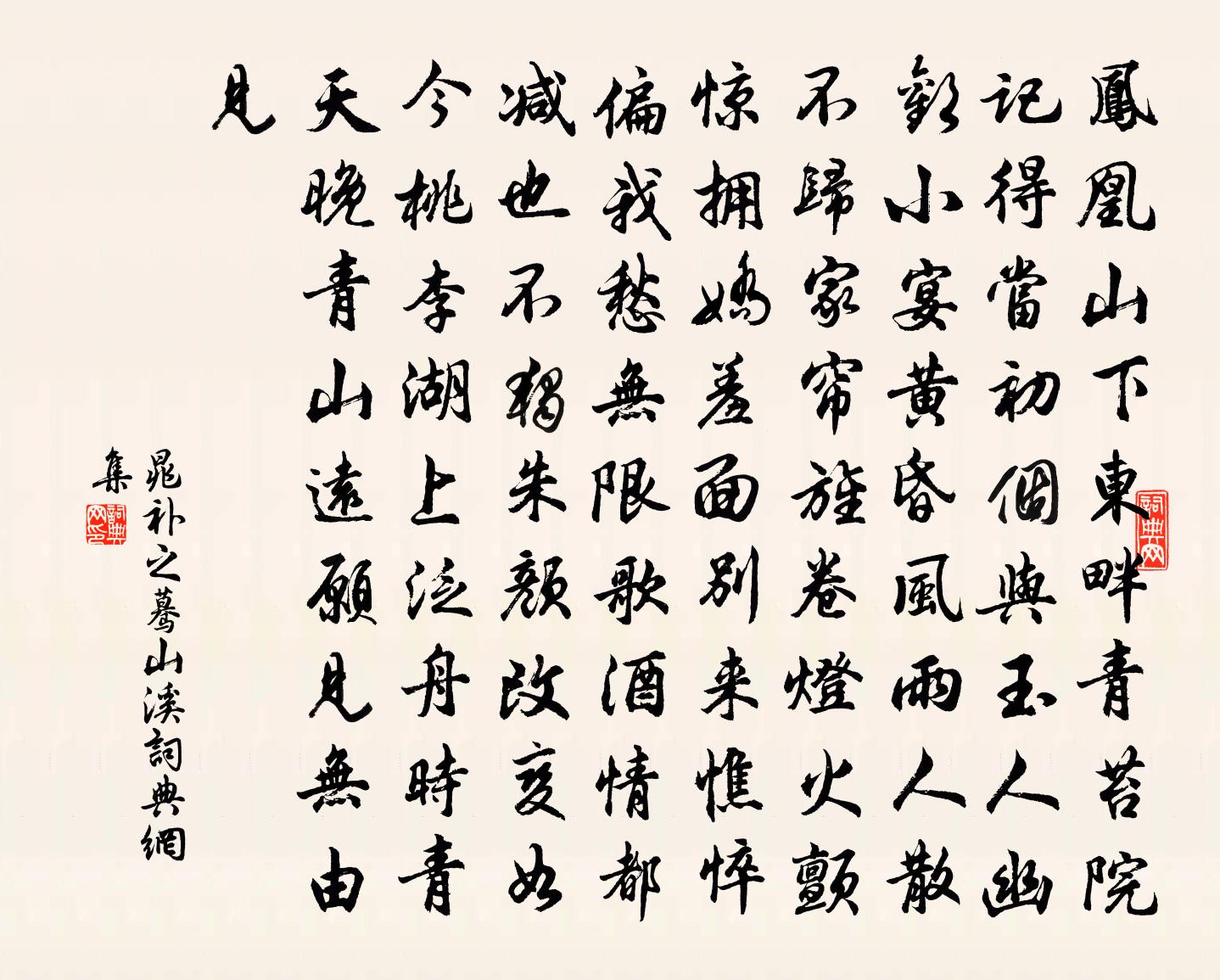 鳳凰山下,東畔青苔院。記得當初個,與玉人、幽歡小宴。黃昏風雨,人散不歸家,簾旌卷。燈火顫。驚擁嬌羞面。