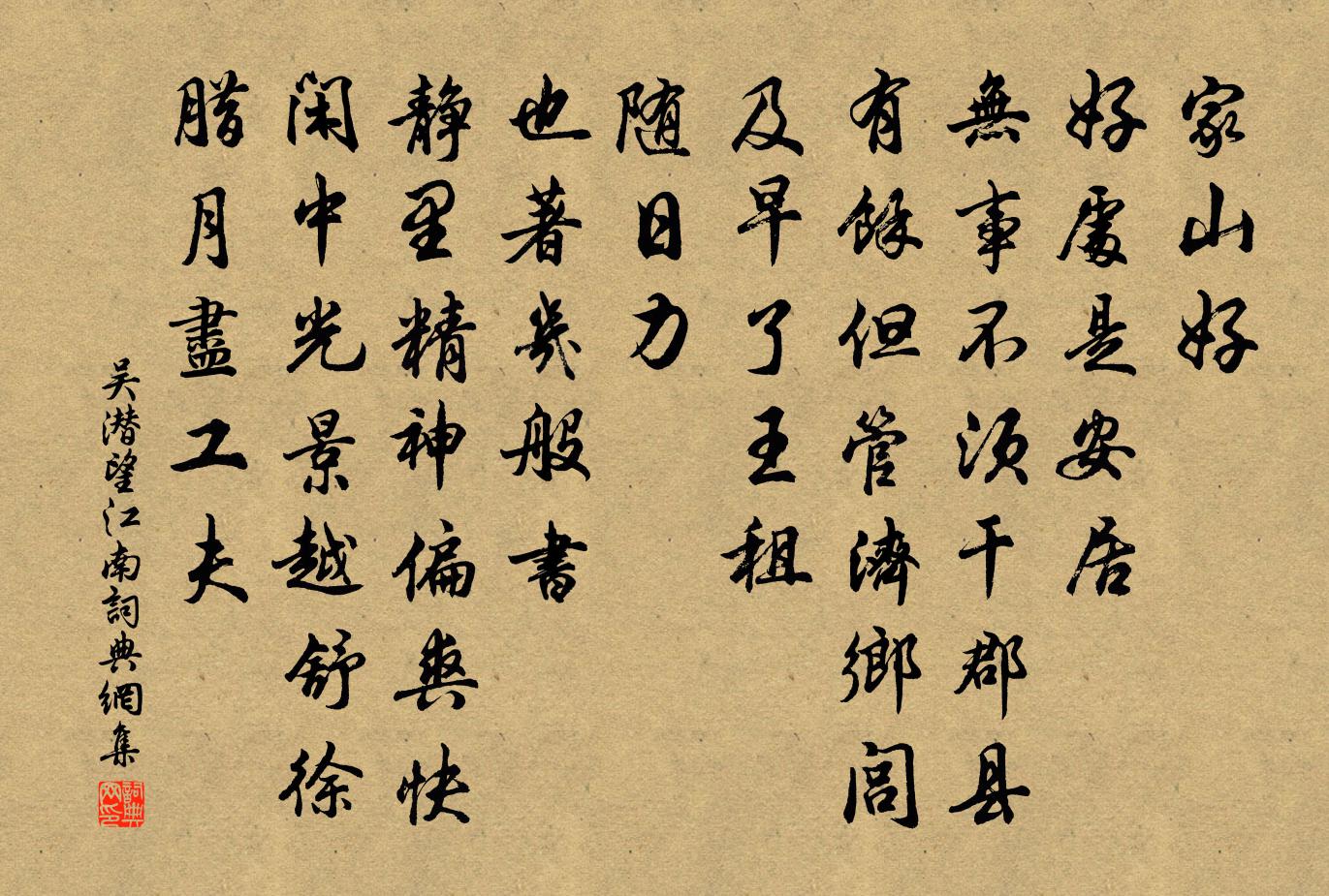 家山好,好處是安居。無事不須乾郡縣,有餘但管濟鄉閭。及早了王租。
