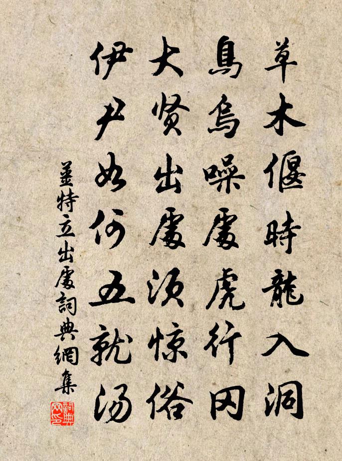 詩詞名句歷史字典書法欣賞書法字典國語詞典說文解字康熙字典古漢語字典標 題 作 者 詩 句 出處作者:姜特立 朝代:宋代出處原文草木偃時龍入洞,鳥烏噪處虎行岡。大賢出處須驚俗,伊尹如何五就湯。詩詞問答問:出處的作者是誰?答:姜特立問:出處寫於哪個朝代?答:宋代姜特立出處書法欣賞出處書法作品詩詞推薦仲秋書事陸游〔宋代〕靈府不搖神泰定,病根已去脈和平。金丹妙處無多子,只要先生兩眼明。愍儒坑王安石〔宋代〕智力區區不為身,欲將何力助強秦。只應埋沒千秋後,更足詩書發冢人。吳江孫何〔宋代〕晚灘如雪起沙鷗,咫尺姑蘇亦勝游。逸勢瀉歸滄海遠,冷聲分作太湖秋。葑田幾處連僧寺,橘岸誰家對驛樓。魯望殘絲曲李賀〔唐代〕垂楊葉老鶯哺兒,殘絲欲斷黃蜂歸。綠鬢年少金釵客,縹粉壺中沈琥珀。花台欲暮春辭去,落花起作迴風舞。榆莢贈月長老蘇軾〔宋代〕天形倚一笠,地水轉兩輪。五霸之所運,毫端棲一塵。功名半幅紙,兒女浪苦辛。子有折足鐺,中容五合陳。十年西豀湖散步趙若盈〔宋代〕遠岫平林嶂夕陽,翻濤翠麥已蒸黃。此行莫謂無高興,題品新詩入錦囊。呈徐侍郎兼寄辛幼安劉過〔宋代〕當年今日誤承恩,自倚容華吒至尊。門外遊絲難駐目,依然青草暗長門。過彭澤孟郊〔唐代〕揚帆過彭澤,舟人訝嘆息。不見種柳人,霜風空寂歷。次韻張守不欺堂陳造〔宋代〕使君古醇儒,內視保良貴。芸芸鏡中影,了莫遁情偽。賦芧豈至術,機灌彼誰子。退食一堂間,百事反諸己。床敷再答王宣徽邵雍〔宋代〕大達誠無礙,人人自有家。假花猶入念,何者謂真花。題長興吳城邵緝〔宋代〕高台無地曲池平,漂泊勾吳宿古城。一岸溼雲沈夜色,四山涼葉下秋聲。和伯恭殿丞游西蓉山寺余靖〔宋代〕休澣約過從,寧論隘與恭。溪光染醽淥,山色秀芙蓉。乍霽千絲雨,齊張萬蓋松。岫孤如欲遁,逕曲似相逢。共怏投翰林蕭舍人溫庭筠〔唐代〕人間鵷鷺杳難從,獨恨金扉直九重。萬象晚歸仁壽鏡,百花春隔景陽鍾。紫微芒動詞初出,紅燭香殘誥未封。每過飯間戲作姜特立〔宋代〕平生無事業,只是養此腹。雖曰負將軍,念爾相隨逐。一朝我若行,枵然入空木。問爾將何之,無功難愛祿。書龍變軒事乃成頌白青城道伯張繼先〔宋代〕一室絕塵埃,和風撼瑤竹。滿幾惟琴書,瀟然異塵俗。時時操寸毫,節篆數囊錄。或同務玄子,楸枰兩三局。夜對贈麻仲英宋白〔宋代〕宣毫歙墨川箋紙,寄與麻家小秀才。七歲能吟天骨異,前生應折桂枝來。江西第六十九文天祥〔宋代〕旄頭初俶擾,義士皆痛憤。乾坤空崢嶸,向者留遺恨。石州慢王之道〔宋代〕天迥琴樓高,日琴長院靜,琴聲幽咽。昵昵恩情,切切言語,似傷離別。子期何處,漫高山流水,又逐新聲徹。仿秋浦途中杜牧〔唐代〕蕭蕭山路窮秋雨,淅淅溪風一岸蒲。為問寒沙新到雁,來時還下杜陵無?寄徐廣文鄧深〔宋代〕自我還荒徑,知君返寓居。秋來曾醉否,月下有詩無。兩地成千里,相看不一書。可能忘舊債,五字法追須。名句推薦力勝貧,謹勝禍,慎勝害,戒勝災。劉向《說苑·談叢》 夜發清溪向三峽,思君不見下渝州。李白《峨眉山月歌》 改章難於造篇,易字艱於代句劉勰《文心雕龍·附會》 青青子衿,悠悠我心。佚名《子衿》 秋色漸將晚,霜信報黃花。葉夢得《水調歌頭·秋色漸將晚》 人情若比初相識,到底終無怨恨心。馮夢龍《醒世恆言·卷一》 暗教愁損蘭成,可憐夜夜關情張炎《清平樂·候蛩淒斷》 松葉堪為酒,春來釀幾多。張九齡《答陸澧》 國者、天下之大器也,重任也荀子《荀子·王霸》 多情自古傷離別,更那堪冷落清秋節!柳永《雨霖鈴·寒蟬淒切》