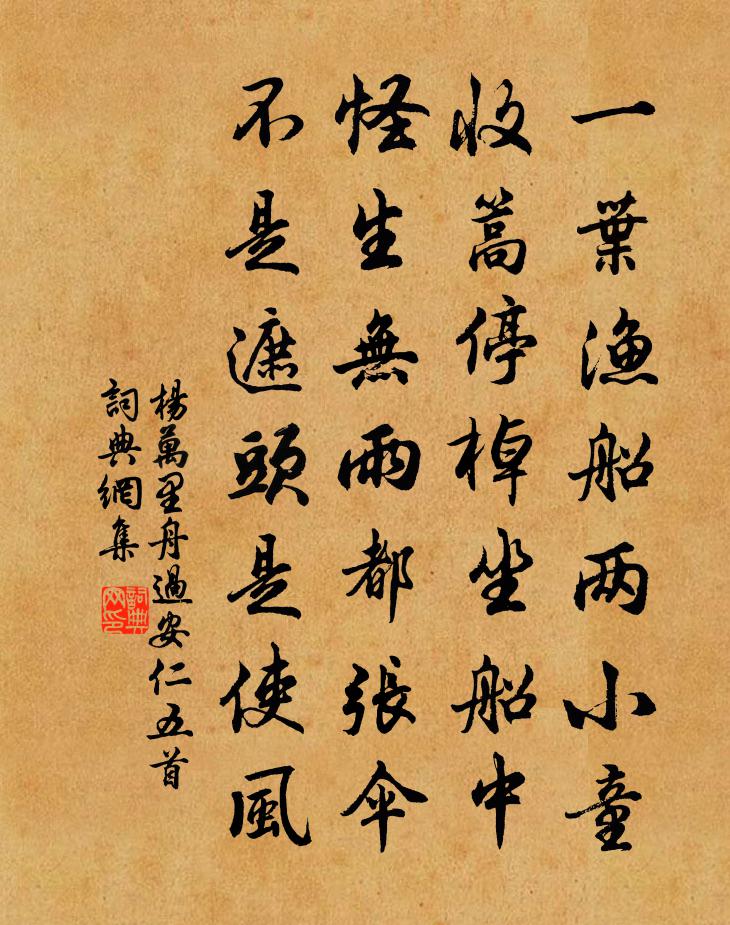 此詩寫詩人乘舟路過安仁時,所見到的情景。這首詩語言淺白如話,充滿情趣,展示了無憂無慮的兩個小漁童的充滿童稚的行為和行為中透出的只有孩童才有的奇思妙想。這裡有作者的所見:一葉小漁船上,有兩個小孩子,他們收起了竹篙,停下了船槳。也有作者的所悟:喔,怪不得沒下雨他們也張開了傘呢,原來不是為了遮雨,而是想利用風讓船前進啊!