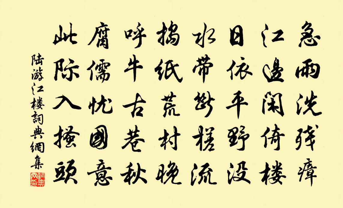 急雨洗殘瘴,江邊閒倚樓。日依平野沒,水帶斷槎流。