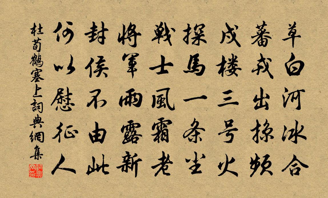 草白河冰合,蕃戎出掠頻。戍樓三號火,探馬一條塵。