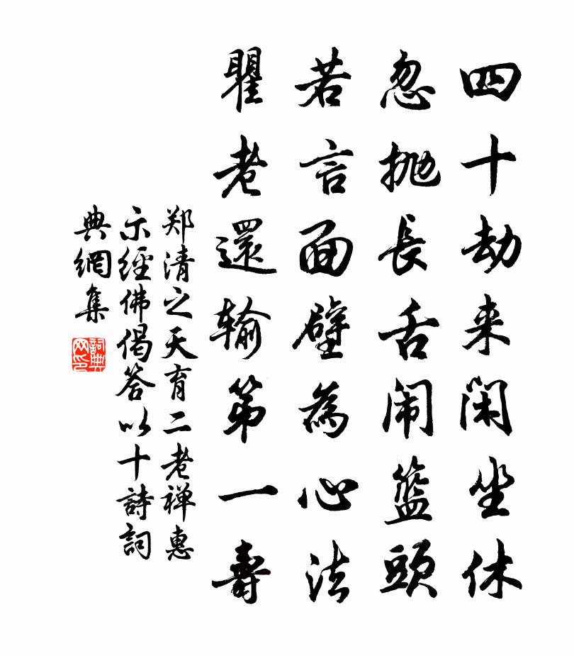 詩詞名句歷史字典書法欣賞書法字典國語詞典說文解字康熙字典古漢語字典標 題 作 者 詩 句 天育二老禪惠示經佛偈答以十詩作者:鄭清之 朝代:宋代原文四十劫來閒坐休,忽拋長舌鬧籃頭。若言面壁為心法,瞿老還輸第一壽。詩詞問答問:《天育二老禪惠示經佛偈答以十詩》的作者是誰?答:鄭清之問:該詩寫於哪個朝代?答:宋代書法欣賞天育二老禪惠示經佛偈答以十詩書法作品詩詞推薦紹興以後祀五方帝六十首佚名〔宋代〕[黃鐘為角]赤精之君,位於朱明。茂有萬物,假然長贏。我潔我盛,我蠲我誠。神其下來,雲車是承。春居寄友生齊己〔唐代〕莎徑荒蕪甚,君應共此情。江村雷雨發,竹屋夢魂驚。社過多來燕,花繁漸老鶯。相思意何切,新作未曾評。再用韻十首楊公遠〔宋代〕林塘幽復僻,俗士可曾游。景物因人勝,茶瓜為客留。納涼尋密竹,凝眺倚層樓。浮世榮枯事,從今莫問休。詩品二十四則。雄渾司空圖〔唐代〕大用外腓,真體內充。返虛入渾,積健為雄。具備萬物,橫絕太空。荒荒油雲,寥寥長風。超以象外,得其環中。時眺楊萬里〔宋代〕野意隨宜有,山光入望無。寒曦不自暖,落木幾曾枯。不分霜前樹,長啼月下烏。苦吟徐便悔,可惜數莖須。十一月二十七日劉公度徐用之許相過公度居憂周必大〔宋代〕平日何曾忘穆生,如今胡不飲公榮。頗嫌性僻嵇中散,為怕情傷阮步兵。美意正須羹碧澗,衰顏聊復飯青精。更攜古絕句四首佚名〔兩漢〕其一藁砧今何在,山上復有山。何當大刀頭,破鏡飛上天。其二日暮秋雲陰,江水清且深。何用通音信,蓮花玳瑁百字令(壽虞守·正月十二)陳潛心〔宋代〕梅峰孕秀,太仙翁、咫尺元宵三夕。盛德溫溫如玉粹,多少殊勛嘉績。兩擁朱幡,獨清節,高誼真難屈。景疏堂下留別米雍丘二首之一賀鑄〔宋代〕明釭通夜語,累塊寫胸中。水癖推劉令,書名浼魯公。忌猜悲廩鼠,逐熱賤雲鴻。不乏佳山水,東南著兩翁。菩薩蠻·南園滿地堆輕絮溫庭筠〔唐代〕南園滿地堆輕絮,愁聞一霎清明雨。雨後卻斜陽,杏花零落香。無言勻睡臉,枕上屏山掩。時節慾黃昏,無□獨倚簟送人詩代簡二首吳儆〔宋代〕一幅冰紈織翠筠,風涵秋水碧鱗鱗。北窗高臥正須此,卷似閒曹吏隱人。明融楊簡〔宋代〕淨幾橫琴晚寒,梅花落在弦間。我欲清吟無句,轉煩門外青山。次韻元日黃庭堅〔宋代〕會朝四海登圖籍,絳闕清都想盛容。春色已知回寸草,霜威從此霽寒松。飲如嚼蠟初忘味,事與浮雲去絕蹤。四十酒泉子溫庭筠〔唐代〕花映柳條,閒向綠萍池上。憑欄乾,窺細浪,雨蕭蕭。近來音信兩疏索,洞房空寂寞。掩銀屏,垂翠箔,度春宵。送王子文宰昭武真德秀〔宋代〕熒熒匣中龍,爛爛岩下電。紛綸揮霍間,坐子百千變。雖然事幾微,易矚亦易眩。誤從快處生,理向靜中現。健決哭舍弟二首李中〔唐代〕鴻雁離群後,成行憶日存。誰知歸故里,只得奠吟魂。蟲蠹書盈篋,人稀草擁門。從茲長慟後,獨自奉晨昏。浮生十二時頌釋文準〔宋代〕日入酉,淨室夢香孤坐久。忽然月上滿東窗,照我床頭瑞香斗。謁文宣王廟羅隱〔唐代〕晚來乘興謁先師,松柏淒淒人不知。九仞蕭牆堆瓦礫,三間茅殿走狐狸。雨淋狀似悲麟泣,露滴還同嘆鳳悲。儻使鄰月堂求頌釋正覺〔宋代〕畦衣我是出塵人,卜築高堂與月鄰。床上金刀香剪佳,篋中玉斧冷修輪。寒癯破夢無嫌病,清白傳家不愧貧。門外上黃堆烽李益〔唐代〕心期紫閣山中月,身過黃堆烽上雲。年發已從書劍老,戎衣更逐霍將軍。名句推薦塵緣一點,回首西風又陳跡。吳文英《六么令·夷則宮七夕》 有福傷財,無福傷己。佚名《增廣賢文·上集》 兄弟叔侄,須分多潤寡;長幼內外,宜法肅辭嚴。朱柏廬《朱子家訓·全文》 不是暗塵明月,那時元夜。蔣捷《女冠子·元夕》 唯仁者能好人,能惡人。孔子弟子《論語·雍也篇》 萬歲山前珠翠繞,蓬壺殿里笙歌作岳飛《滿江紅·登黃鶴樓有感》 非鬼亦非仙,一曲桃花水辛棄疾《生查子·獨游雨岩》 除腹心之疾,而置諸股肱,何益?左丘明《左傳·哀公·哀公六年》 遮莫圓明似前度,不知誰續廣寒游。慧霖《閏中秋玩月》 去年米貴闕軍食,今年米賤大傷農。杜甫《歲晏行》