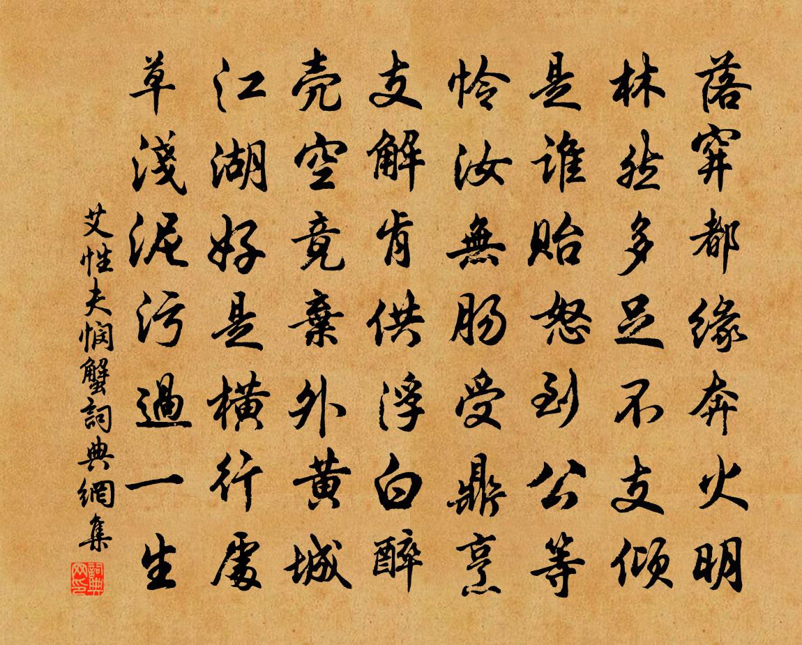 詩詞名句歷史字典書法欣賞書法字典國語詞典說文解字康熙字典古漢語字典標 題 作 者 詩 句 憫蟹作者:艾性夫 朝代:宋代憫蟹原文落穽都緣奔火明,林然多足不支傾。是誰貽怒到公等,憐汝無腸受鼎烹。支解肯供浮白醉,殼空竟棄外黃城。江湖好是橫行處,草淺泥污過一生。詩詞問答問:憫蟹的作者是誰?答:艾性夫問:憫蟹寫於哪個朝代?答:宋代問:憫蟹是什麼體裁?答:七律艾性夫憫蟹書法欣賞憫蟹書法作品詩詞推薦題烏程簿廳浮玉亭七首袁說友〔宋代〕誤把新題涴彩梁,我書元不是中郎。亭前若解真浮玉,成我蒹葭倚玉堂。自嘆劉過〔宋代〕群公更屋居,官貴輒鼎台。艷妝照珠翠,寒谷噓春回。書生窮蹇甚,一笑百禍胎。何時業債盡,面目還本來。船子和尚贊釋智遇〔宋代〕煙水寒,扁舟小,華亭江上相尋討。負命劈口一橈,點頭處狼藉不少。父子怯相酬,誰道翻身早。出黃蘆,入紅蓼戲集老杜句再和黃公度〔宋代〕背堂資僻遠,要路亦高深。未負幽棲志,回看不住心。寒花隱亂草,飛鳥度層陰。獨繞荒齋徑,新詩近玉琴。敘錢塘異勝方乾〔唐代〕暖景融融寒景清,越颱風送曉鐘聲。四郊遠火燒煙月,一道驚波撼郡城。夜雪未知東岸綠,春風猶放半江晴。謝公登岳陽樓張埴〔宋代〕坐擁湖山把一麾,當年吏部只吟詩。平章功業如今許,棄了吟詩選得碑。賈節庵冒夏暑越修塗過我苕霅情誼甚厚令聞古牟巘五〔宋代〕別餞別尤苦,輾轉那得寐。後會倘可期,握手三致意。和所盤離相院山門納涼韻丘葵〔宋代〕槐對青山五月寒,朝朝暮暮此看山。風來翠瀑青松外,人在珠宮貝闕閒。詩客歸時文幾靜,棋僧去後畫枰閒。禪床和鮑守次韻林德祖十四首傅察〔宋代〕佐縣三年敢意輕,掾曹還許暫平亭。齒延屢醉爭扶白,嗣響非工愧取青。自此浮鷗容海浪,幸同馴鹿傍車屏。從今次韻吉老十小詩黃庭堅〔宋代〕學似斲輪扁,詩如飯顆山。室中餘一劍,無氣鬥牛間。題毗陵僧舍二首之二賀鑄〔宋代〕秋風忽起家山意,流落天涯嘆憔悴。古寺不掛寰瀛圖,終南山翁何處至。送楊諫議赴河西節度判官兼呈韓王二侍御熊曜〔唐代〕賢哉征西將,幕府多俊人。籌議秉刀尺,話言在經綸。先鞭羨之子,走馬辭鹹秦。庭論許名實,數公當即真。行行倬彼我系王勃〔唐代〕長江悲已滯,萬里念將歸。況屬高風晚,山山黃葉飛。八月朔曉起趣辨行李楊萬里〔宋代〕雨後晨先起,花間濕也行。破除婪尾暑,領略打頭清。蠹果無遲落,枯枝忽再榮。便須秣吾馬,及此半陰晴。春晴感興齊己〔唐代〕連旬陰翳曉來晴,水滿圓塘照日明。岸草短長邊過客,江花紅白里啼鶯。野無征戰時堪望,山有樓台暖好行。桑柘句杜衍〔宋代〕獨無風雅可流傳。舟次彭澤李中〔唐代〕飄泛經彭澤,扁舟思莫窮。無人秋浪晚,一岸蓼花風。鄉里夢漸遠,交親書未通。今宵見圓月,難坐冷光中。太上皇后合端午帖子詞汪應辰〔宋代〕俯視紛華等秕糠,隨時邀樂任嬪嬙。宮中鬥草知多少,自有金芳芝冠眾芳。送元八歸鳳翔白居易〔唐代〕莫道岐州三日程,其如風雪一身行。與君況是經年別,暫到城來又出城。耿濟口舟行林逋〔宋代〕環回幾合似江乾,刺眼詩幽盡狀難。沙嘴半平春晚濕,水痕無底照秋寬。老霜蒲葦交千刃,怕雨鳧鷗著一攢。擬就名句推薦江頭未是風波惡,別有人間行路難!辛棄疾《鷓鴣天·送人》 天地玄黃,宇宙洪荒。周興嗣《千字文·全文》 風雨送春歸,飛雪迎春到。 * 《卜運算元·詠梅》 長安故人別後,料征鴻聲里,畫闌憑偏。王月山《齊天樂·夜來疏雨鳴金井》 江闊雲低、斷雁叫西風。蔣捷《虞美人·聽雨》 幾時能命駕,對酒落花前。賈島《清明日園林寄友人》 聖王者不貴義而貴法,法必明,令必行,則已矣。商鞅《商君書·畫策》 上所用者,奸亦為忠;上所棄者,忠亦為奸。來俊臣《羅織經·察奸卷第八》 舊時燕子還飛否?今古不勝情。歸莊《錦堂春·半壁橫江矗起》 何處可為別,長安青綺門。李白《送裴十八圖南歸嵩山二首》