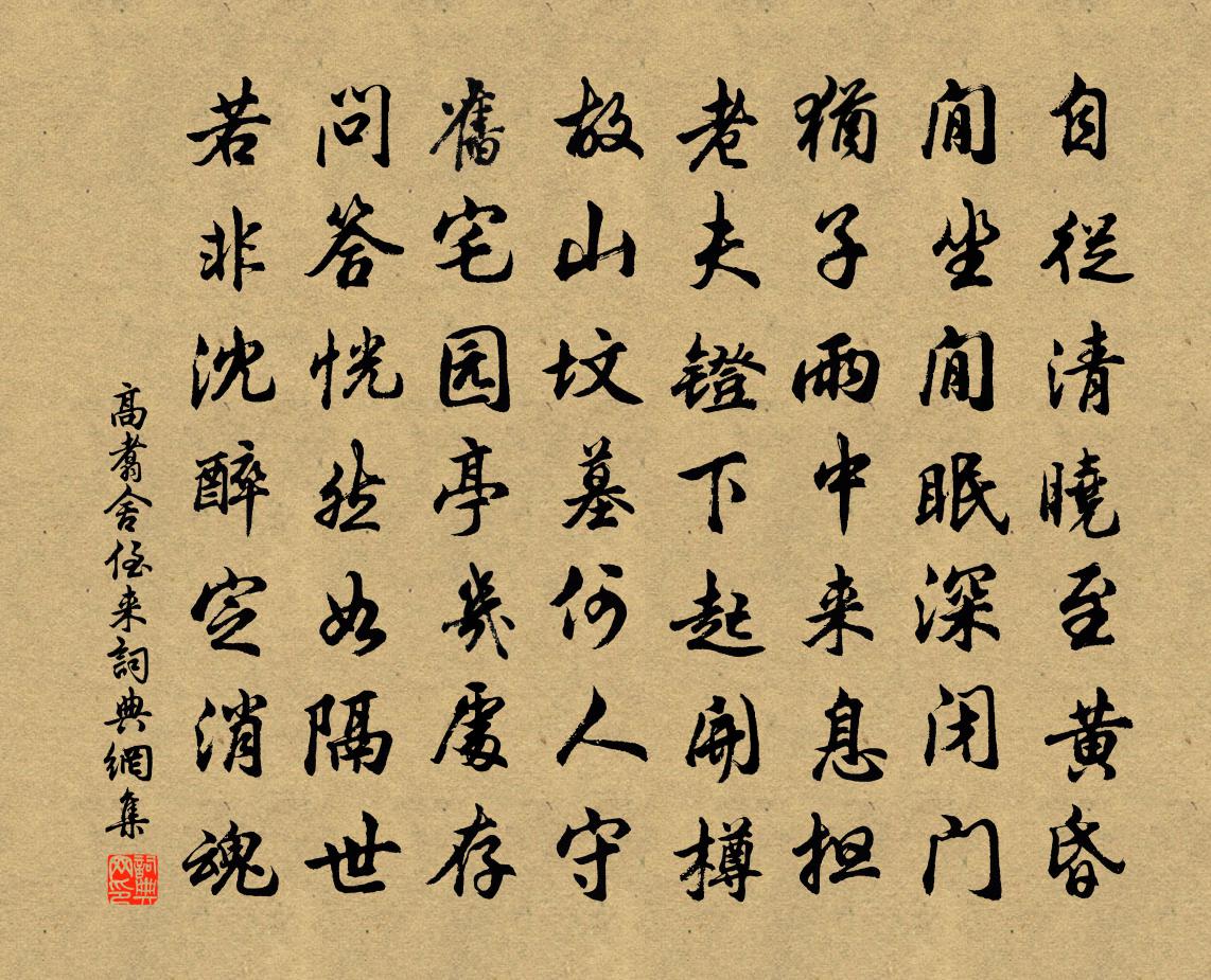 詩詞名句歷史字典書法欣賞書法字典國語詞典說文解字康熙字典古漢語字典標 題 作 者 詩 句 舍侄來作者:高翥 朝代:宋代舍侄來原文自從清曉至黃昏,閒坐閒眠深閉門。猶子雨中來息擔,老夫鐙下起開樽。故山墳墓何人守,舊宅園亭幾處存。問答恍然如隔世,若非沈醉定消魂。詩詞問答問:舍侄來的作者是誰?答:高翥問:舍侄來寫於哪個朝代?答:宋代高翥舍侄來書法欣賞舍侄來書法作品詩詞推薦菩薩蠻王之道〔宋代〕晴窗睡起爐煙直。香雲墮髻嬌無力。溪水碧涵空。拒霜深淺紅。墜鞭還駐馬。縹緲珠簾下。自是意中人。臨風休障喜劉寶學彥修得歸因敘初時悽愴之意十首張嵲〔宋代〕灕水津頭逢早春,桂林楊柳拂行塵。西園無限芳菲樹,皆作新花詩主人。奉和隨王殿下詩 十四謝朓〔南北朝〕分悲玉瑟斷。別緒金樽傾。風入芳帷散。缸華蘭殿明。想折中園草。共知千里情。行雲故鄉色。贈此一離聲。山中四威儀供佛鑒師翁韻釋原妙〔宋代〕山中行,步高身盡輕。擬飛去,惟恐世人驚。西江月 以上二首見丹經極論,未注作者佚名〔宋代〕一理無今無古,此心何喜何嗔。無相乃為真相。色身即是法身。不消一句半句,活得千人萬人。咦,這裡便是到頭綺羅香陳著〔宋代〕裊入風腔,清含露脈,聲在絲絲煙碧。破暑吹涼,天付弄嬌雙腋。似戀戀、舞翠纖腰,斷還續、忍相離拆。最歡時宮詞王珪〔唐代〕盡日間窗財選仙,小娃爭覺倒盆錢。上籌得占蓬萊島,一擲乘鸞出洞天。招賈秘書曹勛〔宋代〕不見賈夫子,病懷何得陳。呻吟一春了,物色九秋新。閒花翳欄檻,秀氣浮衣巾。笑言約中浣,雞黍供蕭晨。照影亭曾鞏〔宋代〕河流索檻色輝輝,無數幽禽入鏡飛。已映渚花紅四出,更涵沙柳翠相圍。不欺毫髮公雖有,太盡妍媸道恐非。自笑飯客艾性夫〔宋代〕菜剪堯時韭,羹羞晉代蓴。家寒多食淡,客好不嫌貧。一夜小窗雨,百年華發人。明朝未須去,老別最傷神。代迎春花招劉郎中白居易〔唐代〕幸與松筠相近栽,不隨桃李一時開。杏園豈敢妨君去,未有花時且看來。題北郭巨然山水宋祁〔宋代〕鈿點峰頭矗太虛,遠帆遙岸水平鋪。不知真到雲波上,得似工毫可愛無。雜曲歌辭。陸州歌第三佚名〔唐代〕香氣傳空滿,妝花映薄紅。歌聲天仗外,舞態御樓中。即事陸游〔宋代〕幽鳥呼人出睡鄉,層層露葉漏朝陽。臨池只欲消殘醉,無奈鵝兒似酒黃。連雨書事陳與義〔宋代〕九州逢連雨,蕭蕭穩送秋。龍公無乃倦,客子不勝愁。雲氣昏城壁,鐘聲咽寺樓。年年授衣節,牢落向他州。送劉秀才往東洛齊己〔唐代〕羨子去東周,行行非旅遊。煙霄有兄弟,事業盡曹劉。洛水清奔夏,嵩雲白入秋。來年遂鵬化,一舉上瀛洲。游豐樂招提佛光三寺白居易〔唐代〕竹鞋葵扇白綃巾,林野為家雲是身。山寺每游多寄宿,都城暫出即經旬。漢容黃綺為逋客,堯放巢由作外臣。昨日池上近作假山引水穿石撒珠其上亦有可觀因成吳芾〔宋代〕終日塵勞困簿書,無因歸泛小西湖。且來池上看堆翠,更向峰前認撒珠。觸石有雲時點綴,隨風無雨自沾濡。老夫句晏殊〔宋代〕蟹螯今在左,欲拍酒船浮。自述二首文天祥〔宋代〕當年嚼血漬銅駝,風氣悠悠柰若何。漢賊已成千古恨,楚囚不覺二年過。古今鹹道天驕子,老去忽如春夢婆。試把名句推薦還與去年人,共藉西湖草。蘇軾《卜運算元·感舊》 得天下英才而教育之。孟子《孟子·盡心章句上·第二十節》 一簾鳩外雨,幾處閒田,隔水動春鋤。張炎《渡江雲·山陰久客一再逢春回憶西杭渺然愁思》 耕則問田奴,絹則問織婢。魏收《魏書·列傳·卷五十三》 荒城臨古渡,落日滿秋山。王維《歸嵩山作》 山氣日夕佳,飛鳥相與還。陶淵明《飲酒·其五》 落霞與孤鶩齊飛,秋水共長天一色。王勃《滕王閣序》 征馬分飛日漸斜,見此空為人所嗟。孟浩然《高陽池送朱二》 泉聲咽危石,日色冷青松。王維《過香積寺》 莫避春陰上馬遲。春來未有不陰時。辛棄疾《鷓鴣天·送歐陽國瑞入吳中》