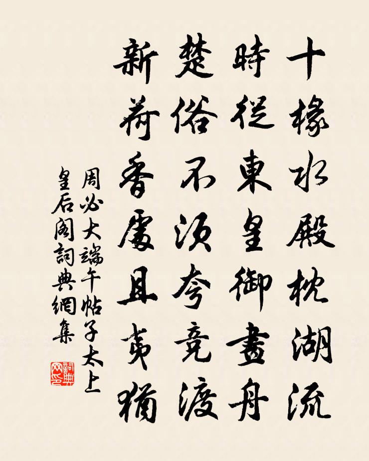 詩詞名句歷史字典書法欣賞書法字典國語詞典說文解字康熙字典古漢語字典標 題 作 者 詩 句 端午帖子太上皇后閣作者:周必大 朝代:宋代端午帖子太上皇后閣原文十椽水殿枕湖流,時從東皇御畫舟。楚俗不須夸競渡,新荷香處且夷猶。詩詞問答問:端午帖子太上皇后閣的作者是誰?答:周必大問:端午帖子太上皇后閣寫於哪個朝代?答:宋代周必大端午帖子太上皇后閣書法欣賞端午帖子太上皇后閣書法作品詩詞推薦觀盛花吟邵雍〔宋代〕吾曹養拙賴明時,為幸居多寧不知。天下英才中遁跡,人間好景處開眉。生來只慣見豐稔,老去未嘗經亂離。五事和殷衙推春霖即事李鹹用〔唐代〕東風吹暖雨,潤下不能休。古道雲橫白,移時客共愁。綠沈莎似藻,紅泛葉為舟。忽起江湖興,疑鄰畎澮流。此時次韻子瞻和淵明飲酒二十首蘇轍〔宋代〕天廚釀冰池,搖振畏出境。年衰雜羸病,一釂百不醒。鸞台異諸曹,有政非簿領。頹然雖無謫,因謝出囊穎。回首月下作陸游〔宋代〕池上迎微風,柏間蹋涼月,冷然醉夢醒,一洗煩惱熱。嗟予世外人,火食常嘔噎。易求雲表露,難覓太古雪,況欲一翦梅佚名〔宋代〕漠漠春陰酒半酣。風透春衫。雨透春衫。人家蠶事欲眠三。桑滿筐籃。柘滿筐籃。先自離懷百不堪。檣燕呢喃。梁西軒雜題三首趙蕃〔宋代〕臥看修筠不見梢,所欣軒戶綠陰交。蟬吟鳥語盡堪喜,不用先生自解嘲。水心即事六乎兼謝吳民表宣義葉適〔宋代〕吳翁肥遁逾七十,朮老芝荒手自鋤。惠我篇章成錦字,西鄰得伴亦堪書。柳梢青佚名〔宋代〕正好江南,一分春色,梨花白雪。化日遲遲,文章半刺,平分風月。滿堂花醉三千,看妙舞、六么十八。笑捧瑤卮偈二十七首釋守淨〔宋代〕談玄說妙,撒屎撒尿。行棒行喝,將鹽止渴。立主立賓,花擘宗乘。道中題梅李處權〔宋代〕山家梅樹出疏籬,好客殷勤折一枝。直是老來風味薄,而今相遇可無詩。絕命詩通州詩丐〔清代〕賦性生來本野流,手提竹杖過通州。飯籃向曉迎殘月,歌板臨風唱晚秋。兩腳踏翻塵世路,一肩擔盡古今愁。如今題秋江待渡圖錢選〔宋代〕山色空濛翠欲流,長江清澈一天秋。茅茨落日寒煙外,久立行人待渡舟。分蝗食章甫〔宋代〕田園政爾無多子,連歲旱荒飢欲死。今年何幸風雨時,豈意蝗蟲乃如此。麥秋飛從淮北過,遺子滿野何其多。撲滅感舊晁說之〔宋代〕田園幾畝豆苗新,卒歲閒居百慮真。百日頻逢中酒客,何時曾禁折花人。誰夸玉帛奔侯服,自喜樵蘇入帝闉。回首峽山二首戴復古〔宋代〕欲訪飛來殿,維舟上峽山。有溪流屋下,無路入雲間。犀解捐金索,猿能記玉環。無從旌往事,有地足躋攀。曉行喻良能〔宋代〕樹頭鳥語落虛檐,清夢驚回睡未厭。笑跨紫騮穿綠徑,晴雲涼月正纖纖。餞范子胡景俗〔宋代〕當年邂逅帝王畿,歲月侵尋若電飛。學士榮除青鎖闥,故人老著白 * 。尊前且斗閒身健,眼底休論往事非。第恐江尉見過方岳〔宋代〕夢筆諸郎住筆峰,斷橋春水肯過從。千岩萬壑真仙吏,兩屨一蓑予老農。鐵硬脊樑長偃蹇,糊塗面目易迎逢。半生賀新郎劉克莊〔宋代〕吾少多奇節。頗揶揄、玉關定遠,壺頭新息。一劍防身行萬里,選甚南溟北極。看塞雁、銜來秋色。不但槊棋夸妙雍台蕭衍〔南北朝〕日落登雍台。佳人殊未來。綺窗蓮花掩。網戶琉璃開。{艹/豐}茸臨紫桂。蔓延交青苔。月沒光陰盡。望子獨悠名句推薦登高壯觀天地間,大江茫茫去不還。李白《廬山謠寄盧侍御虛舟》 曾伴浮雲歸晚翠,猶陪落日泛秋聲。高蟾《金陵晚望》 荻花秋,瀟湘夜,橘洲佳景如屏畫。李珣《漁歌子·荻花秋》 街南綠樹春饒絮。雪滿遊春路。晏幾道《御街行·街南綠樹春饒絮》 雙眼自將秋水洗,一生不受古人欺。袁枚《隨園詩話·補遺 卷三》 芙蓉生在秋江上,不向東風怨未開。高蟾《下第後上永崇高侍郎》 寧可濕衣,不可亂步李汝珍《鏡花緣·第二十回》 如來者即諸法如義。鳩摩羅什譯《金剛經·究竟無我》 我軍青坂在東門,天寒飲馬太白窟。杜甫《悲青坂》 征馬分飛日漸斜,見此空為人所嗟。孟浩然《高陽池送朱二》