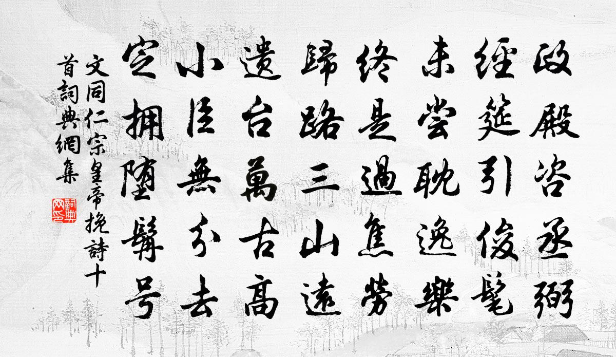 詩詞名句歷史字典書法欣賞書法字典國語詞典說文解字康熙字典古漢語字典標 題 作 者 詩 句 仁宗皇帝輓詩十首作者:文同 朝代:宋代仁宗皇帝輓詩十首原文政殿咨丞弼,經筵引俊髦。未嘗耽逸樂,終是過焦勞。歸路三山遠,遺台萬古高。小臣無分去,定擁墮髯號。詩詞問答問:仁宗皇帝輓詩十首的作者是誰?答:文同問:仁宗皇帝輓詩十首寫於哪個朝代?答:宋代文同仁宗皇帝輓詩十首書法欣賞仁宗皇帝輓詩十首書法作品詩詞推薦題劉養晦練江並序文炳方回〔宋代〕朝為練江吟,暮為練江吟。練江果何在,曰在江之陰。練江不在眼,練江常在心。譬之古君子,土思操南音。褰裳羅盞山張灝〔宋代〕道盞原非盞,言羅不是羅。只因山突起,個個盡如螺。挽趙止善牟巘五〔宋代〕自處若素士,不知為貴游。多聞每是正,寡慾更清修。方借望郎重,已深宗國憂。嗟哉事竟爾,喬木委林丘。同神泉縣尉游海惠院登三惠閣有懷漢州同官郭印〔宋代〕出郭幽尋偶一欣,初來猶未嘆離群。誰知蕭寺懸荒野,卻有層樓插暮雲。煙外遙岑仍隱隱,風邊落葉更紛紛。天寒地偏釋文珦〔宋代〕地偏人到稀,倦客老柴扉。屈指同游盡,回頭萬事違。石泉清夢枕,山月冷禪衣。身與孤雲合,無心自在飛。頌古三十一首釋如本〔宋代〕大庾嶺頭功德成,謾言點眼訪知音。紅爐片雪明端的,象外風光照古今。善哉行有美一人曹丕〔魏晉〕有美一人,婉如清揚。妍姿巧笑,和媚心腸。知音識曲,善為樂方。哀弦微妙,清氣含芳。流鄭激楚,度宮中商。贈逸民詩 八蕭衍〔南北朝〕思懷友朋。遠至歡適。躬開二敬。徑延三益。繾綣故舊。綢繆宿昔。善言無違。相視莫逆。情如斷金。義若投石。小舟晚興四首楊萬里〔宋代〕潮痕初落水猶肥,雨點才來已復微。半濕岸沙危欲落,牽船稚子去如飛。甲子歲罷吉水縣過鍾陵時暮春維舟江渚謁柴太尉席上作李中〔唐代〕公侯延駐暫踟躕,況值風光三月初。亂落杯盤花片小,靜籠池閣柳陰疏。舟維南浦程雖阻,飲預西園興有餘。卻笑導引佚名〔宋代〕鼎湖龍遠,九祭畢嘉觴。遙望白雲鄉。簫笳淒咽離天闕,千仗儼成行。聖神昭穆盛重光。寶室萬年藏。皇心追慕思岸幘陳與義〔宋代〕岸幘立清曉,山頭生薄陰。亂雲交翠壁,細雨濕青林。時改客心動,鳥鳴春意深。窮鄉百不理,時得一閒吟。游揚子云墨池袁說友〔宋代〕平堤修柏轉林塘,飛蓋同升吐鳳堂。後世有傳由準易,斯文無複數他揚。草玄大啟天人奧,池色猶關翰墨場。弔古【商調】掛金索_我愛閒居,佚名〔元代〕我愛閒居,心鏡常皎潔。境滅情忘,自然無分別。雲散長空,露出清霄月。此個家風,有口難分說。 一更里澄鄰舍橫逆陳淳〔宋代〕茫茫薄俗沸蚊蛆,禮義全無一點余。只得杜門對賢聖,專來教子讀詩書。千般橫直休乾己,一切是非無問渠。若救棲真紀勝贈立公二首金履祥〔宋代〕高真棲處在山阿,古寺山靈久護訶。三洞奇峰踞龍虎,千秋喬木長藤蘿。泉流清澈天池近,石竇巃嵷雲氣多。一片方氏墓廬扁曰白雲飛處薛嵎〔宋代〕諸峰互隱蔽,一望一增悲。觸目易成感,思親無盡時。松扉陰似雨,翁仲立如痴。出岫亦何意,悠然自不知。浣溪沙(癸已豫章)趙師俠〔宋代〕日麗風和春晝長。杏花枝上正芬芳。無情社雨亦何狂。一洗嬌紅啼嫩臉,半開新綠映殘妝。畫梁空有燕泥香。迪侄屢餉新茶二首曾幾〔宋代〕敕廚羞煮餅,掃地供爐芬。湯鼎聊從事,茶甌遂策勛。興來吾不淺,送似汝良勤。欲作柯山點,當令阿造分。鷓鴣天辛棄疾〔宋代〕自古高人最可嗟。只因疏懶取名多。居山一似庚桑楚,種樹真成郭橐駝。雲子飯,水晶瓜。林間攜客更烹茶。君歸名句推薦山雪河冰野蕭瑟,青是烽煙白人骨。杜甫《悲青坂》 茅檐低小,溪上青青草。辛棄疾《清平樂·村居》 製法而自犯之,何以帥下?陳壽《三國志·魏書·武帝紀》 事在四方,要在中央。韓非及後人《韓非子·揚權》 共敵不如分敵,敵陽不如敵陰。佚名《三十六計·圍魏救趙》 得眾而不得其心,則與獨行者同實。管仲《管子·參患》 野店垂楊步,荒祠苦竹叢。范成大《寒食郊行書事》 長江悲已滯,萬里念將歸。王勃《山中》 朝為越溪女,暮作吳宮妃。王維《西施詠》 勿自暴,勿自棄。聖與賢,可馴致。李毓秀《弟子規·餘力學文》