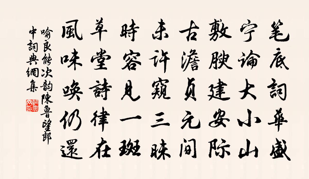 詩詞名句歷史字典書法欣賞書法字典國語詞典說文解字康熙字典古漢語字典標 題 作 者 詩 句 次韻陳魯望郎中作者:喻良能 朝代:宋代次韻陳魯望郎中原文筆底詞華盛,寧論大小山。敷腴建安際,古澹貞元間。未許窺三昧,時容見一斑。草堂詩律在,風味喚仍還。詩詞問答問:次韻陳魯望郎中的作者是誰?答:喻良能問:次韻陳魯望郎中寫於哪個朝代?答:宋代喻良能次韻陳魯望郎中書法欣賞次韻陳魯望郎中書法作品詩詞推薦偈頌一百二十三首釋普度〔宋代〕天書頒自九重來,萬壑煙雲盡豁開。竺土大仙燈燦爛,融融和氣靄樓台。又和八首劉克莊〔宋代〕白首還鄉鐵鑄關,雲泥不復計飛蟠。原田高下雨三日,庵屋中分雲半間。麻麥芃芃回秀色,茅柴薄薄暫酡顏。若非翌日對客雨中再和魏了翁〔宋代〕風雨盲程不少寬,告焉藐藐似殷頑。苦於風月佳時競,甘向雲霓望處慳。天角自從盈里缺,人心正要用時閒,浩然四明山中十絕韓采岩戴表元〔宋代〕洞深煙樹碧氤氳,只採靈苗不採薪。聞著蹤由多懶說,相逢莫有姓韓人。夜興李流謙〔宋代〕疲筋弱骨畏歊蒸,頗欲清言濯肺膺。風亂飛螢光細碎,露團幽篠醉懵騰。只應愛月痴猶在,更覺憎蚊忿未懲。竹屋百一詩 二十二應璩〔魏晉〕城狐不可掘。社鼠不可熏。送李敞逆婦敘州乃予友悅夫之子也晁公溯〔宋代〕初戲塗鴉壁,今升奠雁堂。真堪當寢醮。已共乃翁長。歲月良易得,詩晝宜自強。他時再相見,兒女即成行。端午帖子詞二十首一皇后合五首歐陽修〔宋代〕五色雙絲獻女功,多因荊楚記遺風。聖君照物同天鑒,不用江心百鏈銅。和主司王起(一作和主司酬周侍郎)崔軒〔唐代〕滿朝朱紫半門生,新榜勞人又得名。國器舊知收片玉,朝宗轉覺集登瀛。同升翰苑三年美,繼入花源九族榮。共仰蝶李商隱〔唐代〕孤蝶小徘徊,翩翾粉翅開。並應傷皎潔,頻近雪中來。過蘇祿東王墓顧炎武〔清代〕豐碑遙見炳奎題,尚憶先朝寵日殫。世有國人供灑掃,每勤詞客駐輪蹄。九河水壯龍狐出,十二城荒向鶴棲。下馬塞上曲二首·其二戴叔倫〔唐代〕漢家旌幟滿陰山,不遣胡兒匹馬還。願得此身長報國,何鬚生入玉門關。送龍州樊使君許棠〔唐代〕曾見邛人說,龍州地未深。碧溪飛白鳥,紅旆映青林。土產唯宜藥,王租只貢金。政成開宴日,誰伴使君吟。鷓鴣天晏幾道〔宋代〕綠橘梢頭幾點春,似留香蕊送行人。明朝紫鳳朝天路,十二重城五碧雲。歌漸咽,酒初醺,盡將紅淚濕湘裙。贛江小園即事五首劉克莊〔宋代〕投老誅茆水竹村,未論避謗且逃喧。屋低穩似於誰屋,園小賢于樂彼園。待小車來時上閣,有高軒過勿開門。蝸牛闕題王邁〔宋代〕拙成可抵萬金璧。從古至今不偶合,如何二妙一時出。仆也若調烏鵲鳴,斂翅甘受黃鶴擘。自從手授大雅文,孺子常熟縣破山寺高翥〔宋代〕古縣滄浪外,精藍縹緲間。木枯曾閱世,龍老解分山。鳥道秋迷跡,禪房晝掩關。詩成遊子去,流水自潺潺。江亭利登〔宋代〕江亭憑望久,野色暝蒼蒼。古木浮寒霧,空山入夕陽。水流前夜月,風作早來霜。卻笑垂綸者,因漁亦自忙。扇子詩李石〔宋代〕缺月空雲弄晚晴,讀書燈影度微明。梧桐未肯收殘雨,猶作窗間打葉聲。惜奴嬌巫山神女〔宋代〕瑤闕瓊宮,高枕巫山十二。睹瞿塘、千載灩灩雲濤沸。異景無窮好,閒吟滿酌金卮。憶前時。楚襄王,曾來夢中相名句推薦蜀國曾聞子規鳥,宣城還見杜鵑花。李白《宣城見杜鵑花 / 子規》 人無禮則不生,事無禮則不成,國家無禮則不寧。荀子《荀子·修身》 自憐十五餘,顏色桃李紅。李白《長干行二首》 鶯鶯燕燕分飛後,粉淡梨花瘦。元好問《虞美人·槐陰別院宜清晝》 幼敏悟過人,讀書輒成誦。歐陽修《畫地學書》 團扇,團扇,美人病來遮面。王建《宮中調笑·團扇》 若教眼底無離恨,不信人間有白頭。辛棄疾《鷓鴣天·晚日寒鴉一片愁》 實無有法佛得阿耨多羅三藐三菩提。鳩摩羅什譯《金剛經·究竟無我》 平生端有活國計,百不一試薶九京。黃庭堅《送范德孺知慶州》 越人語天姥,雲霞明滅或可睹。李白《夢遊天姥吟留別 / 別東魯諸公》