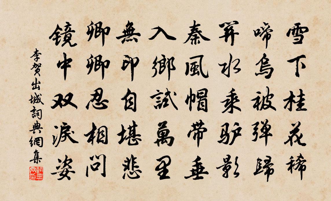 雪下桂花稀,啼烏被彈歸。關水乘驢影,秦風帽帶垂。