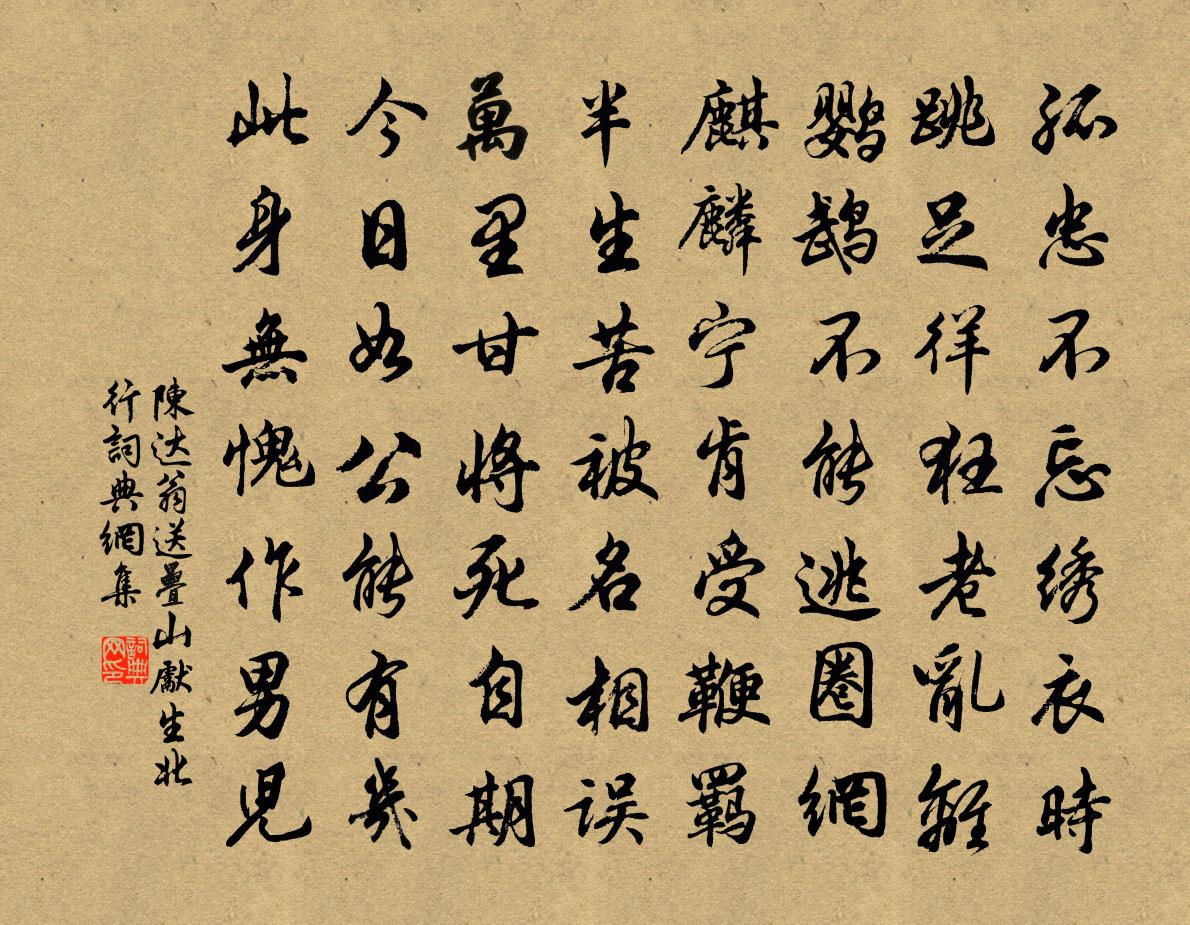 詩詞名句歷史字典書法欣賞書法字典國語詞典說文解字康熙字典古漢語字典標 題 作 者 詩 句 送疊山先生北行作者:陳達翁 朝代:宋代送疊山先生北行原文孤忠不忘繡衣時,跳足徉狂老亂離。鸚鵡不能逃圈網,麒麟寧肯受鞭羈。半生苦被名相誤,萬里甘將死自期。今日如公能有幾,此身無愧作男兒。詩詞問答問:送疊山先生北行的作者是誰?答:陳達翁問:送疊山先生北行寫於哪個朝代?答:宋代陳達翁送疊山先生北行書法欣賞送疊山先生北行書法作品詩詞推薦寄同年朱景淵通判八首劉宰〔宋代〕滕子嗜古學,萬卷作生計。孤燈耿夜闌,盜畏不敢睨。至寶世不售,虛名竟何利。尚想古城隅,幽花開繞砌。武后明堂樂章。皇帝行武則天〔唐代〕仰膺歷數,俯順謳歌。遠安邇肅,俗阜時和。化光玉鏡,訟息金科。方興典禮,永戢干戈。送鄭秉叔西征王邁〔宋代〕聊轡而西三十程,風餐雨宿費經營。間關閱舊途經熟,老大逢新曆日驚。我正與時相枘鑒,君方隨詔赴弓旌。獨班兩同心仇遠〔宋代〕踏青歸後,小步西園。翠袖薄、新篁難倚,綠窗潤、弱絮輕黏。春風急,暮雨悽然。早聽啼鵑。憶昔幾度湖邊。款客路吳仁璧〔唐代〕人寰急景如波委,客路浮雲似蓋輕。回首故山天外碧,十年無計卻歸耕。次韻陳宜中攜詩見防黃公度〔宋代〕朝來乾鵲啅檐牙,昨夜燈開送喜花。好事寧期貴公子,攜詩肯訪野人家。客愁到此逢寒食,薄宦羈人屢歲華。載酒妙喜寺達公禪齋寄李司直公孫、房都曹德裕…四十二韻皎然〔唐代〕我祖傳六經,精義思朝徹。方舟頗周覽,逸書亦備閱。墨家傷刻薄,儒氏知優劣。弱植庶可凋,苦心未嘗輟。中年句楊徽之〔唐代〕新霜染楓葉,皓月臘蘆花。裴僕射東亭錢起〔唐代〕鳳扆任匡濟,雲溪難退還。致君超列辟,得道在榮班。朱戟繚垣下,高齋芳樹間。隔花開遠水,廢卷愛晴山。晚沐題孫元京近詩方回〔宋代〕後生如蝟總能詩,骨弱瞳昏俗不治。忽似再生蕭德藻,已應突過李之儀。掃紅紫陣觀黃落,懸萬千鈞系一絲。精刮菩薩蠻馮延巳〔唐代〕金波遠逐行人云,疏星時作銀河渡。花影臥鞦韆,更長人不瞑。玉箏彈未徹,鳳髻鸞釵脫。憶夢翠蛾低,微風涼繡過廬山遇雨楊時〔宋代〕江風吹雨逐人來,行過山前首重回。絕頂隔雲看不見,石棱崖角獨崔嵬。詠菰詩沈約〔南北朝〕結根布洲渚。垂葉滿皋澤。匹彼露葵羹。可以留上客。暫住新市行次謝村二首張鎡〔宋代〕推窗面面得涼多,陂濼風翻渴水荷。人語忽驚群鶩起,隔蘆知是小船遇。徐太博母夫人輓詞戴栩〔宋代〕孫榮子貴問何如,籩斝盈庭學魯儒。若盡禮宗天下少,縱修彤史古人無。歸眠山館還知命,賜吉朝衣得暫娛。欲寄冬節忤寒約客默坐爇品字柴作五禽戲體中差小鄭清之〔宋代〕牡丹驕春醉無力,艷紫妖紅錦新織,鹿解銜花空誤唐,楚以姬歸竟亡息。何如野外挺孤操,照水淵然有深識。昂昂釣月樓王南美〔宋代〕居士作層樓,不愛風花雪。待得野雲收,只釣溪邊月。雨中同曹尉王儦岩二首趙蕃〔宋代〕舊說吾邦岩谷多,歷觀無愈此嵯峨。今朝喚渡仍沖雨,慚愧溪神不我訶。獻制誥楊舍人鄭谷〔唐代〕為郡東吳只飲冰,瑣闈頻降鳳書征。隨行已有朱衣吏,伴直多招紫閣僧。窗下調琴鳴遠水,簾前睡鶴背秋燈。葦陂它山堰薛叔振〔宋代〕官為唐令尹,心切禹蒸民。疊石流川水,分波及稼雲。萬濤驚不夜,千古見如新。更有朝宗脈,聲容匪獨鄞。名句推薦知不知,上矣。過者之患,不知而自以為知。呂不韋《呂氏春秋·論·似順論》 水晶簾動微風起,滿架薔薇一院香。高駢《山亭夏日》 時人不識農家苦,將謂田中谷自生。顏仁郁《農家》 宜有詞仙,擁素雲黃鶴,與君遊戲。姜夔《翠樓吟·淳熙丙午冬》 湖闊兼雲霧,樓孤屬晚晴。杜甫《陪裴使君登岳陽樓》 君家何處住,妾住在橫塘。崔顥《長干行·君家何處住》 性孤高似柏,阿嬌金屋。陸容《滿江紅·詠竹》 一年三百六十日,多是橫戈馬上行。戚繼光《馬上作》 北郭清溪一帶流,紅橋風物眼中秋,綠楊城郭是揚州。王士禎《浣溪沙·紅橋》 遲日江山麗,春風花草香。杜甫《絕句二首》