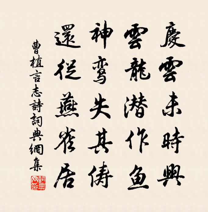 詩詞名句歷史字典書法欣賞書法字典國語詞典說文解字康熙字典古漢語字典標 題 作 者 詩 句 言志詩作者:曹植 朝代:魏晉言志詩原文慶雲未時興。雲龍潛作魚。神鸞失其儔。還從燕雀居。詩詞問答問:言志詩的作者是誰?答:曹植問:言志詩寫於哪個朝代?答:魏晉問:曹植的名句有哪些?答:曹植名句大全曹植言志詩書法欣賞言志詩書法作品詩詞推薦寓吳門十首陳造〔宋代〕日日煙林野市間,路人應作老狂看。排門賞竹寧辭罵,踏雪尋梅苦耐寒。春日即事六言劉克莊〔宋代〕藻密難呼金鯽,柳疏未囀黃鸝。華發無重黑理,燒痕有再青時。早過臨淮陶翰〔唐代〕夜來三渚風,晨過臨淮島。湖中海氣白,城上楚雲早。鱗鱗魚浦帆,漭漭蘆洲草。川路日浩蕩,惄焉心如搗。且言子夜四時歌 春歌 二蕭衍〔南北朝〕蘭葉始滿地。梅花已落枝。持此可憐意。摘以寄心知。安德山池宴集(安德,楊師道封號)李百藥〔唐代〕朝宰論思暇,高宴臨方塘。雲飛鳳台管,風動令君香。細草開金埒,流霞泛羽觴。虹橋分水態,鏡石引菱光。上才金陵雜興二百首蘇泂〔宋代〕賞心亭前白鷺洲,淮水東畔水東流。只知覽古生許恨,不知身世自悠悠。訪山友曹松〔唐代〕一徑通高屋,重雲翳兩原。山寒初宿頂,泉落未知根。急雨洗荒壁,驚風開靜門。聽君吟廢夜,苦卻建溪猿。道逢王元龜閣學楊萬里〔宋代〕秋日才昇卻霧中,先生更去恐群空。古誰雲遠今猶古,公亦安知世重公。軒冤何緣關此老,江山所過總清風。我行送友人劉宰〔宋代〕凜凜霜台起事功,翛翛三徑任窮通。幾因節物傷離別,無奈行藏苦異同。白露感懷悲社老,黃樓得句憶坡翁。雁行秋夜司馬光〔宋代〕城上調秋角,煙間發暝鍾。風枝搖宿鳥,霜草覆寒蛩。久負觀書樂,端愁束帶恭。暫因群吏散,還得遂幽慵。冬夕陸游〔宋代〕犬吠驚飄葉,禽喧換宿枝。墮空霜肅肅,垂地斗離離。野叟讀書罷,高城吹角悲。功名渾錯料,老病卻如期。一葉落·淚眼注朱彝尊〔清代〕淚眼注,臨當去,此時欲住已難住。下樓復上樓,樓頭風吹雨。風吹雨,草草離人語。送賈三北游劉長卿〔唐代〕賈生未達猶窘迫,身馳匹馬邯鄲陌。片雲郊外遙送人,斗酒城邊暮留客。顧予他日仰時髦,不堪此別相思勞。雨色和季弟韻二十首劉克莊〔宋代〕蠡管安能測混茫,楚狂敢道國人狂。似聞函谷逐秦客,恰見初筵笑郭郎。壯志不如乘下澤,微辭何足諷高唐。入山漳蘭為丁竊貨其半紀實四首劉克莊〔宋代〕五十盆蒼翠,皆從異縣求。不能防狡窟,未免破鴻溝。慘甚兵初過,苛於吏倍抽。渠儂慕銅臭,肯為國香謀。次韻戴帥初不赴丹山醵飲二首陳著〔宋代〕危時時節已難得,況得知心盍共杯。我檄方從風裡去,君詩卻占日前來。何須一醉獨重九,但是相過多幾回。門外數花風(別義興諸友)張炎〔宋代〕好遊人老,秋鬢蘆花共色。征衣猶戀去年客。古道依然黃葉。誰家蕭瑟。自笑我、如何是得。酒樓仍在,流落天涯頌古十六首釋道寧〔宋代〕抹粉塗坯恰似獃,神頭鬼面舞三台。千千萬萬人窺看,子細不知誰見來。山居即事釋紹嵩〔宋代〕物色催年老,誰令眼界幽。不憂緣不動,無意亦無求。寂寞了閒事,迂疏卻自由。功名今晚矣,萍梗任飄流。贈劉琨詩二十首 十二盧諶〔魏晉〕塗炭既濟。寇挫民阜。謬其疲隸。授之朝右。上懼任大。下欣施厚。實祗高明。敢忘所守。名句推薦傷心重見,依約眉山,黛痕低壓姜夔《慶宮春·雙槳蓴波》 晨起開門雪滿山,雪晴雲淡日光寒。鄭燮《山中雪後》 漢帝重阿嬌,貯之黃金屋。李白《妾薄命》 人去鞦韆閒掛月,馬停楊柳倦嘶風。吳文英《望江南·三月暮》 屈子冤魂終古在,楚鄉遺俗至今留。邊貢《午日觀競渡》 故木受繩則直,金就礪則利,君子博學而日參省乎己,則知明而行無過矣。荀子《荀子·勸學》 近來攀折苦,應為別離多王之渙《送別》 男兒西北有神州,莫滴水西橋畔淚。劉克莊《玉樓春·戲林推》 蜃散雲收破樓閣,虹殘水照斷橋粱。白居易《江樓晚眺景物鮮奇吟玩成篇寄水部張員外》 太乙近天都,連山接海隅王維《終南山》