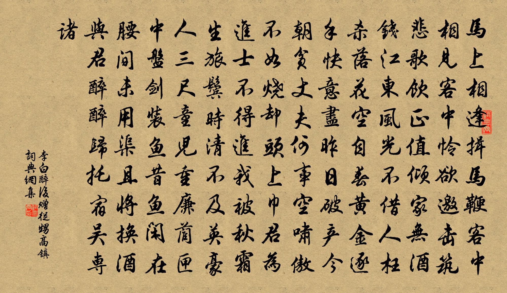 馬上相逢揖馬鞭,客中相見客中憐。欲邀擊築悲歌飲,正值傾家無酒錢。