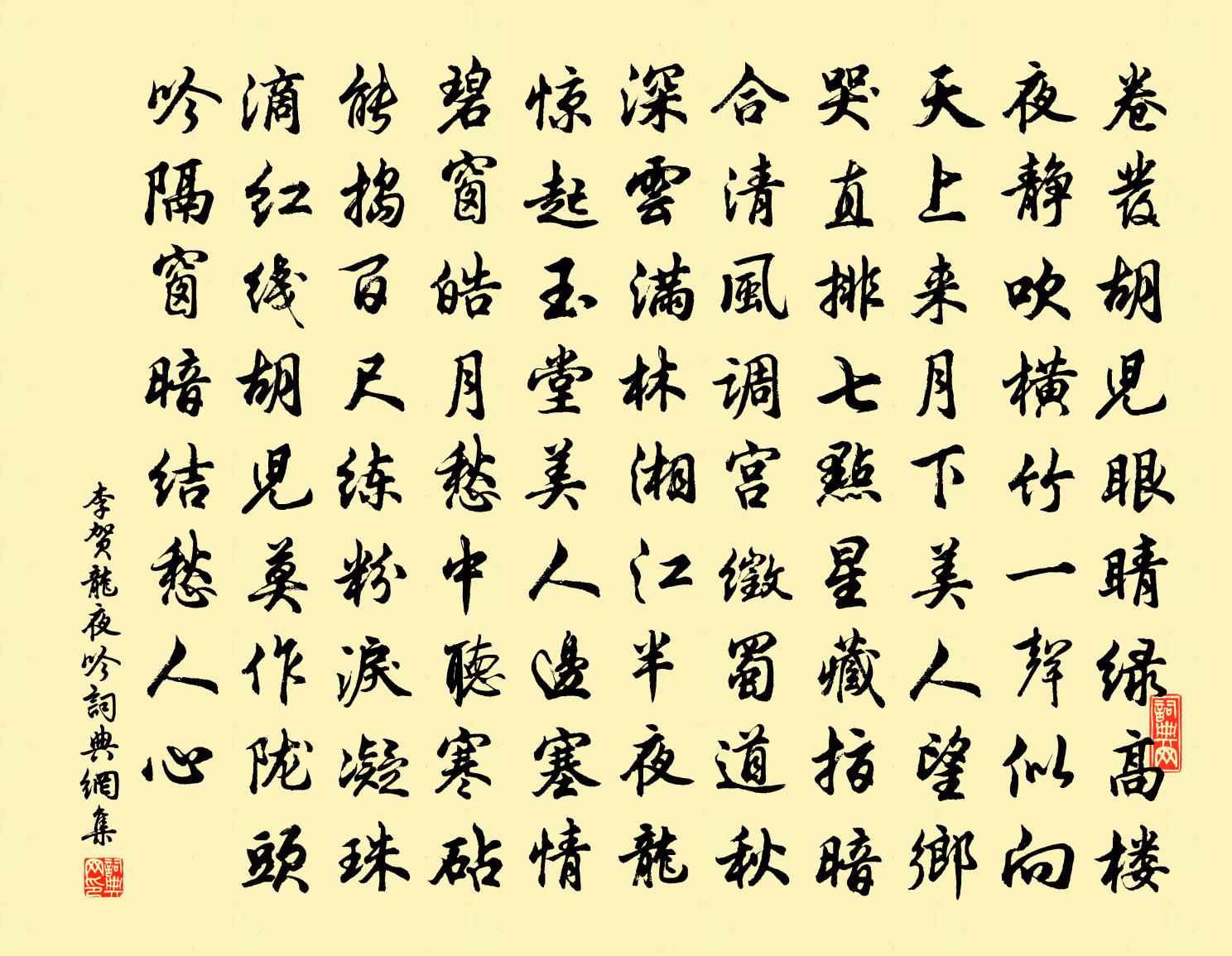 捲髮胡兒眼睛綠,高樓夜靜吹橫竹。一聲似向天上來,