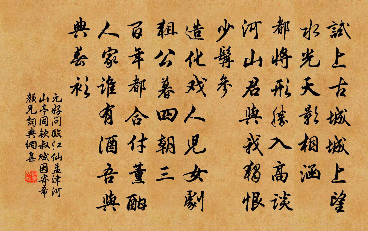 試上古城城上望,水光天影相涵。都將形勝入高談。