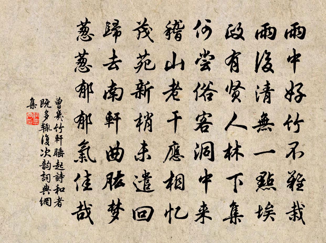 雨中好竹不難栽,雨後清無一點埃。政有賢人林下集,何嘗俗客洞中來。