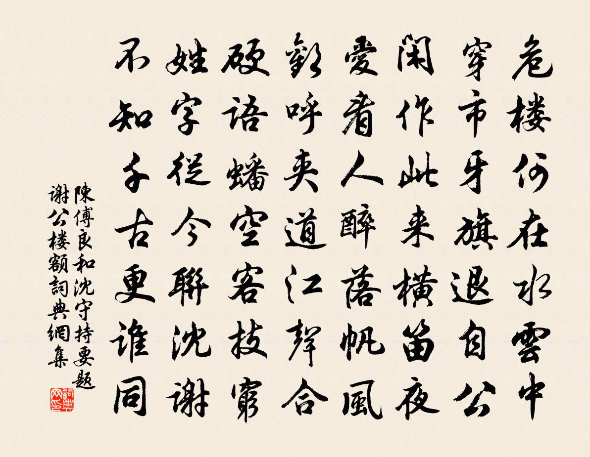 詩詞名句歷史字典書法欣賞書法字典國語詞典說文解字康熙字典古漢語字典標 題 作 者 詩 句 和沈守持要題謝公樓額作者:陳傅良 朝代:宋代和沈守持要題謝公樓額原文危樓何在水雲中,穿市牙旗退自公。閒作此來橫笛夜,愛看人醉落帆風。歡呼夾道江聲合,硬語蟠空客技窮。姓字從今聯沈謝,不知千古更誰同。詩詞問答問:和沈守持要題謝公樓額的作者是誰?答:陳傅良問:和沈守持要題謝公樓額寫於哪個朝代?答:宋代陳傅良和沈守持要題謝公樓額書法欣賞和沈守持要題謝公樓額書法作品詩詞推薦展敬上鳳林寺詩薛道衡〔隋代〕凈土連幽谷。寶塔對危峯。林棲丹穴鳳。地邇白沙龍。獨岩樓逈出。復道閣相重。洞開朝霧斂。石濕曉雲濃。高筱夜到漁家(一作宿漁家)張籍〔唐代〕漁家在江口,潮水入柴扉。行客欲投宿,主人猶未歸。竹深村路遠,月出釣船稀。遙見尋沙岩,春風動草衣。菩薩蠻趙長卿〔宋代〕隔江一帶春山好。平林新綠春光老。休去倚闌乾。飛紅不忍看。東流何處去。便是歸舟路。芳草外斜陽。行人更斷次韻秋日遣興李洪〔宋代〕西風暑退喜清秋,倦客漂流滄海頭。用舍行藏知有命,山林鐘鼎豈能謀。汗青漫志三餘樂,養素寧忘一溉收。鵬鷃梅花七絕陳師道〔宋代〕幽恨清愁幾萬端,故將巧笑破霜寒。落英收拾供騷客,秋菊從來不足餐。扈從朝獻四首任希夷〔宋代〕扈從齊宮每賜茶,玉甌常淪建溪芽。今朝值雨傳宣免,只向階前侍翠華。題張道隱太山祠畫龍蔣貽恭〔唐代〕世人空解競丹青,惟子通玄得墨靈。應有鬼神看下筆,豈無風雨助成形。威疑噴浪歸滄海,勢欲拿雲上杳冥。靜閉偶作晁公溯〔宋代〕官居復何有,幽事亦堪夸。高樹行春蔓,疏篁上晚花。常年皆作客,隨地即為家。尚想關山路,傷心故國賒。喜收知舊書,復畏答,書二絕范成大〔宋代〕強裁尺互答相思,兩目眵昏腕力疲。牽率老夫令至此,門前猶說報書遲。孤雁舒岳祥〔宋代〕憂心悄悄睡示能,開門看月一片冰。竅木相磨作鬼語,凍星入牖如螢青。孤雁哀號向何處,老夫掩耳不欲聽。爾從題汪水雲詩十首羅志仁〔宋代〕曾住西湖畫幅間,楚鄉久客亦良難。先生道眼無分別,浙水江雲一樣看。句宋庠〔宋代〕羽毛丹穴種,頭角玉麟兒。臨江仙 次解東庵學士詠梅韻蒲道源〔元代〕聞說東庵梅最好,何須遠訪西湖。金衣相映玉肌膚。幽香俱可愛,顏色不妨殊。花主惜春仍好事,作詩清似林逋。偈頌六十八首釋法薰〔宋代〕不問有言,不問無言。靈山拄杖,斜靠壁邊。風光都占盡,不費一文錢。定光南安岩鄭弼〔宋代〕石聳靈岩接太虛,百千年稱定光居。未知天上何方有,應是人間別地無。句張釜〔宋代〕鬢毛寧與化工爭。春夜對月彈琴有懷劉學箕〔宋代〕一春春雨連春陰,今夕何夕月滿林。舉頭遙望星漢碧,皎皎明鏡縣東岑。欄桿浩歟三顧影,有酒有酒誰與斟。我思戲葛試官晃詠之〔宋代〕沒興主司逢葛八,賢弟被黜兄薦發。細思堪惜又堪嫌,一壁有眼半壁瞎。秋懷十首陳師道〔宋代〕有家汴泗間,歲久榛棘荒。稍知田家樂,感此歸意忙。老馬 * 櫪,遊魂還故鄉。四十尚無君,天下未敢忘。挽程淳老史堯弼〔宋代〕戒定通前念,蘇黃早見期。源流知袞袞,金印漫累累。白首風塵外,丹砂歲月遲。泉台無復恨,喬木有餘悲。名句推薦永豐柳,無人盡日飛花雪。張先《千秋歲·數聲鶗鴂》 莫嫌舉世無知己,未有庸人不忌才。查慎行《三閭祠》 志以淡泊明,而節從肥甘喪矣。洪應明《菜根譚·概論》 金帶連環束戰袍,馬頭沖雪度臨洮。馬戴《出塞詞》 菩薩應如是布施。不住於相。鳩摩羅什譯《金剛經·妙行無住》 更可惜,雪中高樹,香篝熏素被。周邦彥《花犯·小石梅花》 萬一禪關砉然破,美人如玉劍如虹。龔自珍《夜坐二首》 思來江山外,望盡煙雲生。張九齡《秋晚登樓望南江入始興郡路》 輦轂繁華事可傷,師師垂老過湖湘劉子翬《汴京紀事》 蘭生幽谷,不為莫服而不芳。舟在江海,不為莫乘而不浮。君子行義,不為莫知而止休。劉安及其門客《淮南子·說山訓》