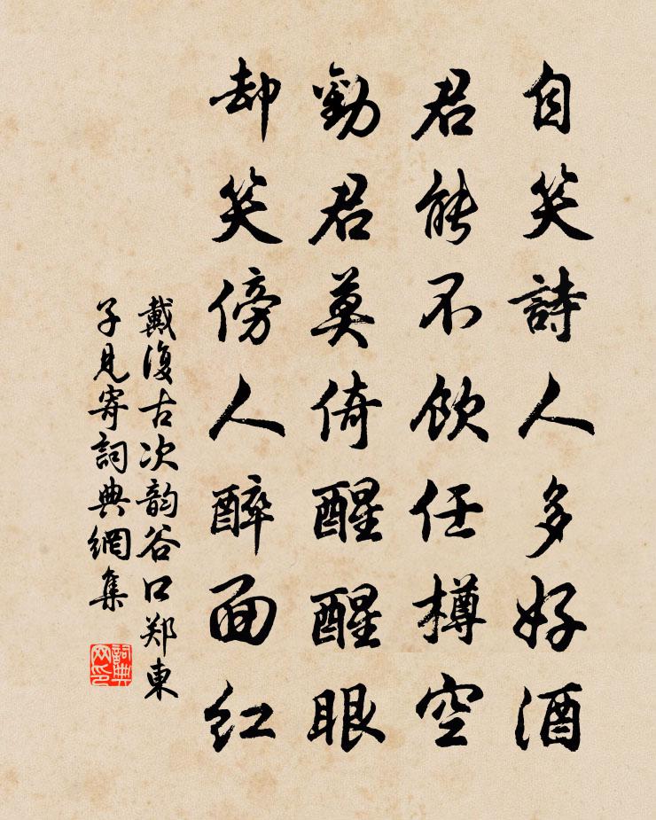 自笑詩人多好酒,君能不飲任樽空。勸君莫倚醒醒眼,卻笑傍人醉面紅。