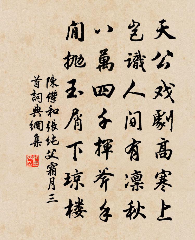 詩詞名句歷史字典書法欣賞書法字典國語詞典說文解字康熙字典古漢語字典標 題 作 者 詩 句 和張純父霜月三首作者:陳杰 朝代:宋代和張純父霜月三首原文天公戲劇高寒上,豈識人間有凜秋。八萬四千揮斧手,閒拋玉屑下瓊樓。詩詞問答問:和張純父霜月三首的作者是誰?答:陳杰問:和張純父霜月三首寫於哪個朝代?答:宋代陳杰和張純父霜月三首書法欣賞和張純父霜月三首書法作品詩詞推薦黃巢墓釋鑒〔宋代〕圖王爭霸業,知古仗戈矛。英風今何在,都成一古丘。晚晴二首趙蕃〔宋代〕山中岑郁倍懷人,況是春來陰雨頻。到得小晴堪細履,又嗟落莫與誰親。重陽山居司空圖〔唐代〕此身逃難入鄉關,八度重陽在舊山。籬菊亂來成爛熳,家僮常得解登攀。年隨曆日三分盡,醉伴浮生一片閒。滿目次韻鄭檢法與胡教授論詩項安世〔宋代〕古詩亡狗曲,新樣入桑間。論稍經坡谷,人方敬杜顏。天機轉杼軸,僧衲忌爛斑,妙處無多洩,從來造物慳。登嵩山十首 玉女窗蘇轍〔宋代〕岩竇有虛明,曨曨發晴曉。真人無儔匹,窗下晨妝早。門開秋雨入,室靜長風掃。絕跡杳難尋,朱顏未嘗老。醜奴兒/採桑子李綱〔宋代〕枝頭萬點妝金蕊,十里清香。十里清香。解引幽人雅思長。玉壺貯水花難老,淨幾明窗。淨幾明窗。褪下殘英蔌蔌寄萬齊融李頎〔唐代〕名高不擇仕,委世隨虛舟。小邑常嘆屈,故鄉行可游。青楓半村戶,香稻盈田疇。為政日清淨,何人同海鷗。搖巾月橋詩喻良能〔宋代〕天迥月逾晶,地偏人亦靜。簫然尋丈橋,寄此綠淨境。洗盞薦寒光,掬泉弄清影。塵遠耳目醒,令人發深省。冬日雜興趙蕃〔宋代〕楊柳迎霜敗,枇杷隔歲花。柴桑今學隱,杜曲舊為家。北訊時聞雁,南烹久厭蛙。歸津隔吳越,隨地且桑麻。東林徹長老請贊釋心月〔宋代〕寒浦先零之姿,古岩後雕之操。雪滿顛一味寒酸,雲半肩十分枯槁。任緣去住也,隨處有餘。信手牛來也,用時恰柳絮張夫人〔唐代〕靄靄芳春朝,雪絮起青條。或值花同舞,不因風自飄。過尊浮綠醑,拂幌綴紅綃。那用持愁玩,春懷不自聊。奉酬楊樂道王安石〔宋代〕邂逅聯裾殿閣春,卻愁容易即離群。相知不必因相識,所得如今過所聞。近代聲名出廬駱,前朝筆墨數淵雲。與公數詩煎迫太甚再為花下一轉語虞儔〔宋代〕蝶自無心懶,花應有意開。含香特珍寵,顧影尚低回。畢竟風流在,從渠火急催。浮華不相待,莊重政徘徊。游華山雲際寺(一作游少華山甘露寺)張喬〔唐代〕少華中峰寺,高秋眾景歸。地連秦塞起,河隔晉山微。晚木蟬相應,涼天雁並飛。殷勤記岩石,只恐再來稀。盱眙北望戴復古〔宋代〕北望茫茫渺渺間,鳥飛不盡又飛還。難禁滿目中原淚,莫上都梁第一山!和周少晳詠梅韻五首廖行之〔宋代〕孤根應得暖先回,天惜花房遣護開。早是冰肌自清絕,卻因冠玉更奇瑰。望江南淨圓〔宋代〕娑婆苦,生老病無常。九竅腥臊流穢污,一包膿血貯皮囊。爭弱又爭強。隨妄想,耽欲更荒唐。念佛看經雲著相,送壽州司理張元輿梅堯臣〔宋代〕清川夜流明月光,城上有烏啼女牆。月明不掩斗與氣,鳥啼未歸雲點霜。霜寒月冷古時獄,下有苔蠹之雄鋩。水方新晴陸游〔宋代〕掛冠湖上遂吾初,捫腹消搖適有餘。羹煮野蔬元足味,屋茨生草亦安居。市壚分熟通賒酒,鄰舍情深許借驢。更喜題林氏香嚴庵樓鑰〔宋代〕緩步尋佳處,林深路欲迷。偃松披數畝,立竹漱三谿。瀹茗憑山檻,呼燈照石梯。輕輿空翠濕,投暝喜幽棲。名句推薦柳如眉,雲似發,鮫綃霧縠籠香雪。魏承班《漁歌子·柳如眉》 縱被無情棄,不能羞。韋莊《思帝鄉·春日游》 今歲今宵盡,明年明日催。史青《應詔賦得除夜》 造化鍾神秀,陰陽割昏曉。杜甫《望岳》 誰知萬里客,懷古正躊躕。陳子昂《峴山懷古》 見兔而顧犬,未為晚也;亡羊而補牢,未為遲也。劉向《戰國策·楚四·莊辛謂楚襄王》 兩岸桃花烘日出,四圍高柳到天垂。一尊心事百年期。姜彧《浣溪沙·山滴嵐光水拍堤》 風驅急雨灑高城,雲壓輕雷殷地聲。劉基《五月十九日大雨》 三教於是乎可一矣。王通《中說·卷五·問易篇》 巧詐不如拙誠。韓非及後人《韓非子·說林上》