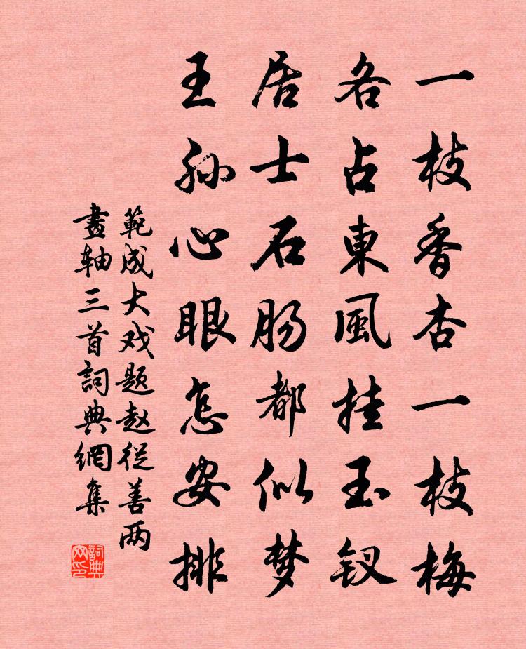 一枝香杏一枝梅,各占東風掛玉釵。居士石腸都似夢,王孫心眼怎安排?