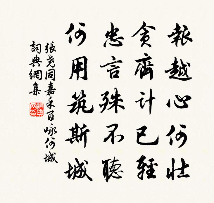 詩詞名句歷史字典書法欣賞書法字典國語詞典說文解字康熙字典古漢語字典標 題 作 者 詩 句 嘉禾百詠何城作者:張堯同 朝代:宋代嘉禾百詠何城原文報越心何壯,貪齊計已輕。忠言殊不聽,何用築斯城。詩詞問答問:嘉禾百詠何城的作者是誰?答:張堯同問:嘉禾百詠何城寫於哪個朝代?答:宋代張堯同嘉禾百詠何城書法欣賞嘉禾百詠何城書法作品詩詞推薦恣逍遙王哲〔元代〕氣全神神燕坐。來與四方聚課。說靈根坤對過。平恁麽。么妙自無人我。戟鋒交,平相賀。中寶結成一顆。是惺惺送高執中赴文州楒林李新〔宋代〕兩眼追霜鷹,鐵石懸肺腑。何為向北風,送子淚如雨。平生珍古交,及今未多數。相逢漢江曲,聊作蘋鷗聚。我疾三月三日雨作遣悶十絕句楊萬里〔宋代〕出門著雨不能皈,借得青蓑著片時。春染萬花知了未,雲偷千嶂忽何之。與劉天游伯仲夜話霅中戲贈王琮〔宋代〕水亭新得月,坐對白苹洲。共說一夜話,惜無多日留。手抄詩許借,口誦呪如流。最羨同吟處,對床風雨秋。臨高台沈濬〔宋代〕上台意悲傷,下台夢顛倒。不緣台高下,心腸自草草。台下東西水,水繞南北道。一水一重山,紅顏望中老。鯨川八景西園秋暮家鉉翁〔宋代〕九九中間易道在,天心惟許菊花知。一年好景君須識,都在西園把菊時。吳徐憲應特陳應龍〔宋代〕弱冠弄筆硯,恥為章句儒。夜半劍氣發,精光射天衢。欲分天子憂,張燈閱地圖。七閩山水秀,我亦思故廬。世事見梅方回〔宋代〕翠竹陰森護槿籬,玉梅庭院粉牆欹。幾年避地無人住,猶有花開一兩枝。荊州十首蘇軾〔宋代〕南方舊戰國,慘澹意猶存。慷慨因劉表,淒涼為屈原。廢城猶帶井,古姓聚成村。亦解觀形勝,昇平不敢論。如夢令 七夕朱彝尊〔清代〕記摘小園瓜李,七夕年時花底。呆女嫁痴牛,嫁到良宵十四。彈指,彈指,好事已成虛事。別鄭谷戴叔倫〔唐代〕朝陽齋前桃李樹,手栽清蔭接比鄰。明年此地看花發,愁向東風憶故人。和車制趙希逢〔宋代〕木牛新意出南陽,萬里飛芻不絕糧。故智莫能遵此日,卻將獨輻獻岩廊。句李建中〔宋代〕按部先春鳳林野,寫懷空望鹿門山。次韻高子文途中見寄李若水〔宋代〕人生半在客途中,休著狂蹤比斷蓬。別後夢煩莊叟蝶,邇來書誤子卿鴻。月同千里水雲隔,天各一涯談笑空。趁取夙興陸游〔宋代〕鍾巳樓頭動,燈猶帳外殘。霜濃愁枕冷,病起覺衣寬。鶴怨憑誰解?鷗盟恐已寒。君恩等天地,應許納微官。寓興七首魏野〔宋代〕秦鑒雖至明,不能自照燭。楚劍徒雲利,翻將 * 戮。有國苟失賢,若跣瞽雙目。況履艱險途,舉步成顛覆。秦楚送饒漕高斯得〔宋代〕已催四牡使騑歸,江漢旋歌命召詩。借問儀庭集鸞鳳,何如當道臥熊羆。柳迎士行成陰密,樓得元規發興奇。少待別韋參軍高適〔唐代〕二十解書劍,西遊長安城。舉頭望君門,屈指取公卿。國風沖融邁三五,朝廷歡樂彌寰宇。白璧皆言賜近臣,布衣又雪杜甫〔唐代〕南雪不到地,青崖沾未消。微微向日薄,脈脈去人遙。冬熱鴛鴦病,峽深豺虎驕。愁邊有江水,焉得北之朝。送史寀滑州謁賈僕射盧綸〔唐代〕朱門洞啟儼行車,金鐍裝囊半是書。君向東州問徐胤,羊公何事滅吹魚。名句推薦飛流直下三千尺,疑是銀河落九天。李白《望廬山瀑布》 柳重煙深,雪絮飛來往。歐陽修《蝶戀花·面旋落花風蕩漾》 身有傷,貽親憂。德有傷,貽親羞。李毓秀《弟子規·入則孝》 無一語,對芳尊。安排腸斷到黃昏。秦觀《鷓鴣天·枝上流鶯和淚聞》 桃花落,閒池閣。山盟雖在,錦書難托。陸游《釵頭鳳·紅酥手》 白雲依靜渚,春草閉閒門。劉長卿《尋南溪常山道人隱居 / 尋南溪常道士》 舉大事,必慎其終始戴聖《禮記·文王世子》 以其行理也。行理性於染當。墨子《墨子·03章 所染》 雨歇梧桐淚乍收,遣懷翻自憶從頭。納蘭性德《浣溪沙·雨歇梧桐淚乍收》 待到黃昏月上時,依舊柔腸斷。程垓《卜運算元·獨自上層樓》