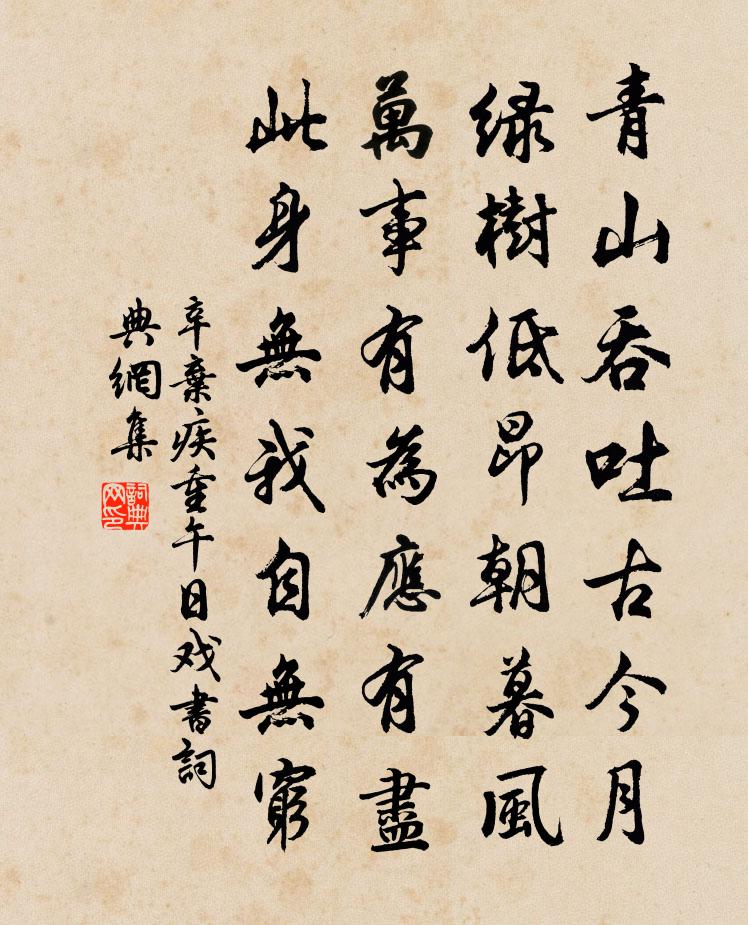 青山吞吐古今月,綠樹低昂朝暮風。萬事有為應有盡,此身無我自無窮。
