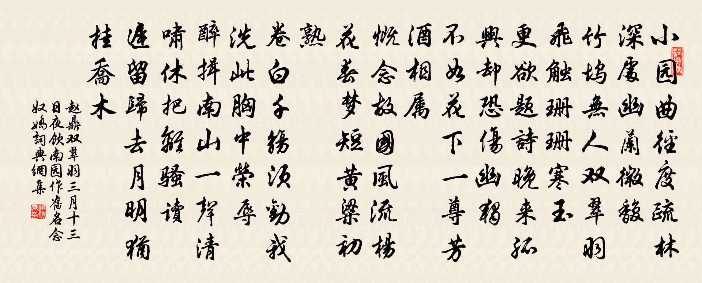 小園曲徑,度疏林深處,幽蘭微馥。竹塢無人雙翠羽,飛觸珊珊寒玉。