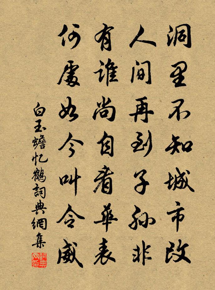 詩詞名句歷史字典書法欣賞書法字典國語詞典說文解字康熙字典古漢語字典標 題 作 者 詩 句 憶鶴作者:白玉蟾 朝代:宋代憶鶴原文洞裡不知城市改,人間再到子孫非。有誰尚自看華表,何處如今叫令威。詩詞問答問:憶鶴的作者是誰?答:白玉蟾問:憶鶴寫於哪個朝代?答:宋代問:憶鶴是什麼體裁?答:七絕白玉蟾憶鶴書法欣賞憶鶴書法作品詩詞推薦句王資仁〔宋代〕三到濱州不賦詩,溪山應笑懶吟痴。召伯停舟辟雨陳造〔宋代〕窗度荷芰風,舟艤鴛鴦浦。落帆憩篙師,辟此白淙雨。長征取愜快,留滯不雲苦。適喜縣麻勢,為盪鑠石暑。去年和黃彥華帥機六言十首劉克莊〔宋代〕子美花狂已減,玉川茶興方濃。耕處偶逢沮溺,池邊懶送夔龍。菊劉克莊〔宋代〕性遲故故待霜天,珠蕾金苞帶露鮮。曾有餐之充雅操,又雲飲者享高年。騷留楚客芳菲在,史視胡公糞土然。莫道去婦怨戴叔倫〔唐代〕出戶不敢啼,風悲日淒淒。心知恩義絕,誰忍分明別。下坂車轔轔,畏逢鄉里親。空持床前幔,卻寄家中人。忽辭感庭秋王吉昌〔元代〕如如徹底性圓明。三昧理研精。縱使頭頭應顯,是一靈、陰魄神情。玄機須悟志澄清。丹體鼎煎烹。養就純陽法象中春二十七日車駕躬請太上皇帝出郊獲觀盛事李洪〔宋代〕禁籞芳菲歲又新,兩宮行樂及良辰。雙瞻黃繖天回笑,並御花驄雨灑塵。漢殿捧卮稱萬壽,葛天張樂和千人。歡聲三台令李煜〔唐代〕不寐倦長更,披衣出戶行。月寒秋竹冷,風切夜窗聲。歲莫懷舊潘檉〔宋代〕白髮將朱顏,一去幾時返。懷哉不能寐,展轉復展轉。雀噪曉窗白,雞鳴芳歲晚。梅花眼中春,故情千里遠。廬陵李直卿以復名其齋求予詩久未暇也今日雪張栻〔宋代〕萬化根原天地心,幾人於此費追尋。端倪不遠君看取,妙用何曾間古今。偈頌七首釋南雅〔宋代〕百歲光陰彈指頃,萬緣休處是良謀。文章蓋世今何在,到了還歸土一坵。題李十四莊,兼贈綦毋校書孟浩然〔唐代〕聞君息陰地,東郭柳林間。左右瀍澗水,門庭緱氏山。抱琴來取醉,垂釣坐乘閒。歸客莫相待,尋源殊未還。送秀大師釋重顯〔宋代〕岩竇宵寒擁山帔,月高古木霜禽睡。西庵禪者來扣門,別我凌晨下層翠。欲留不可留,寫意不及意。屈眴迢迢安足梨花張舜民〔宋代〕青女朝來冷透肌,殘春小雨更霏微。流鶯怪底事來往,為擲金梭織玉衣。偈頌二十五首釋如淨〔宋代〕冤有頭,債有主。一劍當鋒,豁開門戶。拽隊成群恁麽來,放火 * 相合聚。老胡頂{左寧右頁}跨龍虎。谷自亂離之後在西蜀半紀之餘多寓止精舍…四韻以吊之鄭谷〔唐代〕每思聞淨話,雨夜對禪床。未得重相見,秋燈照影堂。孤雲終負約,薄宦轉堪傷。夢繞長松塔,遙焚一炷香。水調歌頭(送楊廷秀赴國子博士用廷秀韻)袁去華〔宋代〕筆陣萬人敵,風韻玉壺冰。文章萬丈光焰,論價抵連城。小試馮川三異,無數成陰桃李,寒谷自春生。奏牘三千字桐柏鄭師歸故山高似孫〔宋代〕元與玄俱妙,全無事可輕。路依蒼石轉,房與碧雲平。鶴露收殘夢,桃風析晚酲。西窗留與我,卻去事彌明。喜遷鶯佚名〔宋代〕物中雙美。惟鄴縣雙鳧,禹門雙鯉。太華雙蓮,藍田雙璧,劍豐城而已。爭是一門雙秀,又是一朝雙喜。人總道,虎兒蘇軾〔宋代〕舊聞老蚌生明珠,未省老兔生於菟。老兔自謂月中物,不騎快馬騎蟾蜍。蟾蜍爬沙不肯行,坐令青衫垂白須。於菟名句推薦山無陵,江水為竭。佚名《上邪》 牆裡鞦韆牆外道。牆外行人,牆裡佳人笑。蘇軾《蝶戀花·春景》 落日心猶壯,秋風病欲疏。杜甫《江漢》 河水縈帶,群山糾紛。李華《弔古戰場文》 奉君金卮之美酒,玳瑁玉匣之雕琴。鮑照《擬行路難·其一》 穿針人在合歡樓,正月露、玉盤高瀉。嚴蕊《鵲橋仙·碧梧初出》 執古之道,以御今之有。能知古始,是謂道紀。老子《老子·道經·第十四章》 借錢塘潮汐,為君洗盡,岳將軍淚!陳德武《水龍吟·西湖懷古》 雲中君不見,竟夕自悲秋。馬戴《楚江懷古三首·其一》 自古聖賢盡貧賤,何況我輩孤且直!鮑照《擬行路難·其六》