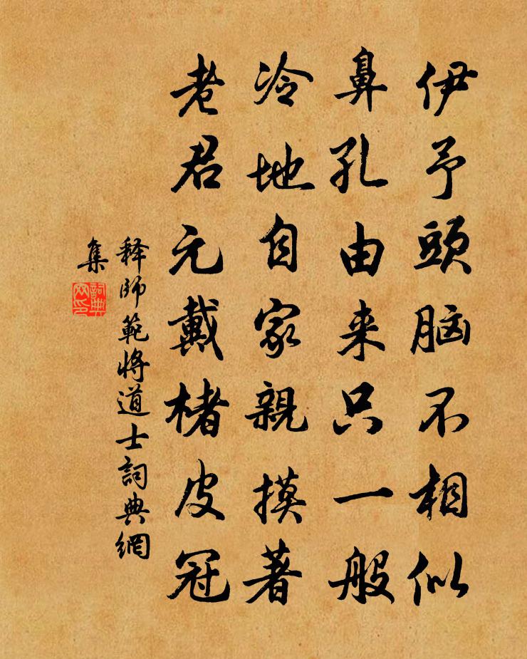 詩詞名句歷史字典書法欣賞書法字典國語詞典說文解字康熙字典古漢語字典標 題 作 者 詩 句 將道士作者:釋師範 朝代:宋代將道士原文伊予頭腦不相似,鼻孔由來只一般。冷地自家親摸著,老君元戴楮皮冠。詩詞問答問:將道士的作者是誰?答:釋師範問:將道士寫於哪個朝代?答:宋代釋師範將道士書法欣賞將道士書法作品詩詞推薦相思怨李冶〔唐代〕人道海水深,不抵相思半。海水尚有涯,相思渺無畔。攜琴上高樓,樓虛月華滿。彈著相思曲,弦腸一時斷。句張孝友〔宋代〕盡得資川真面目,元知楚國富江山。水龍吟 次韻謝五峰程文海〔元代〕不知今夕何年,飛來五老峰頭月。清輝無限,殷勤回照,歲寒蒼雪。寫入宮商,鋪成紈素,盡情誇說。倚胡床老矣臘前月季楊萬里〔宋代〕只道花無十日紅,此花無日不春風。一尖已剝臙脂筆,四破猶包翡翠茸。別有香超桃李外,更同梅斗雪霜中。折來戲答白稹丁謂〔宋代〕欺天行當吾何有,立地機關子太乖。五百青蚨兩家闕,白洪崖打赤洪崖。初夏即事十二解楊萬里〔宋代〕更無一個子規啼,寂寂空山花自飛。啼得春歸他便去,元來不是勸人歸。挽吳茂新侍郎三首劉克莊〔宋代〕□先□皇志,公除法從真。玉樓要新記,鐵壁奪全人。宿草俄封墓,柔蒲謾裹輪。豈無南董氏,奮筆傳名臣。北望陸游〔宋代〕昔我初生歲,中原失太平。寧知墓木拱,不見塞塵清。京洛無來信,江淮尚宿兵。何時青海月,重照漢家營?寄雪竇千峰琬西堂釋如珙〔宋代〕千丈崖根芋火香,天上日輪正卓午。東土西乾無祖師,白頭老僧七十五。寄劉孝若徐照〔宋代〕難得劉夫子,生平極愛予。有時吟好句,特地到貧居。遠別寧無恨,平安莫問書。夢穿庭際菊,密葉過畦蔬。省事吟邵雍〔宋代〕慮少夢自少,言稀過亦稀。簾垂知日永,柳靜覺風微。但見花開謝,不聞人是非。何須尋洞府,度歲也應遲。送恭叔兄赴省二首劉宰〔宋代〕晞驥長慚馬不前,著鞭何意在君先。須懲牛後羞餘子,獨占鰲頭下九天。上苑未須誇得意,道山共擬更登仙。雖然法會堂前蒲萄一架每時日至其上廚人輒報飯具鄭剛中〔宋代〕灶下斧聲成菜糝,階前日影上蒲萄。頑僮不用催人飯,每食焉知愧爾曹。春遊五首邵雍〔宋代〕三月牡丹方盛開,鼓聲多處是亭台。車中游女自笑語,樓下看人閒往來。積翠波光搖帳幄,上陽花氣撲樽罍。西都月中嘲鵲宋祁〔宋代〕月馭初明露掌西,翩翩猶伴夜烏啼。駕巢樹冷空三幣,卻是鳴鳩得穩棲。和傅山父紅梅韻二首李曾伯〔宋代〕節士恥隨時世妝,若為嫵媚著春裳。何如清淡甘天分,莫與兒曹較色香。火後借居君子亭書事四絕呈粹翁陳與義〔宋代〕天公惡劇逐番新,賴是今年有主人。君子亭中眠白晝,燕公樓上步青春。和周子中病中代書之韻兼督胡季文季永游山之楊萬里〔宋代〕吟外今何病,愁邊我索居。昔無今樣懶,新久故人書。只說游山去,誰令作計疏。衡廬負我輩,我輩負衡廬。寄鄭谷郎中齊己〔唐代〕上國誰傳訊息過,醉眠醒坐對嵯峨。身離道士衣裳少,筆答禪師句偈多。南岸郡鍾涼度枕,西齋竹露冷沾莎。還應甲午歲相國李公有北園寄贈之作…寓哀冥寞以廣遺韻雲武元衡〔唐代〕機事勞西掖,幽懷寄北園。鶴巢深更靜,蟬噪斷猶喧。仙醞百花馥,艷歌雙袖翻。碧雲詩變雅,皇澤葉流根。未報名句推薦竹徑通幽處,禪房花木深。常建《題破山寺後禪院》 菱葉縈波荷颭風,荷花深處小船通。白居易《採蓮曲》 開到荼蘼花事了。曹雪芹《紅樓夢·第六十三回》 俄而未霰零,密雪下。謝惠連《雪賦》 北方有佳人,絕世而獨立。李延年《李延年歌》 淡雲孤雁遠,寒日暮天紅。徐昌圖《臨江仙·飲散離亭西去》 眼覷著災傷教我沒是處,只落得雪滿頭顱。張養浩《一枝花·詠喜雨》 並官省事,靜事息役,上下用心,惟農是務也。房玄齡《晉書·列傳·第十七章》 算韶華,又因循過了,清明時候。王雱《倦尋芳慢·露晞向晚》 裊裊城邊柳,青青陌上桑。張仲素《春閨思》