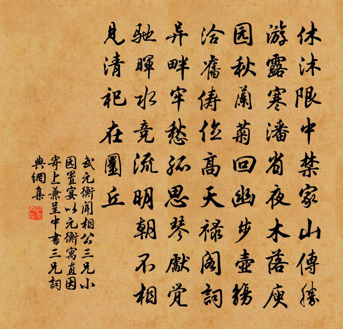 詩詞名句歷史字典書法欣賞書法字典國語詞典說文解字康熙字典古漢語字典標 題 作 者 詩 句 聞相公三兄小園置宴以元衡寓直因寄上兼呈中書三兄作者:武元衡 朝代:唐代原文休沐限中禁,家山傳勝游。露寒潘省夜,木落庾園秋。蘭菊回幽步,壺觴洽舊儔。位高天祿閣,詞異畔牢愁。孤思琴先覺,馳暉水競流。明朝不相見,清祀在圜丘。詩詞問答問:《聞相公三兄小園置宴以元衡寓直因寄上兼呈中書三兄》的作者是誰?答:武元衡問:該詩寫於哪個朝代?答:唐代書法欣賞聞相公三兄小園置宴以元衡寓直因寄上兼呈中書三兄書法作品注釋全唐詩:卷317-41詩詞推薦擇良上人歸天台楊億〔宋代〕片席然犀經水府,幾程登入望霞標。吟情晚日繁雲合,歸路秋風密葉凋。行道六時廬岳漏,浮杯千里浙江潮。舊房看採蓮白居易〔唐代〕小桃閒上小蓮船,半采紅蓮半白蓮。不似江南惡風浪,芙蓉池在臥床前。贈道者項斯〔唐代〕晏來知養氣,度日文時稀。到處留丹井,終寒不絮衣。病鄉多惠藥,鬼俗有符威。自說身輕健,今年數夢飛。隱靜分題得靜字章甫〔宋代〕平生苦愛閒,多病復便靜。每為林下游,忽若醉而醒。茲山昔曾登,當暑毛骨冷。碧霄環佩聲,古木旌幢影。五峰摸魚子 寒食雨中邵亨貞〔元代〕倚闌乾、暮雲千里,天涯芳草淒楚。**巷陌重門掩,何況滿窗疏雨。江上路。又還見、黃金暗柳千萬縷。荒村歲贈趙學士李建勛〔唐代〕常欽趙夫子,遠作五侯賓。見面到今日,操心如古人。醉同華席少,吟訪野僧頻。寂寂長河畔,荒齋與廟鄰。八月六日丁亥釋奠孔子廟三十韻周伯琦〔元代〕闕里宣尼宅,儒林禮樂區。右文昭代盛,報德聖恩殊。天語頒中禁,星軺發上都。內廷香繞案,光祿酒浮壺。持節附:上元初嵩山石記佚名〔唐代〕木子當天下,止戈龍。李代代不移宗,中鼎顯真容,基千萬歲。和慎思詩呈同院諸公蔡肇〔宋代〕圖書從所好,英俊此焉依。奎壁重開照,琳琅盡得歸。地嚴宮漏轉,門掩吏人稀。子有詩三首,西江咀寶璣。詩江總〔隋代〕惱殺未歸客。桃花塤眼醉。雨望方岳〔宋代〕前溪雨埋村,咫尺不我過。雷霆但濛鴻,林莽亦掀簸。竟微一飄灑,起此北窗臥。對面自胡越,孰為天宇大。得非西江月(紅梅)王安石〔宋代〕梅好惟嫌淡佇,天教薄與胭脂。真妃初出華清池。酒入瓊姬半醉。東閣詩情易動,高樓玉管休吹。北人渾作杏花疑聞和甫補池掾王安石〔宋代〕遭時何必問功名,自古難將力命爭。萬戶侯多歸世胄,五車書獨負家聲。才華汝尚為丞掾,老懶吾今合釣耕。外物哨遍(用前韻)辛棄疾〔宋代〕一壑自專,五柳笑人,晚乃歸田裡。問誰知、幾者動之微。望飛鴻、冥冥天際。論妙理。濁醪正堪長醉。從今自釀書事十絕曾惇〔宋代〕和戎詔下破群疑,無復旄頭彗紫微。屈已銷兵宜有報,先看長樂版輿歸。送王景文李流謙〔宋代〕相送復相送,生憎風景殊。還家疑是夢,涉世誤為儒。愛惜千金璧,遲回一束芻。亦思江海去,書札寄潛夫。再次韻小雪餘言別陳造〔宋代〕舞霙飛霰鬧中庭,已辦持杯聽渭城。漢水襄山驟漂忽,早梅晚菊自枯榮。雪神作意凌風伯,客子歸途待日兄。蹀躞客問宗旨一首劉克莊〔宋代〕萬物泛觀皆我闥,諸君何事入吾褌。不須苦問儂宗旨,醉里聞之洛誦孫。寄鄆州邵資政蒙問敝邑山水之景,見索新詩,曾鞏〔宋代〕鉛筆讎書客,朱轓守土臣。素餐方側席,黃髮已侵巾。喜有山圍郭,仍憐水滿津。清華閒耳目,瀟灑長精神。秀色行住坐臥三十二頌釋印肅〔宋代〕幾番舒捲濟群迷,馬祖升堂百丈知。由是那時通一紅,而今收放莫令遲。名句推薦滾滾長江東逝水,浪花淘盡英雄。楊慎《臨江仙·滾滾長江東逝水》 一年春又盡,倚杖對斜暉。左緯《春晚》 與善人居,如入蘭芷之室,久而不聞其香,則與之化矣;與惡人居,如入鮑魚之肆,久而不聞其臭,亦與之化矣。劉向《說苑·雜言》 智者不倍時而棄利,勇士不怯死而滅名,忠臣不先身而後君。劉向《戰國策·齊六·燕攻齊取七十餘城》 行多有病住無糧,萬里還鄉未到鄉。盧綸《逢病軍人》 紛紛墜葉飄香砌。夜寂靜,寒聲碎。范仲淹《御街行·秋日懷舊》 欲寄書如天遠,難銷夜似年長。賀鑄《西江月·攜手看花深徑》 四十年來家國,三千里地山河李煜《破陣子·四十年來家國》 煙水茫茫,千里斜陽暮。山無數。亂紅如雨。秦觀《點絳唇·桃源》 垂柳依依惹暮煙,素魄娟娟當繡軒。王元鼎《憑欄人·閨怨》