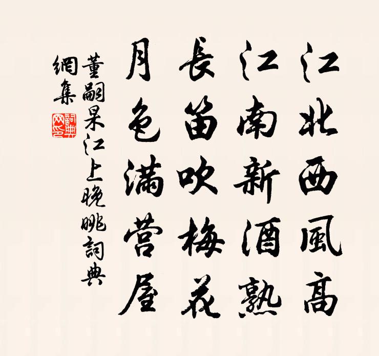 詩詞名句歷史字典書法欣賞書法字典國語詞典說文解字康熙字典古漢語字典標 題 作 者 詩 句 江上晚眺作者:董嗣杲 朝代:宋代江上晚眺原文江北西風高,江南新酒熟。長笛吹梅花,月色滿營屋。詩詞問答問:江上晚眺的作者是誰?答:董嗣杲問:江上晚眺寫於哪個朝代?答:宋代董嗣杲江上晚眺書法欣賞江上晚眺書法作品詩詞推薦寄題休寧趙氏雲屋省心翠侍問道亭有有堂五首方回〔宋代〕貫配青錢粟腐紅,何如心不愧天公。一方寸里無餘物,卻笑敖倉武庫窮。才元思如湧泉愈和愈好晨興遣騎扣門披衣疾讀張元乾〔宋代〕陽和生髮驗葭灰,但見江梅欠蠟梅。風味向人忘冷落,歲寒乘月重徘徊。從來對酒遭花惱,何獨題詩被雨催。公子偕張總乾章帥機同游檀溪登極目和韻李曾伯〔宋代〕美哉輪奐若天成,一笑憑欄趁喜晴。彈厭江山詩句老,破除胸臆酒樽盈。溪頭圉圉觀魚躍,柳外蕭蕭憶馬鳴。明日山夜聞鍾張說〔唐代〕夜臥聞夜鍾,夜靜山更響。霜風吹寒月,窈窕虛中上。前聲既舂容,後聲復晃蕩。聽之如可見,尋之定無像。信知桂湖五首曾國藩〔清代〕短城三面繞,淺水半篙寒。鳥過穿殘日;自行起寸瀾。秋來樓閣靜,幽處地天寬。平昔江湖性,真思老釣竿。隱嘗在江陵忝故中令白公叨蒙知遇…遂成長句羅隱〔唐代〕往歲酇侯鎮渚宮,曾將清律暖孤蓬。才憐曼倩三冬後,藝許由基一箭中。言重不能輕薄命,地寒終是泣春風。鳳凰次韻江陵王撫乾送行項安世〔宋代〕江西回首白雲深,磊石山邊問水程。少日經行嗟老大,壯心零落笑平生。官曹無計逃寒冷,書冊惟堪記姓名。悔不懷寄彭城朋好十首之二張大賀鑄〔宋代〕努力張謀父,躬耕老白雲。無年儉足用,此外奈何君。和僕射牛相公見示長句劉禹錫〔唐代〕靜得天和興自濃,不緣宦達性靈慵。大鵬六月有閒意,仙鶴千年無躁容。流輩盡來多嘆息,官班高后少過從。唯應自廣黃文雷〔宋代〕今古紛分孰控摶,太平方寸豁憂端。後千年去人何似,外九州來天更寬。風雨南山飛霹壢,江湖北斗掛闌乾。要知東掖四絕句不見如師石象之〔宋代〕洗除塵垢訪名藍,不得相逢益自慚。松桂陰森香火冷,亂雲空鎖白蓮庵。戲題三絕蘇轍〔宋代〕謝傅淒涼已老年,胡琴羌笛怨遺賢。使君於此雖不俗,挽斷髭鬚誰見憐。次韻答晁以道見贈二首蘇籀〔宋代〕玉井之泉汲又新,腐陳收拾已空囷。鐵牛城下三年眼,剨見仇池社裡人。自桃川至辰州絕句四十有二趙蕃〔宋代〕望極千山不見村,忽逢三兩僅崖根。幾年生聚才如此,信是荒寒不足論。送劉主簿歸金壇李頎〔唐代〕與子十年舊,其如離別何。宦遊鄰故國,歸夢是滄波。京口青山遠,金陵芳草多。雲帆曉容裔,江日晝清和。縣郭劉公亭王和中〔宋代〕檻外長江江外山,江光山色遠相連。人耕桑柘無窮地,鳥渡煙雲不盡天。寒日竹籠沽酒市,晚風笛起釣魚船。執契靜三邊李世民〔唐代〕執契靜三邊,持衡臨萬姓。玉彩輝關燭,金華流日鏡。無為宇宙清,有美璇璣正。皎佩星連景,飄衣雲結慶。戢武詠山榴詩沈約〔南北朝〕靈園同佳稱。幽山有奇質。停采久彌鮮。含華豈期實。長願微名隱。無使孤株出。移居甬江有感屠季〔宋代〕卜宅傍江隈,幽閒絕點埃。青山排闥入,碧水繞籬回。孤況依歸鳥,愁懷對酒杯。百年堪一笑,未死已心灰。山亭陸游〔宋代〕風惡闌回雨,天寒勒住花。尋幽扶楖栗,息倦倚槎牙。分韻僧吟苦,爭棋客笑嘩。相逢仍草草,歸路並山斜。名句推薦居後而望前,則為前;居前而望後,則為後。姚思廉《陳書·列傳·卷二十四》 冉冉秋光留不住,滿階紅葉暮。李煜《謝新恩·冉冉秋光留不住》 靈山多秀色,空水共氤氳。張九齡《湖口望廬山瀑布泉 / 湖口望廬山瀑布水》 舉大事必有所資李大師、李延壽《南史·列傳·卷五十三》 愛向竹欄騎竹馬,懶於金地聚金沙。金地藏《送童子下山》 漁舟逐水愛山春,兩岸桃花夾古津。王維《桃源行》 微雨如酥,草色遙看近卻無。蘇軾《減字木蘭花·鶯初解語》 幽音變調忽飄灑,長風吹林雨墮瓦李頎《聽董大彈胡笳聲兼寄語弄房給事》 雪岸叢梅發,春泥百草生。杜甫《陪裴使君登岳陽樓》 楊柳風柔,海棠月淡,獨自倚闌時。薩都剌《小闌乾·去年人在鳳凰池》