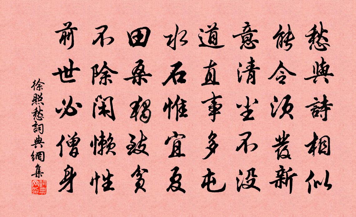 詩詞名句歷史字典書法欣賞書法字典國語詞典說文解字康熙字典古漢語字典標 題 作 者 詩 句 愁作者:徐照 朝代:宋代愁原文愁與詩相似,能令鬚髮新。意清塵不沒,道直事多屯。水石惟宜夏,田桑獨致貧。不除閒懶性,前世必僧身。詩詞問答問:愁的作者是誰?答:徐照問:愁寫於哪個朝代?答:宋代徐照愁書法欣賞愁書法作品詩詞推薦府試觀開元皇帝東封圖馬戴〔唐代〕儼若翠華舉,登封圖乍開。冕旒明主立,冠劍侍臣陪。跡類飛仙去,光同拜日來。粉痕疑檢玉,黛色訝生苔。掛壁題畫九首唐寅〔明代〕松間草閣依岩開,閣下幽花繞露台。誰叩荊扉驚鶴夢,月明千里故人來。洞仙歌葛郯〔宋代〕丹青明滅,霜著誰家樹。滿眼風光向誰許。送寒鴉萬點,流水孤村,歸來晚,月影三人夜舞。金英秋已老,蠟綴寒西江月(借江梅蠟梅為意壽董守)王質〔宋代〕月斧修成膩玉,風斤琢碎輕冰。主人無那壽杯深。倩取花來喚醒。舞罷繡裀鳳蹙,飲闌畫閣香凝。試將花蕊數層層贈樊夫人詩裴航〔唐代〕向為胡越猶懷想,況遇天仙隔錦屏。儻若玉京朝會去,願隨鸞鶴入青冥。送史兵曹判官赴樓煩盧綸〔唐代〕渥窪龍種散雲時,千里繁花乍別離。中有重臣承霈澤,外無輕虜犯旌旗。山川自與郊坰合,帳幕時因水草移。敢謝寄雪竇長老釋智圓〔宋代〕絕頂久潛隱,心閒道更真。山深林下雪,堂靜畫無人。雲抱看經石,禽接入定身。敢言他世約,安養願相親。柳絮宋祁〔宋代〕萬縷金長暖絮縈,雪乾雲困遍春城。衝風力盡飛應怯,試與鴻毛較重輕。感興李呂〔宋代〕感興聚滅元同水上漚,痴人貪著不知休。生便當路栽荊棘,死代群雛作馬牛。上隴計全謀蜀道,長城功半廢少丘。送杜顗赴潤州幕杜牧〔唐代〕少年才俊赴知音,丞相門欄不覺深。直到事人男子業,異鄉加飯弟兄心。還須整理韋弦佩,莫獨矜誇玳瑁簪。若去明教院文同〔宋代〕野徑欹危入谷斜,曲崗回嶺共交加。經年不到為隔水,此日獨游因看花。兩岸煙雲閒景物,一軒泉石靜生涯。自憐挽郭知府李祥〔宋代〕平生孤苦范希文,蓋世功名自立身。要識鄉閭稱孝子,定知宗社作忠臣。一麾未足摶雲翼,五鼎猶懷念棘薪。悵望郊外感事強至〔宋代〕田原土盡辟,禾黍積如鱗。聖主弗橫賦,農民猶苦貧。末游滋不業,素敝寢誰因。富室豪奪利,里胥蠶食人。為生贈郡帥郭侯閻蒼舒〔宋代〕東南形勝惟揚州,介江負淮作襟喉。有國以來幾百戰,弔古千載空悠悠。哀哉荒主與盪子,鈍盡鐵劍崇倡優。迷樓水西草堂牟融〔唐代〕蘿徑蕭然曲業存,閒雲流水四無鄰。身留白屋潛蹤跡,門□□吟學隱淪。吟對琴尊江上月,笑看花木鏡中春。遺書六代祖師畫像贊三祖監智禪師釋正覺〔宋代〕道無揀擇,宗非促延。死生外著,清白家傳。覓罪性空,廓然大同。妙盡亡能境,機回卻借功。虛明自照靡心識,句姚鍄〔宋代〕花枝冷濺昭陽雨,釣線斜牽太液風。{上一點下兩點}牛釋心月〔宋代〕衲僧命脈頂門眼,點著無端頭角生。猶幸家園田地穩,得深耕處且深耕。鷓鴣天佚名〔宋代〕全似丹青搵染成。更將何物斗輕盈。雪因舞態羞頻下,云為歌聲不忍行。螺髻小,鳳鞋輕。天邊斗柄又斜橫。水晶潤守修撰見招與左丞王公大夫俞公東園集會賓蘇頌〔宋代〕曾覽祁公五老詩,仍陪三壽燕留司。今逢北固開尊日,正似南都命席時。喜奉笑言揮麈柄,卻慚衰朽倚瓊枝。定知名句推薦多謝月相憐,今宵不忍圓。朱淑真《菩薩蠻·山亭水榭秋方半》 愁里高歌梁父吟,猶如金玉戛商音。鄭思肖《二礪》 王侯將相寧有種乎?司馬遷《史記·陳涉世家》 貧居往往無煙火,不獨明朝為子推。孟雲卿《寒食》 回眸一笑百媚生,六宮粉黛無顏色。白居易《長恨歌》 愁雲淡淡雨瀟瀟。暮暮復朝朝。石孝友《眼兒媚·愁雲淡淡雨蕭蕭》 君子莫大乎與人為善。孟子《孟子·公孫丑章句上·第八節》 美人贈我錦繡段,何以報之青玉案。張衡《四愁詩》 如今卻憶江南樂,當時年少春衫薄。韋莊《菩薩蠻·如今卻憶江南樂》 鳳凰台上鳳凰游,鳳去台空江自流。李白《登金陵鳳凰台》