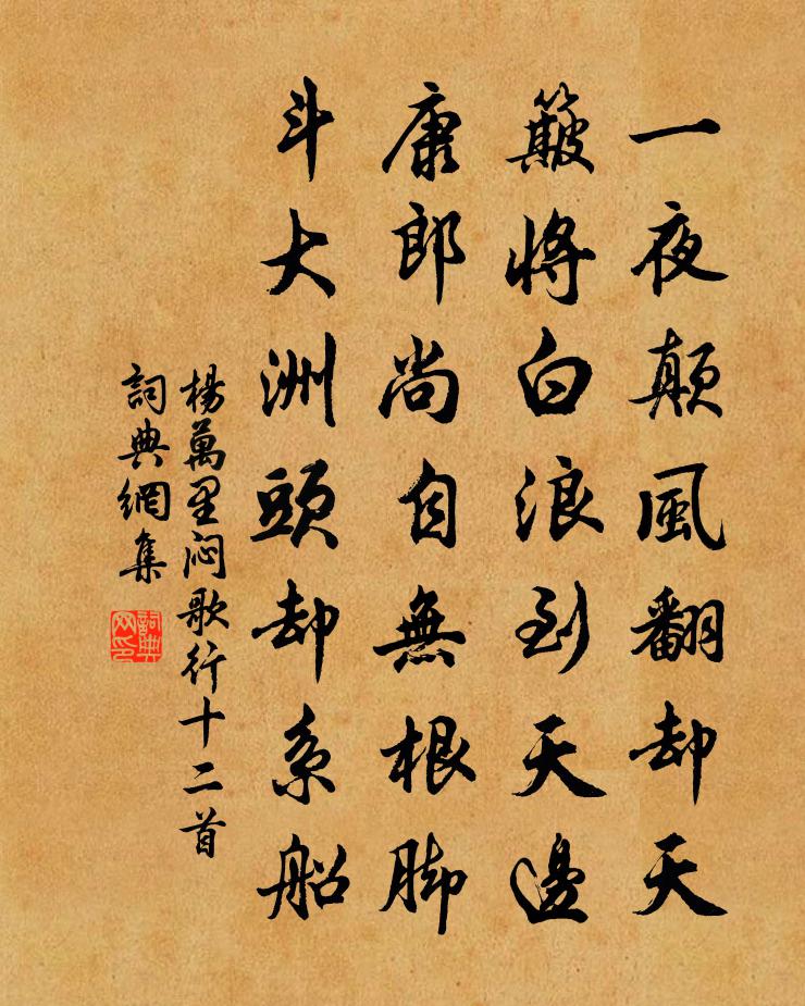 一夜顛風翻卻天,簸將白浪到天邊。康郎尚自無根腳,斗大洲頭卻繫船。