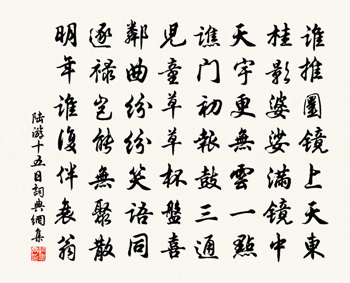 誰推圜鏡上天東?桂影婆娑滿鏡中。天宇更無雲一點,譙門初報鼓三通。