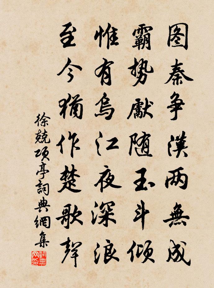 詩詞名句歷史字典書法欣賞書法字典國語詞典說文解字康熙字典古漢語字典標 題 作 者 詩 句 項亭作者:徐兢 朝代:宋代項亭原文圖秦爭漢兩無成,霸勢先隨玉斗傾。惟有烏江夜深浪,至今猶作楚歌聲。詩詞問答問:項亭的作者是誰?答:徐兢問:項亭寫於哪個朝代?答:宋代徐兢項亭書法欣賞項亭書法作品詩詞推薦九日裘萬頃〔宋代〕籬落黃花尚自無,白衣況未到吾廬。莫令此日負佳篩,為展淵明採菊圖。施元光在崑山,病中遠寄長句,次韻答之范成大〔宋代〕四海飄蓬客舍邊,幾多雲水與風煙。絕無膂力驅長轡,空有孤忠誓大川。參井忽隨征馬上,鬥牛應掛故山前。親交二月四日游大雲寺分韻得三字佛龕多題名韋獨李薰〔宋代〕野寺依絕壁,化身滿諸龕。後前莽難測,千億紛相參。妙斬謝斤斧,高樓軼煙嵐。旁行栗危棧,俯{左日右敢}驚菩薩蠻(別意)舒亶〔宋代〕江梅未放枝頭結。江樓已見山頭雪。待得此花開。知君來不來。風帆雙畫鷁。小雨隨行色。空得鬱金裙。酒痕和淚柳梢青 藏頭馬鈺〔元代〕輪不催生滅。焰里蓮開五葉。得金花,成芝草,分無闕。生馬鈺愚人,然悟家緣痛切。劈恩山,明千古,談心月。臘梅和次韓韻王之道〔宋代〕一枝橫亞竹梢黃,宮樣新翻半額妝。閒淡似宜冬後日,清癯應怯夜來霜。生憎丹臉嬌含酒,巧妬冰肌冷透香。取蠟題吉州聶倅談風月軒曾豐〔宋代〕黃堂指顧了凡最,紅幕賓士了苛碎。更無可了別駕翁,贏得徜徉是非外。未有可偷風月天,崢嶸新起東偏廢。風含予久客思歸以秋光都似宦情薄山色不如歸意濃仇遠〔宋代〕自我來溧陽,四見木葉秋。泮宮久敝漏,量力完且修。幸然土木備,及此工役休。巍巍大成殿,勢與鄒魯侔。聖賢端午內中帖子詞皇后閣王珪〔唐代〕侍兒清曉進仙裳,玉管齊調奉帝觴。應有瑤箱舊時燕,直隨歌舞到昭陽。南園雜詩六首苦雨司馬光〔宋代〕今春憂亢陽,引領望雲族。首夏忽滂沱,意為蒼生福。自爾無虛日,高原亦沾足。連年困饑饉,此際庶和熟。如何桃源憶故人(追和東坡韻呈曾倅子修三首)王之道〔宋代〕逢人借問春歸處。遙指蕪城煙樹。收盡柳梢殘雨。月闖西南戶。遊絲不解留伊住。漫惹閒愁無數。燕子為誰來去。輓王水監黎廷瑞〔宋代〕庾嶺梅千樹,貪閒不肯看。鳧歸玉棺下,鶴去碧桃寒。海岳遺文在,乾坤短夢殘。蓬萊都水監,應復署仙官。邊將三首司馬光〔宋代〕橫吹長歌千萬騎,將軍塞北立功回。邊人爭出孤城望,漸見族旗天外來。菊邊持螯吳錫疇〔宋代〕奔火狂難改,橫戈事已非。形模雖可怪,風味故應稀。玉斫雙螯潔,金披一殼肥。持杯籬菊畔,又見醉忘歸。廣都世真上人南遊回見訪出群公詩見示丐予一郭印〔宋代〕法象森羅萬,全歸一寸庵。有佛平生礙,無禪底處參。烏玄元自白,荼苦本來甘。前日南遊話,看君作麽談。寄溧陽周丞文璞周寄詩卷殊可喜陸游〔宋代〕滿握珠璣何自來,晴窗初喜拆書開。信哉天下有奇作,久矣名家多異才!隔闊經年如許進,超騰它日若為陪?山陰山堂偶書文同〔宋代〕幾日無公事,山堂興頗清。和詩防積壓,丸藥趁清明。斸石新棱出,澆蔬晚甲生。此皆忙外得,低首笑塵纓。追懷胡基仲陸游〔宋代〕高潔胡徵士,當時已絕無。門庭謝殘客,薪水斥常奴。遺稿何由見,英魂不可呼。誰憐墓上草,又是一年枯?滿庭芳 贈喬李郭三仙馬鈺〔元代〕修行之士,不在居山。勿勞環堵彎*。何必驅驅來往,遠遠相參。休要持功打坐,又何須、耕種艱難。休勞苦,更苦樂姜特立〔宋代〕人生苦樂與俱生,不問侯王及庶氓。萬事隨緣安樂法,莫求好處一邊行。名句推薦天秋月又滿,城闕夜千重。戴叔倫《客夜與故人偶集 / 江鄉故人偶集客舍》 至樂無樂,至譽無譽。莊子《莊子·外篇·至樂》 凌余陣兮躐余行,左驂殪兮右刃傷。屈原《國殤》 女子今有行,大江溯輕舟。韋應物《送楊氏女》 不躓于山,而躓於垤。韓非及後人《韓非子·六反》 太平之世多長壽人。王充《論衡·卷一·氣壽篇》 友者、所以相有也。道不同,何以相有也?荀子《荀子·大略》 上林苑裡花徒發,細柳營前葉漫新。杜審言《春日京中有懷》 花果山福地,水簾洞洞天。吳承恩《西遊記·第一回》 江上月明胡雁過,淮南木落楚山多。劉長卿《江州重別薛六柳八二員外》
