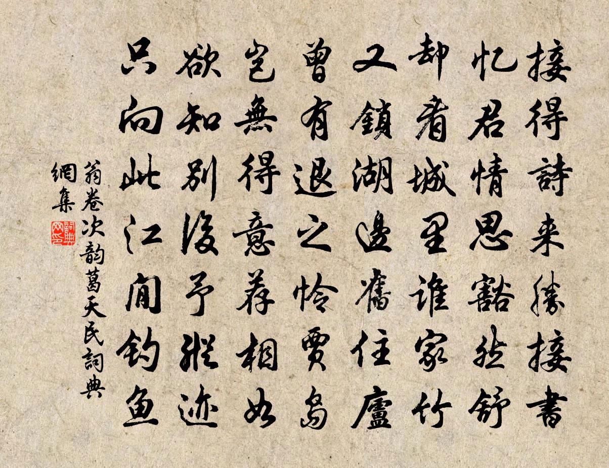 詩詞名句歷史字典書法欣賞書法字典國語詞典說文解字康熙字典古漢語字典標 題 作 者 詩 句 次韻葛天民作者:翁卷 朝代:宋代次韻葛天民原文接得詩來勝接書,憶君情思豁然舒。卻看城裡誰家竹,又鎖湖邊舊住廬。曾有退之憐賈島,豈無得意薦相如。欲知別後予縱跡,只向此江閒釣魚。詩詞問答問:次韻葛天民的作者是誰?答:翁卷問:次韻葛天民寫於哪個朝代?答:宋代翁卷次韻葛天民書法欣賞次韻葛天民書法作品詩詞推薦送王巽澤侍郎王炎〔宋代〕屈指桃溪上,差池二十年。知心寧易得,識面豈無緣。離別何須恨,平安可數傳。異時如索我,小隱翠微邊。逢章戶掾赴澧州蘇轍〔宋代〕江船不厭窄,船窄始宜行。風裹長先過,灘頭一倍輕。迎親無惡處,祿養勝躬耕。澧上春蘭早,猶堪吊屈生。爇心香 勸眾師兄求乞殘餘馬鈺〔元代〕物外飄蓬。餒在其中。驀然聞、撞動齋鍾。殘餘求乞,禱告玄宗。念出家兒,無家地,道家窮。麻麥充餐,消滅屍茨菰花董嗣杲〔宋代〕剪刀葉上兩枝芳,柔弱難勝帶露妝。翠管嫩粘瓊糝重,野泉情心玉蕤涼,舂成臼粉資秋實,種入盆池想水鄉。小小自況謝枋得〔宋代〕手捻琪花吹玉蕭,至人長與道逍遙。黃雲白鶴無拘束,閒看吳兒弄晚潮。除夕徐集孫〔宋代〕一歲驚心忽已除,宦遊尚自客西湖。漫題桃板標茅屋,旋買梅花插瓦壺。俸薄倖無賒酒債,官閒卻有索詩逋。明朝五雲豀醉歸張伯玉〔宋代〕每日豀頭醉臉紅,歸來庭院夕陽中。依稀聽得家人語,扶起五雲豀上翁。詩一首張浚〔宋代〕群凶用事人心去,大義重新天意回。解使中原無左衽,斯文千古未塵埃。題藥簏范成大〔宋代〕合成四大本非真,便有千般病染身。地火水風都散後,不知染病是何人。送趙普宋太宗〔宋代〕忠勤王室展宏謨,政事朝堂賴秉扶。解職暫酬卿所志,休教一念遠皇都。覽鏡邵謁〔唐代〕一照一回悲,再照顏色衰。日月自流水,不知身老時。昨日照紅顏,今朝照白絲。白絲與紅顏,相去咫尺間。秋夕釋智圓〔宋代〕滄江秋色暮,幽思起窮居。風葉寒侵夢,窗燈冷照書。砌深蟲韻咽,天淡雁行疏。終謝人群去,孤峰待結廬。清平樂 題碧梧蒼石圖 珊瑚網名書題跋卷八竹月道人〔元代〕寸腸愁斷。目送斜陽岸。楓落吳江秋水漫。盼殺南來征雁。綺窗好夢初成。夢回相見卿卿。明月西風夜冷,蒼梧亂綺羅香(壽趙太卿)張輯〔宋代〕欲雨涼生,初弦月在,畫戟香中清嘯。旋種芙蕖,深夏木蘭芳沼。銀漢入、天鏡攙秋,福星度、雪闌爭照。又誰寫偈頌二十首釋如珙〔宋代〕日影每從窗外過,知他奔逐幾時休。虛空落地須彌碎,三世如來不出頭。再入道場紀事應制(一作僧廣宣詩)沈佺期〔唐代〕南方歸去再生天,內殿今年異昔年。見辟乾坤新定位,看題日月更高懸。行隨香輦登仙路,坐近爐煙講法筵。自喜連雨書事趙蕃〔宋代〕麥熟蠶將老,晴須雨不宜。頻年荒已甚,一飽此為期。陛下故勤理,爾民無怨咨。磨鎌亦裝簇,晴日會當披。方處士輓詩二首戴表元〔宋代〕不比他人死,何詩可挽君。淵明元嬾仕,東野別攻文。滄海諸公淚。青山處士墳。相看莫浪哭,私謚有前聞。贈鄭女郎(一作鄭氏妹)薛馧〔唐代〕艷陽灼灼河洛神,珠簾繡戶青樓春。能彈箜篌弄纖指,愁殺門前少年子。笑開一面紅粉妝,東園幾樹桃花死。朝理宮詞王珪〔唐代〕金雞竿下龍旂動,萬國華夷拜冕旒。十二門開傳詔急,祥雲捧日在樓頭。名句推薦欲把西湖比西子,淡妝濃抹總相宜。蘇軾《飲湖上初晴後雨二首·其二》 惠子曰:子非魚,安知魚之樂?佚名《莊子與惠子游於濠梁》 斷腸片片飛紅,都無人管,倩誰喚、流鶯聲住。辛棄疾《祝英台近·晚春》 笑殺陶淵明,不飲杯中酒。李白《嘲王歷陽不肯飲酒》 行人日暮少,風雪亂山深。孔平仲《寄內·試說途中景》 已從招提游,更宿招提境杜甫《游龍門奉先寺》 淚濕羅衣脂粉滿。四疊陽關,唱到千千遍。李清照《蝶戀花·淚濕羅衣脂粉滿》 何時更杯酒,再得論心胸。李白《魏郡別蘇明府因北游》 酒債尋常行處有,人生七十古來稀。杜甫《曲江二首》 旋開旋落旋成空,白髮多情人更惜。司空圖《酒泉子·買得杏花》