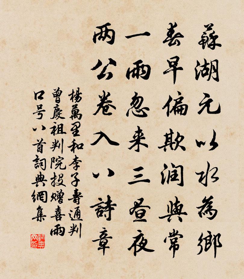 蘇湖元以水為鄉,春早偏欺潤與常。一雨忽來三晝夜,兩公捲入八詩章。
