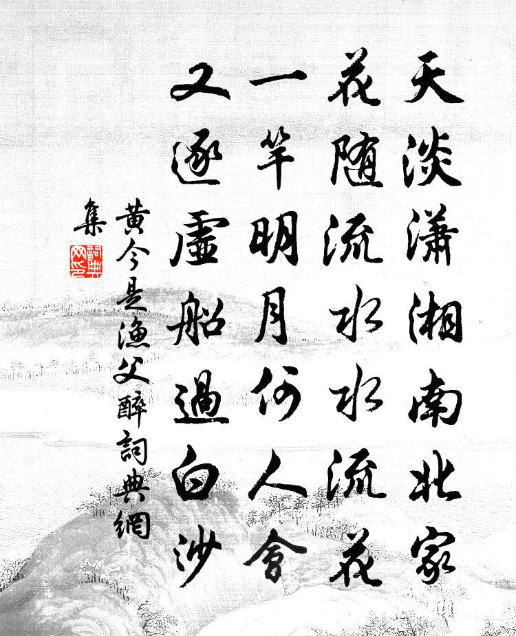 詩詞名句歷史字典書法欣賞書法字典國語詞典說文解字康熙字典古漢語字典標 題 作 者 詩 句 漁父醉作者:黃今是 朝代:宋代漁父醉原文天淡瀟湘南北家,花隨流水水流花。一竿明月何人會,又逐虛船過白沙。詩詞問答問:漁父醉的作者是誰?答:黃今是問:漁父醉寫於哪個朝代?答:宋代黃今是漁父醉書法欣賞漁父醉書法作品詩詞推薦送項倅周南〔宋代〕衡岳山頭喚下來,高人不肯住蓬萊。先秋手得平分月,當暑身無半點埃。世事相逢休掛口,吾儕一見且銜杯。夜闌浣溪沙(壽內子)辛棄疾〔宋代〕壽酒同斟喜有餘。朱顏卻對白髭鬚。兩人百歲恰乘除。婚嫁剩添兒女拜,平安頻拆外家書。年年堂上壽星圖。贈眇目道人說相葛天民〔宋代〕道人只具一隻眼,覿面全提格外機。塵里神仙誰做得,歸來試舉問 * 。詠史王丘〔唐代〕高潔非養正,盛名亦險艱。偉哉謝安石,攜妓入東山。雲岩響金奏,空水灩朱顏。蘭露滋香澤,松風鳴珮環。歌聲漫成七首張耒〔宋代〕江南梅花凌雪霜,桃李開盡春無光。誰知洛陽三月暮,千金一朵賣姚黃。和梅摯北池十詠蔣堂〔宋代〕池上有虛閣,翬檐迅若翔。百壺多盛集,四座仰惟良。蘚印文綦綠,蓮依桂楫香。何由陪嘯詠,敷袵納微涼。謝仙遊許宰伯詡立續題名記招飲二首記乃崇清王邁〔宋代〕栽花次第滿河陽,誰結寒根桃李場。鰲在三山驚贔屭,鳧飛雙舄費揄揚。春風折屐緣聞捷,臘雪開筵重借光。他日藏冰井馬之純〔宋代〕向日周家有凌人,後來此事特相因。冬時室內收藏早,夏日宮中給賜新。但得滿盤堆水玉,不須對面著風輪。看來閒興韓偓〔唐代〕景寂有玄味,韻高無俗情。他山冰雪解,此水波瀾生。影重驗花密,滴稀知酒清。忙人常擾擾,安得心和平。奉簡在伯四首趙蕃〔宋代〕落日餘霞已自奇,況於人靜月明時。重城著我非無意,前遣先生獨賦詩。宿憐上人房李郢〔唐代〕重公舊相識,一夕話勞生。藥裹關身病,經函寄道情。岳寒當寺色,灘夜入樓聲。不待移文誚,三年別赤城。古樂府白紵四時歌黃庭堅〔宋代〕桃李欲開風雨多,籠弦束管奈春何。風休雨靜花滿地,時節去我如驚波。少年志願不成就,日月星辰役昏晝。俟河昔別贈宋復古張景淳司馬光〔宋代〕昔別如飛蓬,飄蕩隨所適。那知十六載,卮酒對今夕。渺然思舊遊,間不容一息。百年詎幾何,會事難屢得。復古送澤化士兼簡雲門二老釋慧空〔宋代〕吉山何啻百彌盧,袖裡攜來一物無。前路逢人即拈出,不知誰是赤鬚鬍。游荊山寺吳芾〔宋代〕道左逢幽寺,巍然氣象新。泉聲長繞舍,山 * 侵人。疏牖時穿竹,虛堂不染塵。老僧仍好事,不厭客來頻。松源和尚贊釋文禮〔宋代〕耳根聵兀如鴟,項頸縮拗如驢,有問東卻答西。未嘗許可,說甚傳持。臨行三轉語,自起一團疑。幾多吞不下,背和陳府教授見贈戴埴〔宋代〕遺風洙車濱,汲古酌犧樽。魚躍進池藻翻,鶯呼和浩特庭樹喧。樂山不樂水,居城猶居村。讀趙張嵲〔宋代〕漫漫積雪被崗坻,宜主當時有暗期。忽見梅花照夜發,只疑猶待射鵰兒。汴河聞笳(一作聞角)武元衡〔唐代〕何處金笳月里悲,悠悠邊客夢先知。單于城下關山曲,今日中原總解吹。病後謝友人顧問黃庚〔宋代〕索居坐孤陋,卻掃甘隱淪。荒徑無轍跡,蓬藋方蓁蓁。風雨撼四壁,一榻寄屈伸。誰念相如病,豈堪原憲貧。友人名句推薦共眠一舸聽秋雨,小簟輕衾各自寒。朱彝尊《桂殿秋·思往事》 南軒有孤松,柯葉自綿冪。李白《南軒松》 中年親友難別,絲竹緩離愁。蘇軾《水調歌頭·安石在東海》 桂花香霧冷,梧葉西風影。高觀國《菩薩蠻·何須急管吹雲暝》 國大而政小者,國從其政;國小而政大者,國益大。管仲《管子·霸言》 更落盡梨花,飛盡楊花,春也成憔悴。汪元量《鶯啼序·重過金陵》 夜來幽夢忽還鄉,小軒窗,正梳妝。相顧無言,惟有淚千行。蘇軾《江城子·乙卯正月二十日夜記夢》 況屬高風晚,山山黃葉飛。王勃《山中》 凡與敵戰,若敵人初來,陣勢未定,行陣未整,先以兵急擊之,則勝。佚名《百戰奇略·第四卷·先戰》 汴水流,泗水流,流到瓜州古渡頭。吳山點點愁白居易《長相思·汴水流》