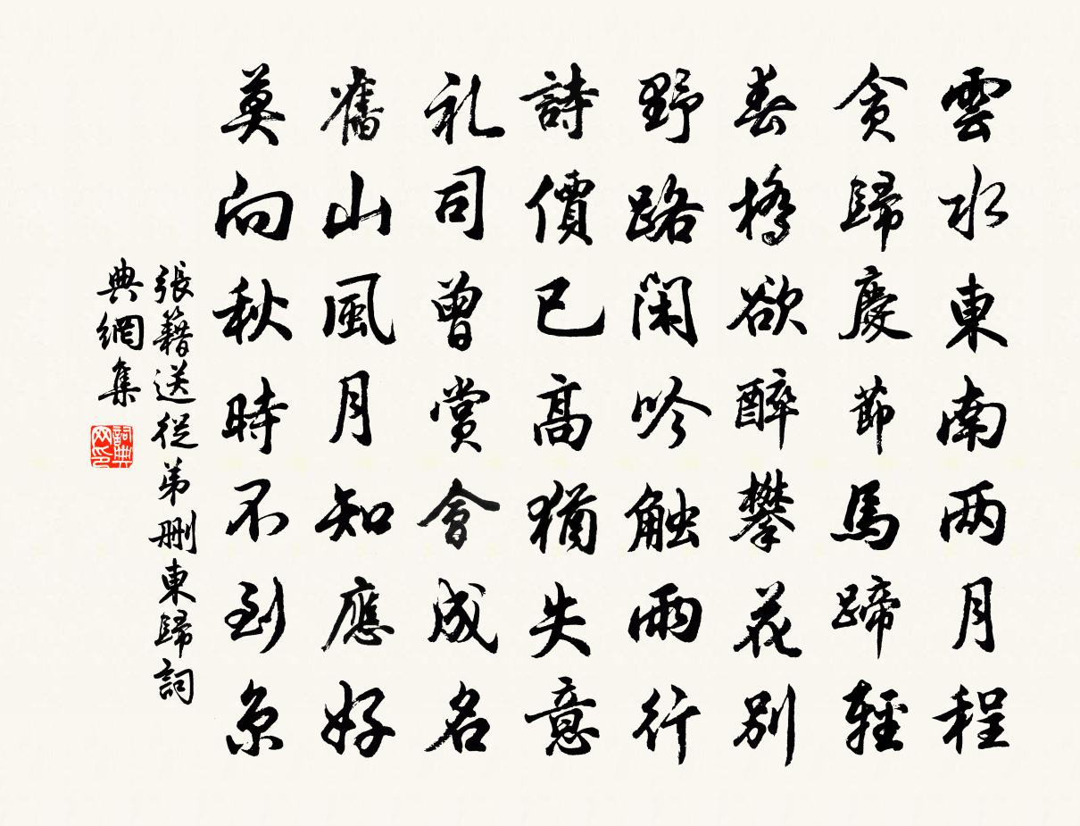 雲水東南兩月程,貪歸慶節馬蹄輕。春橋欲醉攀花別,野路閒吟觸雨行。