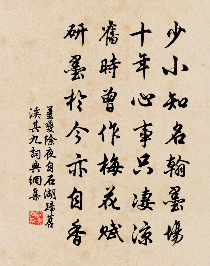 少小知名翰墨場,十年心事只淒涼。舊時曾作梅花賦,研墨於今亦自香。