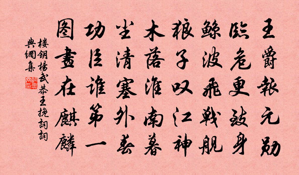 詩詞名句歷史字典書法欣賞書法字典國語詞典說文解字康熙字典古漢語字典標 題 作 者 詩 句 楊武恭王輓詞作者:樓鑰 朝代:宋代楊武恭王輓詞原文王爵報元勛,臨危更致身。鯨波飛戰艦,狼子嘆江神。木落淮南暮,塵清塞外春。功臣誰第一,圖畫在麒麟。詩詞問答問:楊武恭王輓詞的作者是誰?答:樓鑰問:楊武恭王輓詞寫於哪個朝代?答:宋代樓鑰楊武恭王輓詞書法欣賞楊武恭王輓詞書法作品詩詞推薦贈朱中書丁仙芝〔唐代〕十年種田濱五湖,十年遭澇盡為蕪。頻年井稅常不足,今年緡錢誰為輸。東鄰轉谷五之利,西鄰販繒日已貴。而我閏月二十日離玉山八月到餘干易舟又二日抵鄱趙蕃〔宋代〕借石誰為主,叫應呼莫譍。樓高才隱約,樹遠更崚嶒。掛席凡三過,停橈欠一登。扁舟向何許,漂泊傍漁罾。得京友信問曾觀三疊水否因寄董嗣杲〔宋代〕破橐蕭然不自休,蘆黃葦白九江秋。抗塵狂作兩年客,看水慳為三疊游。得酒問魚愁入市,有書無雁卻登樓。征裘虞忠肅萬里帖贊岳珂〔宋代〕方長鯨之乾誅,駭百川這騰浪。撼坤軸其欲裂,有雍公之忠壯。策數船之奇勳,射天狼於北向。既旄頭之夜殞,窘周興嗣徐鈞〔宋代〕文成千字貫如珠,一夜勞心白盡須。不省海鹹河淡句,帖中已有漢章書。和梁次張謝得酒見寄四首吳芾〔宋代〕傳得仙家不老方,釀成春色瓮頭香。一樽聊爾資杯酌,爭似相攜入醉鄉。贈淨慈主人五首陳造〔宋代〕識君方吏虎存邊,已嘆疲羸雪滿顛。別後漂零怯人問,窮山往返費三年。和申屠御史來豫章韻王義山〔宋代〕一衣帶水繞洪城,水不在深龍則靈。檐棟中間人渺渺,煙雲朝暮柳青青。肯將明月清風我,來伴西山南浦亭。好把戲石唐山隱者歐陽修〔宋代〕石唐仙室紫雲深,潁陽真人此算心。真人已去升寥廓,歲歲岩花自開落。我昔曾為洛陽客,偶向岩前坐盤石。四字李邦直見邀終日對臥南城亭上二首蘇轍〔宋代〕一徑坡陁草木間,孤亭勝絕俯川原。青天圖畫四山合,白畫雷霆百步喧。煙柳蕭條漁市遠,汀洲蒼莽白鷗翻。客舟送石令君劉宰〔宋代〕攀轅父老雜兒童,十載重欣見此風。可但三年方論定,亦由去日與初同。一塵不染冰常瑩,萬折難回水必東。正直月暗元稹〔唐代〕月暗燈殘面牆泣,羅纓斗重知啼濕。真珠簾斷蝙蝠飛,燕子巢空螢火入。深殿門重夜漏嚴,柔□□□□年急。君王和參寥寄秦少游釋元淨〔宋代〕岩棲木食已皤然,交舊何人慰眼前。素與晝公心印合,每思秦子意珠圓。當年步月來幽谷,柱杖穿雲冒夕煙。台閣聽簡上人吹蘆管三首張祜〔唐代〕蜀國僧吹蘆一枝,隴西遊客淚先垂。至今留得新聲在,卻為中原人不知。細蘆僧管夜沈沈,越鳥巴猿寄恨吟。吹到題福州釋迦院幽幽亭蔡襄〔宋代〕路盡得佳賞,川原何淨明。周圍地形壯,灑落世塵清。背郭千峰起,涵空一水橫。風帆人共遠,潮嶼歲重耕。曉市奉同原甫度支廳壁許道寧畫松韓維〔宋代〕長松盤青冥,郁與窗戶封。許翁寫生意,獨得毫墨外。年侵日昏剝,拂拭自君輩。得非神物守,以待真賞會。翛然賦得春鶯送友人(又作賀朝詩)劉孝孫〔唐代〕流鶯拂繡羽,二月上林期。待雪消金禁,銜花向玉墀。翅掩飛燕舞,啼惱婕妤悲。料取金閨意,因君問所思。出塞二首王昌齡〔唐代〕秦時明月漢時關,萬里長征人未還。但使龍城飛將在,不教胡馬度陰山。騮馬新跨白玉鞍,戰罷沙場月色寒。城頭送友人游塞北李頻〔唐代〕朔野正秋風,前程見磧鴻。日西身獨遠,山轉路無窮。樹隔高關斷,沙連大漠空。君看河外將,早晚擬平戎。送江西曾雪笠歌陳普〔宋代〕幾人夸詠雪,不如柳一絕。幾家說漁父,不如柳兩句,天陰歲晚寒江空,玉花四合為鴻蒙。一片清虛畫不得,孤舟名句推薦綠陰青子老溪橋。羞見東鄰嬌小。吳文英《西江月·賦瑤圃青梅枝上晚花》 滿隄芳草不成歸,斜日畫橋煙水冷。吳翌鳳《玉樓春·空園數日無芳信》 妾身悔作商人婦,妾命當逢薄倖夫。徐再思《陽春曲·閨怨》 敗莫大於不自知。呂不韋《呂氏春秋·論·不苟論》 欲多傷神,財多累心!佚名《增廣賢文·下集》 國破山河在,城春草木深。杜甫《春望》 寄書長不達,況乃未休兵。杜甫《月夜憶舍弟》 西風潑眼山如畫,有黃花休恨無錢。張可久《風入松·九日》 老吾老,以及人之老;幼吾幼,以及人之幼司馬光《資治通鑑·漢紀·漢紀四十二》 怒不過奪,喜不過予。荀子《荀子·修身》