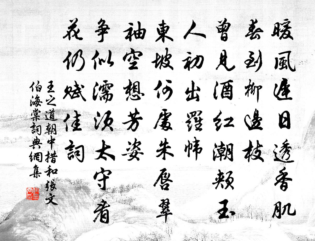 詩詞名句歷史字典書法欣賞書法字典國語詞典說文解字康熙字典古漢語字典標 題 作 者 詩 句 朝中措(和張文伯海棠)作者:王之道 朝代:宋代朝中措(和張文伯海棠)原文暖風遲日透香肌。春到柳邊枝。曾見酒紅潮頰,玉人初出羅幃。東坡何處,朱唇翠袖,空想芳姿。爭似濡須太守,看花仍賦佳詞。詩詞問答問:朝中措(和張文伯海棠)的作者是誰?答:王之道問:朝中措(和張文伯海棠)寫於哪個朝代?答:宋代問:朝中措(和張文伯海棠)是什麼體裁?答:詞王之道朝中措(和張文伯海棠)書法欣賞朝中措(和張文伯海棠)書法作品詩詞推薦送程給事知越州王晳〔宋代〕冰顏黑髮未應衰,巨艦高旌使府威。瑣闥領藩承嘏去,繡衣過郡買臣歸。湖山勝跡吟毫健,風月良辰宴斝飛。金榜晚歸藍田舊居錢起〔唐代〕雲卷東皋下,歸來省故蹊。泉移憐石在,林長覺原低。舊里情難盡,前山賞未迷。引藤看古木,嘗酒咒春雞。興與蘇養直書簡帖贊岳珂〔宋代〕其作字得東坡之骨,而加以平實。得山谷之體,而去其越軼。其應世接物得馬少游之善,而持以插詘。故先生者施吟佚名〔唐代〕澗水潺潺聲不絕,溪壟茫茫野花發。自去自來人不知,歸時唯對空山月。念奴嬌(欲雪呈朱漕元順)張孝祥〔宋代〕朔風吹雨,送淒涼天氣,垂垂欲雪。萬里南荒雲霧滿,弱水蓬萊相接。凍合龍岡,寒侵銅柱,碧海冰澌結。憑高一和張文裕安寒十首司馬光〔宋代〕何處安寒好,初寒游奕園。林間葉未盡,籬底菊猶存。結竹為庵小,開爐冓火溫。誰言處城市,嶺寂似丘樊。送宋中道太博倅廣平梅堯臣〔宋代〕行役無冬春,車馬無南北。急若機上梭,離別腸自織。其間走聲利,晝夜不能息。晚得二友生,胸蜺吐五色。各思隱靜山二首韓元吉〔宋代〕山鎖松行一逕遙,峰迴樓殿更岧嶢。飛來雙鶴知何處,只有泉聲下碧霄。游天竺二首仇遠〔宋代〕行遍山巔又水涯,尚無紅葉與黃花。長松夾道六七里,小墅通村十數家。竺國雲深僧寂寞,草堂洞古石嵯牙。野翁苦貧戲作陸游〔宋代〕五窮作祟不容支,蟬腹龜腸旋過時。客散難求門外轍,衣穿徒有鬢邊絲。兒能解事甘藜藿,婢苦無薪睨扊扅。箕踞游益公平園懷宜春宰頌詩曾由基〔宋代〕丞相非嗔客,名流每舉樽。魚烹惟沼在,鶴化有軒存。惜欠堯夫子,幸生夷簡孫。平泉落誰手,文獻說平園。疏影·苔枝綴玉姜夔〔宋代〕苔枝綴玉。有翠禽小小,枝上同宿。客里相逢,籬角黃昏,無言自倚修竹。昭君不慣胡沙遠,但暗憶、江南江北。希深本約游西溪信馬不覺行過據鞍聯句梅堯臣〔宋代〕有意訪西溪,順途吟思迷。及茲詢野老,已恨過芳蹊。醉客但多興,幽禽空自啼。無由駐金勒,林表日光低。前調李呂〔宋代〕兩鬢垂。珠璣滿斗猶慵起。玉馬象盤還得意。漏冷銅烏喚不應,更移紅燭桃花底花底。錦鋪地。繡浪瓊枝光似洗。臨江仙朱敦儒〔宋代〕信取虛空無一物,箇中著甚商量。風頭緊後白雲忙。風元無去住,雲自沒行藏。莫聽古人閒語話,終歸失馬亡羊。公燕詩王粲〔魏晉〕昊天降豐澤。百卉挺葳蕤。涼風撤蒸暑。清雲卻炎暉。高會君子堂。並坐蔭華榱。嘉肴充圓方。旨酒盈金罍。管弦國清愚谷禪師索更好堂詩謝伋〔宋代〕丹梯寧復倦扶筇,聞說青山又改容。下界已同三絕寺,上方仍對妙高峰。聊須小憩窗前榻,莫慮遙聞齋後鍾。腳力上湖南崔中丞戎昱〔唐代〕山上青松陌上塵,雲泥豈合得相親。舉世盡嫌良馬瘦,唯君不棄臥龍貧。千金未必能移性,一諾從來許殺身。莫道送張參明經舉兼向涇州覲省孟浩然〔唐代〕十五彩衣年,承歡慈母前。孝廉因歲貢,懷橘向秦川。四座推文舉,中郎許仲宣。泛舟江上別,誰不仰神仙。問韋山人山甫白居易〔唐代〕身名身事兩蹉跎,試就先生問若何。從此神仙學得否,白須雖有未為多。名句推薦應是天仙狂醉,亂把白雲揉碎。李白《清平樂·畫堂晨起》 妾家高樓連苑起,良人執戟明光里。張籍《節婦吟·寄東平李司空師道》 月兒彎彎照九州,幾家歡樂幾家愁。佚名《月兒彎彎照九州》 燈半昏時,月半明時。徐再思《折桂令·春情》 昨夢西湖,老扁舟身世。吳文英《拜星月慢·林鐘羽姜石帚以盆蓮數十置中庭宴客其中》 泥上偶然留指爪,鴻飛那復計東西。蘇軾《和子由澠池懷舊》 日暮秋煙起,蕭蕭楓樹林。戴叔倫《過三閭廟》 寒食時看郭外春,野人無處不傷神。雲表《寒食詩》 闌乾倚遍重來憑。淚粉偷將紅袖印。歐陽修《玉樓春·去時梅萼初凝粉》 漸老多憂百事忙,天寒日短更心傷。李覯《秋晚悲懷》