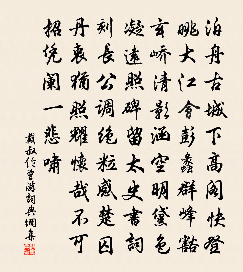 泊舟古城下,高閣快登眺。大江會彭蠡,群峰豁玄嶠。